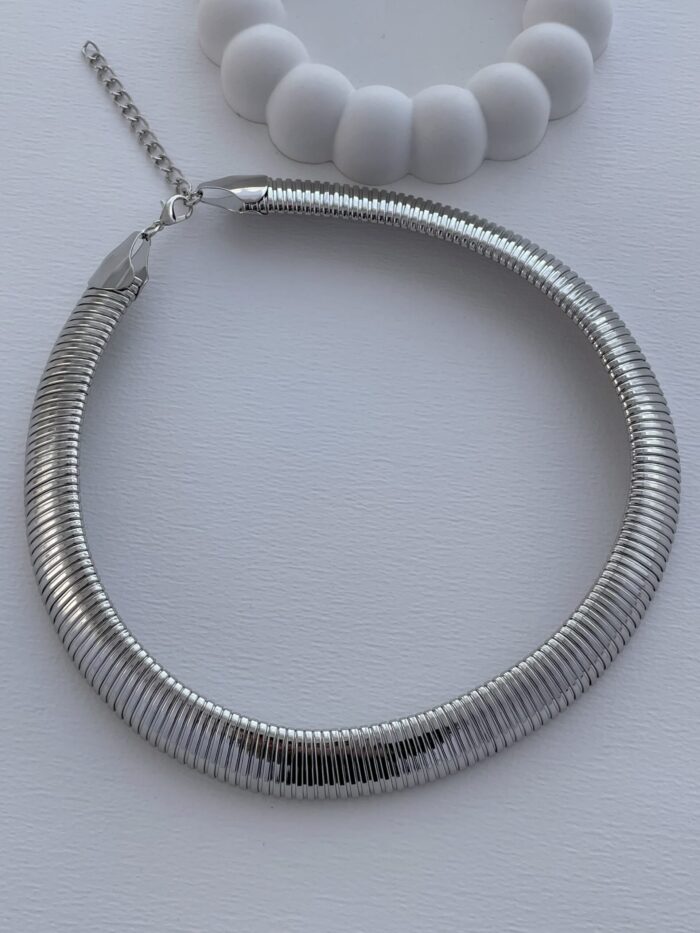 Özel Seri Kalın Tırtıklı Marka Model Gümüş Choker Kolye