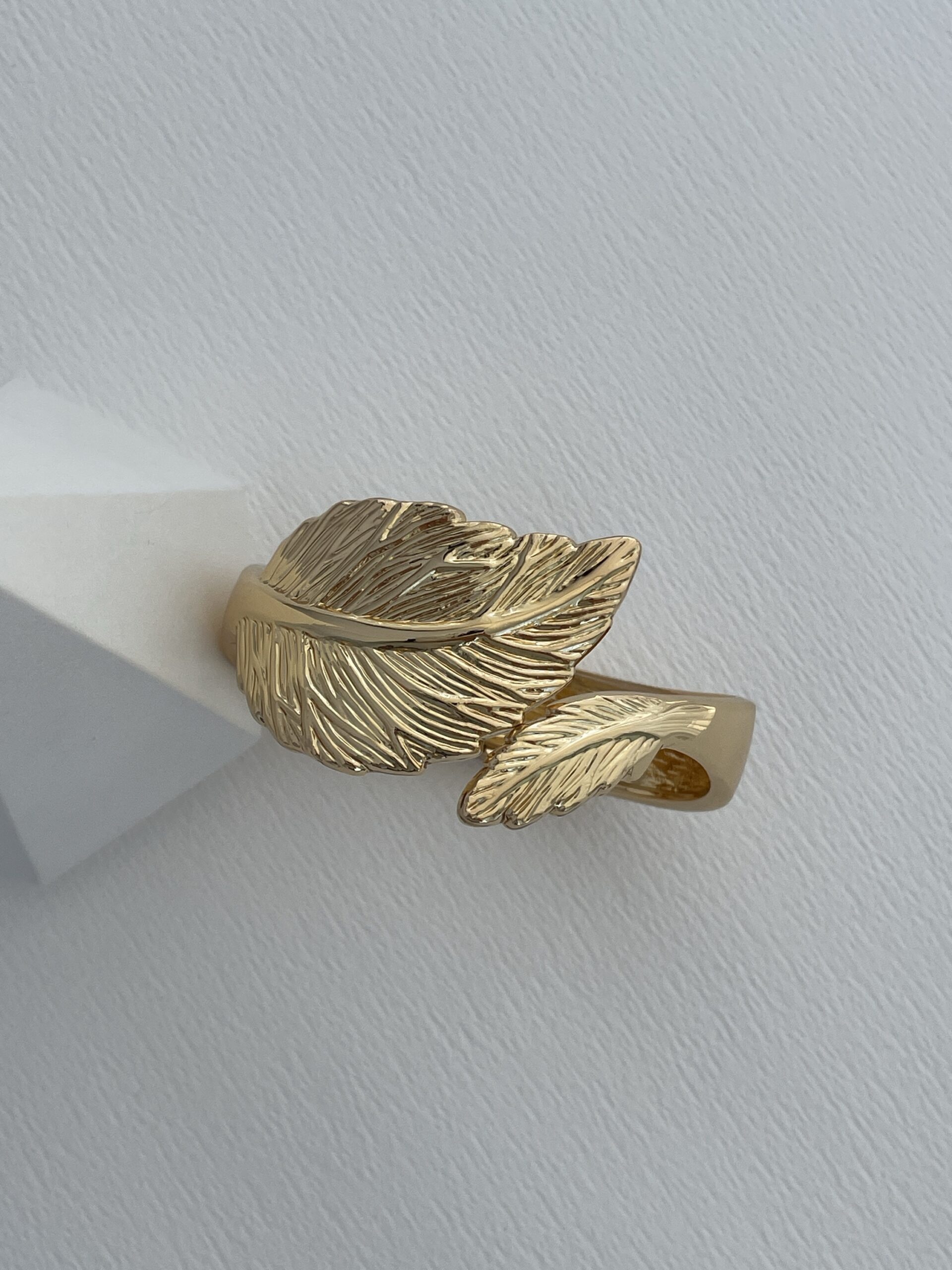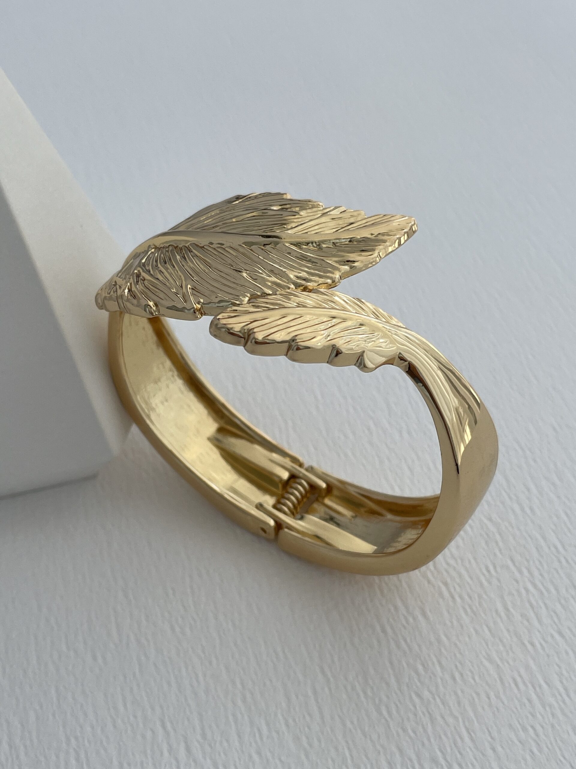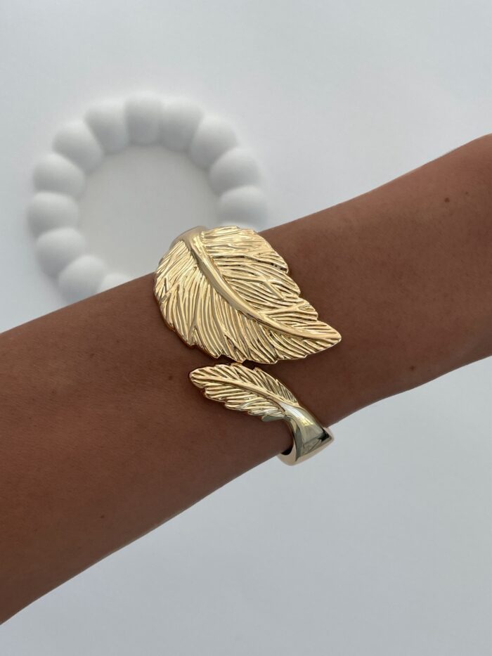 Özel Seri Kalın Yaprak Tasarım Gold Kelepçe Bileklik