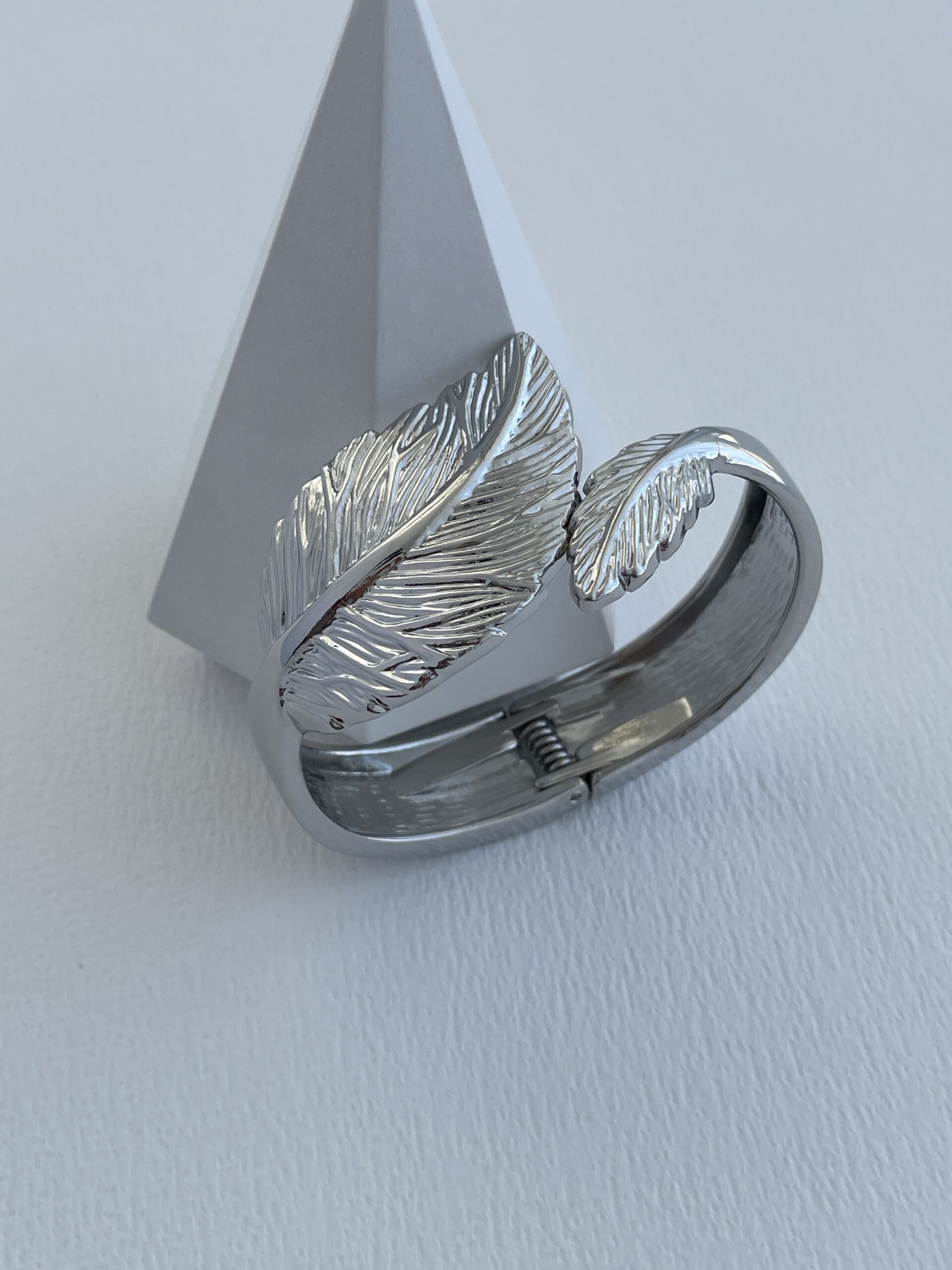 Özel Seri Kalın Yaprak Tasarım Gümüş Kelepçe Bileklik