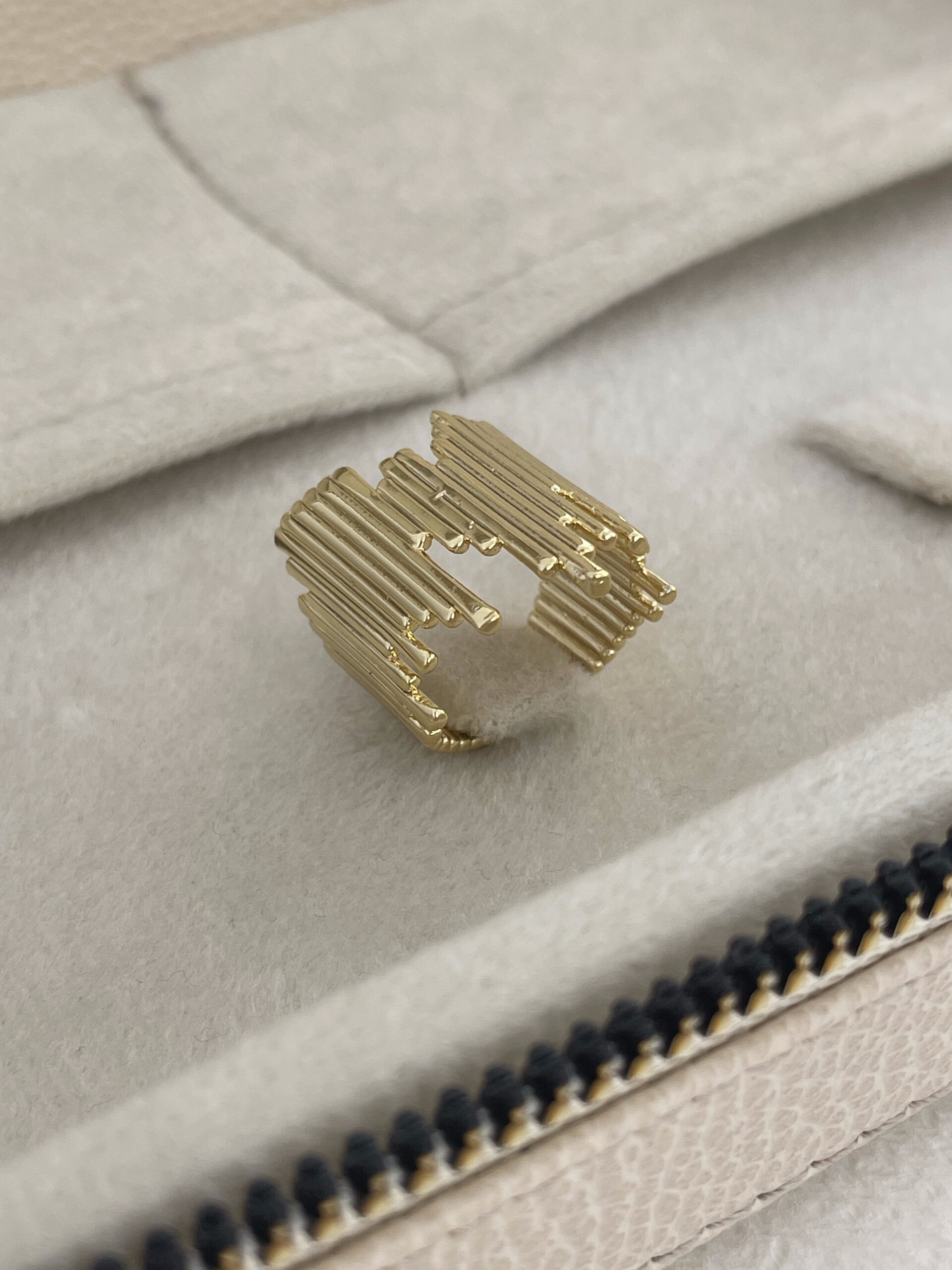 Özel Seri Kalın Zikzak Tasarım Ayarlanabilir Gold Yüzük