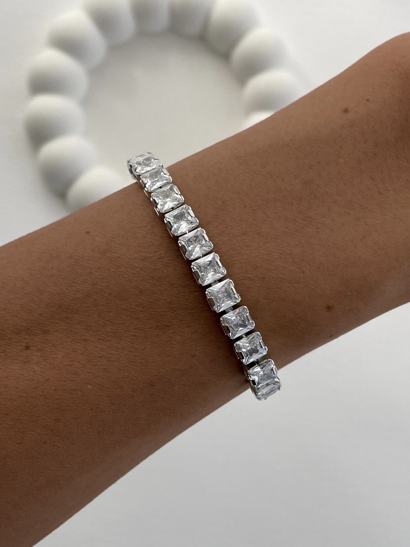 Özel Seri Kalın Zirkon Taşlı Tırnaklı Kare Gümüş Shiny Bileklik