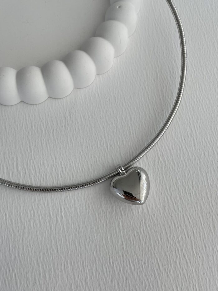 Özel Seri Kalp Detay Gümüş Choker Kolye