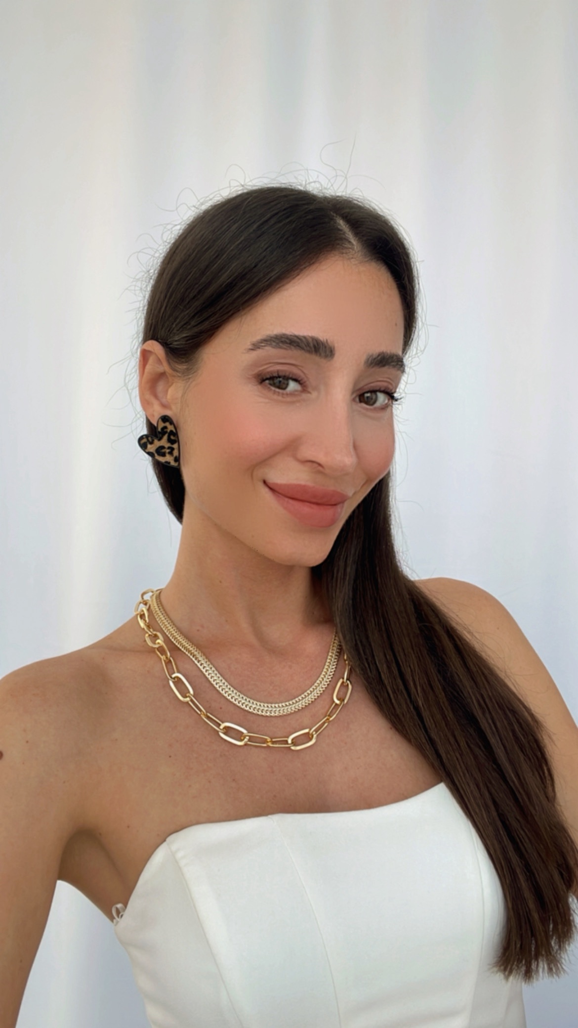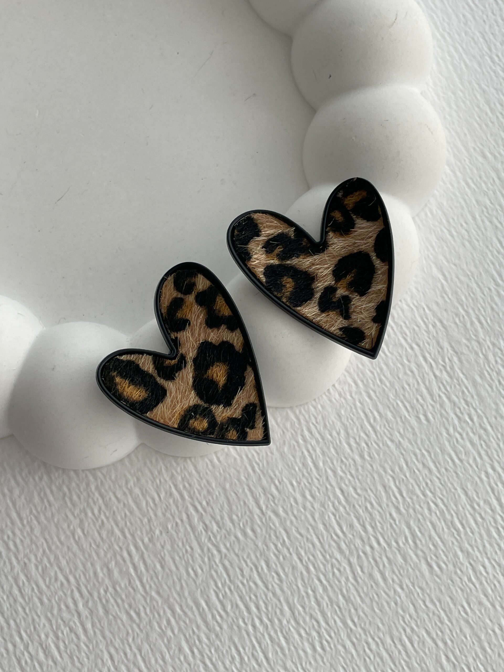 Özel Seri Kalp Leopar Desen Gold Küpe