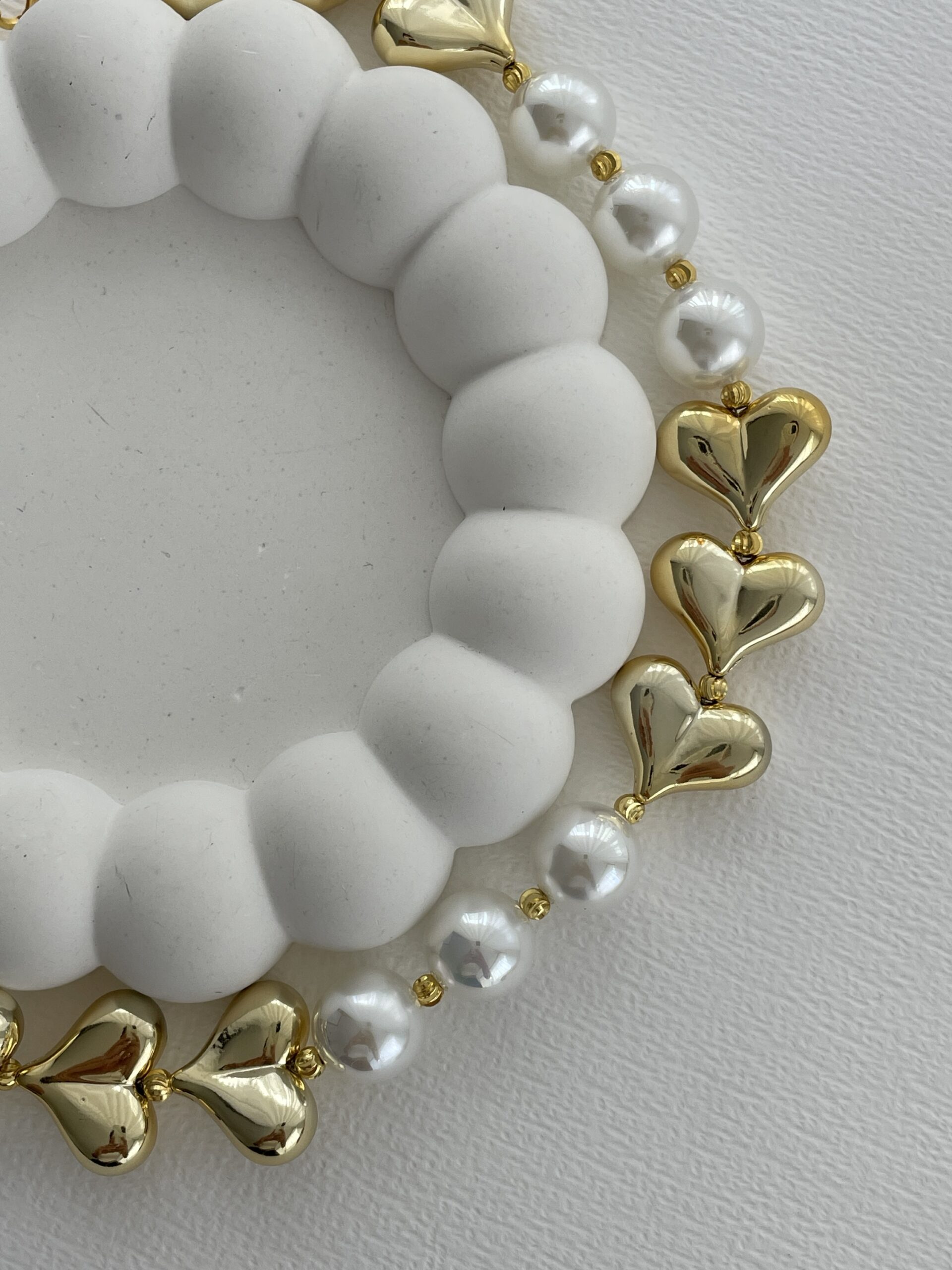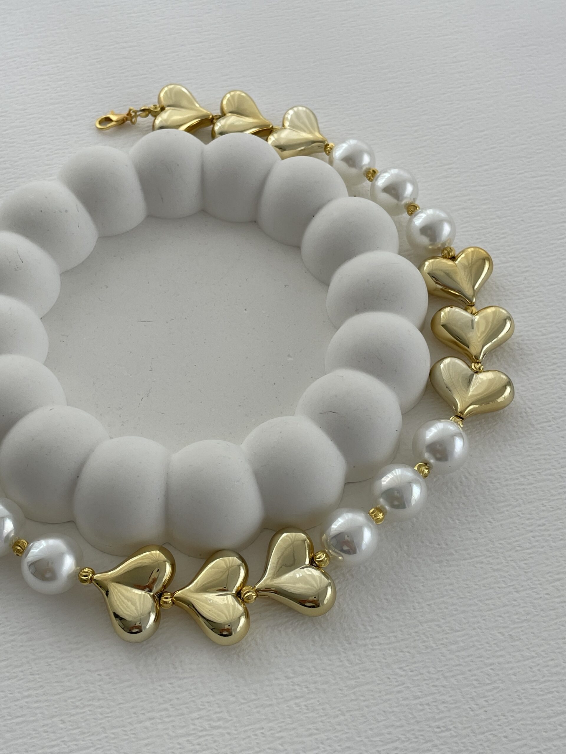 Özel Seri Kalp Tasarım Gold İnci Kolye