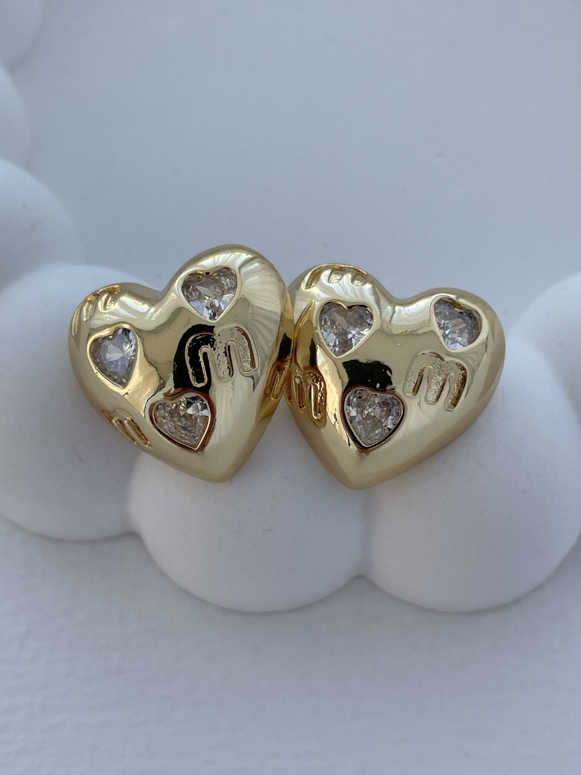 Çelik Zirkon Taşlı Kalp Tasarım Gold Marka Küpe
