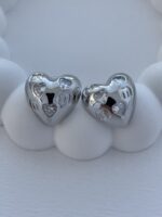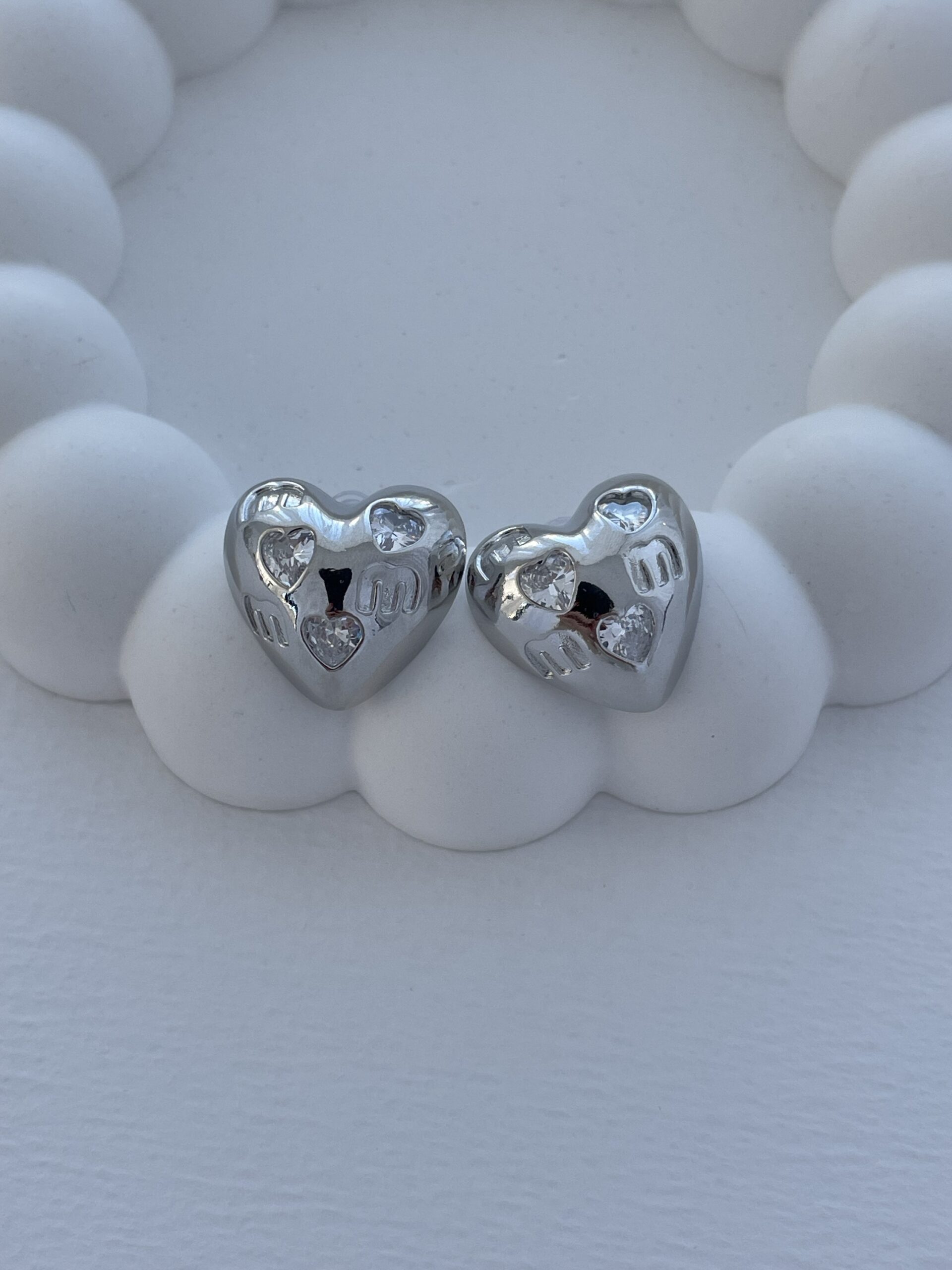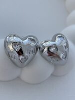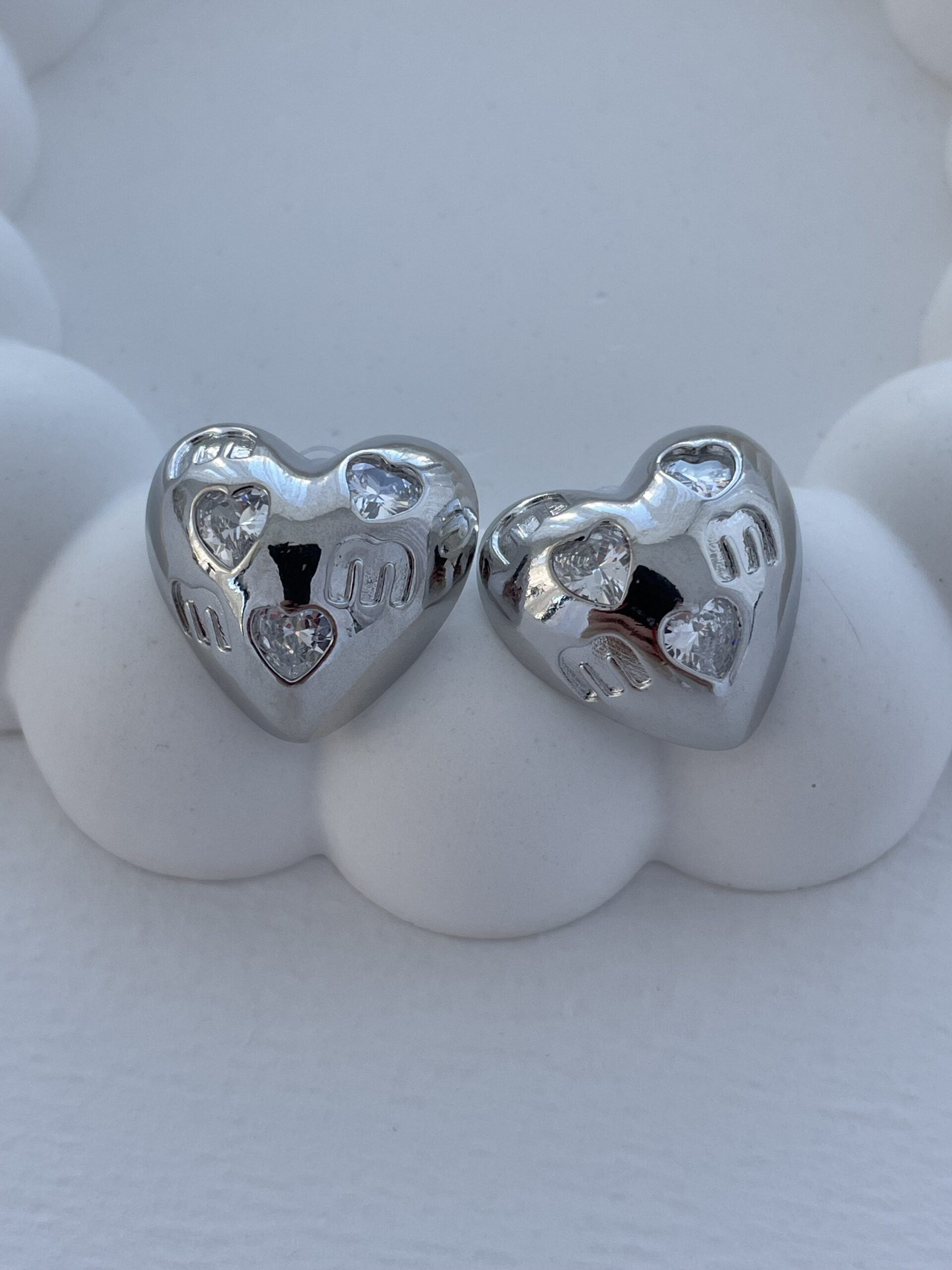 Çelik Zirkon Taşlı Kalp Tasarım Gümüş Marka Küpe