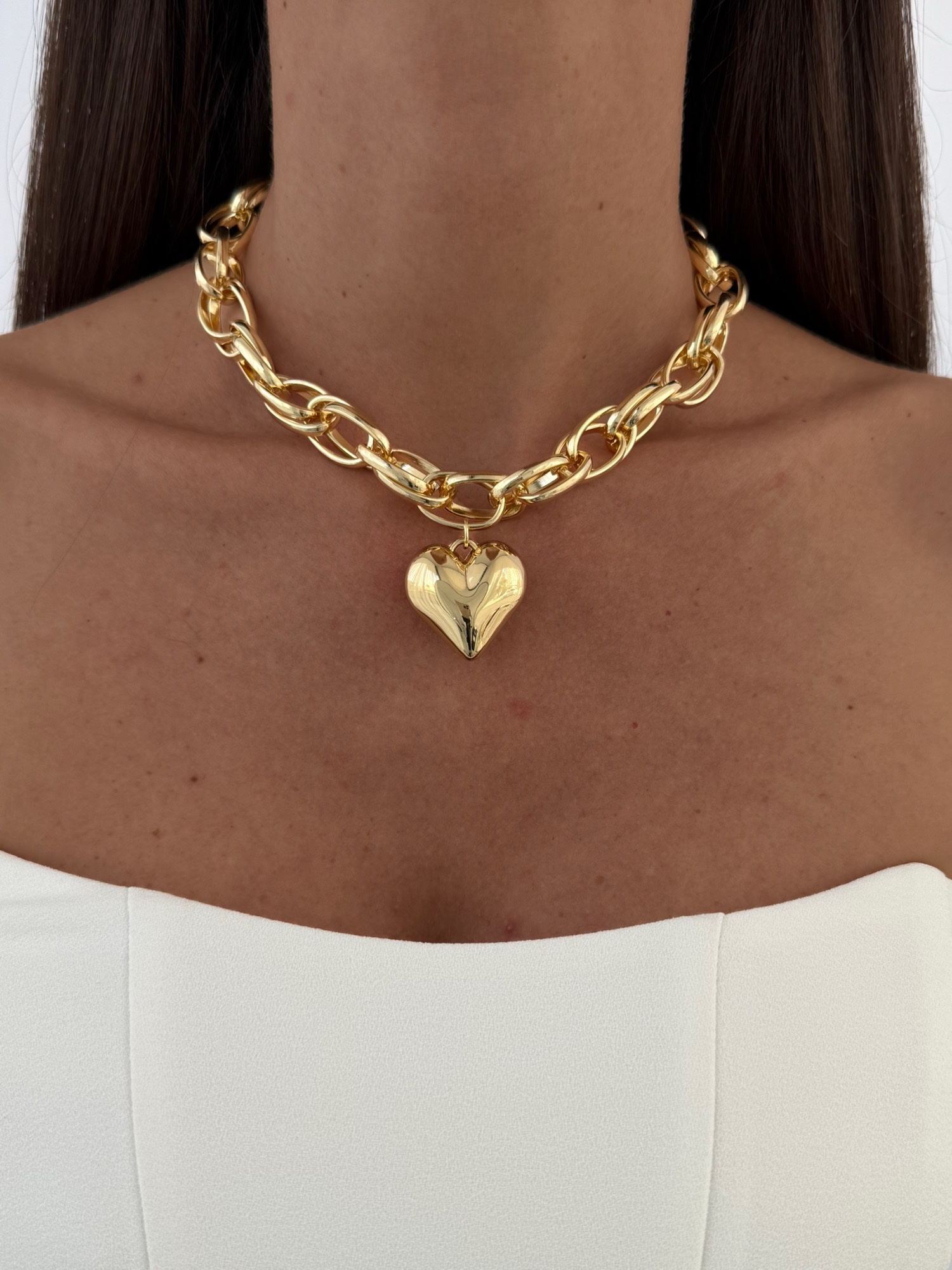 Özel Seri Kalp Tasarım Kalın Halat Zincir Gold Kolye