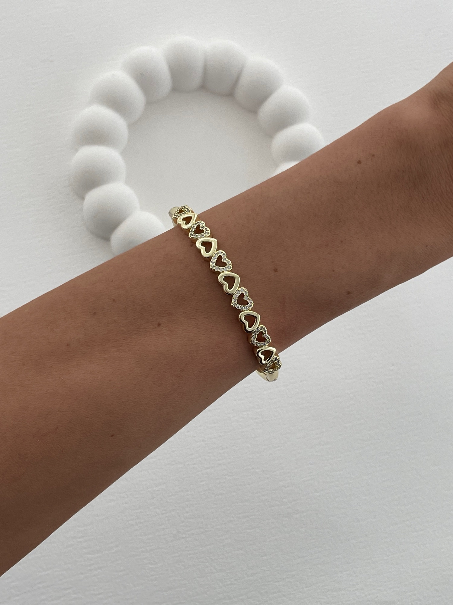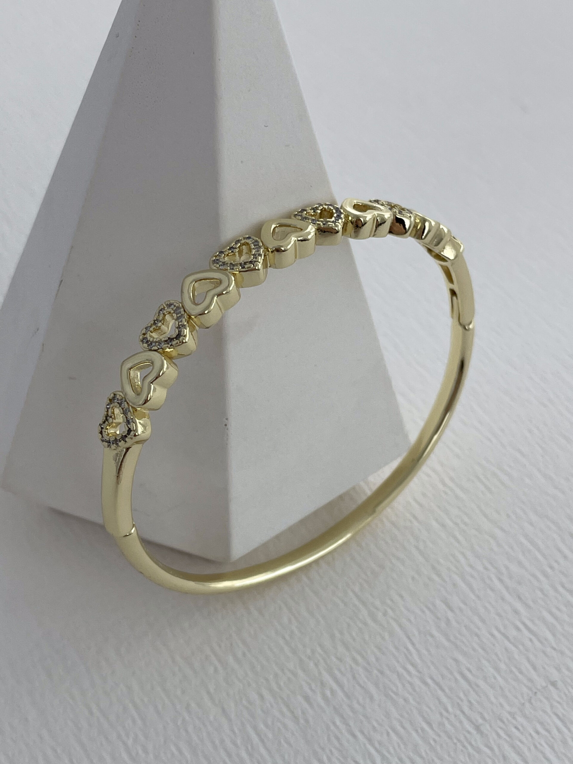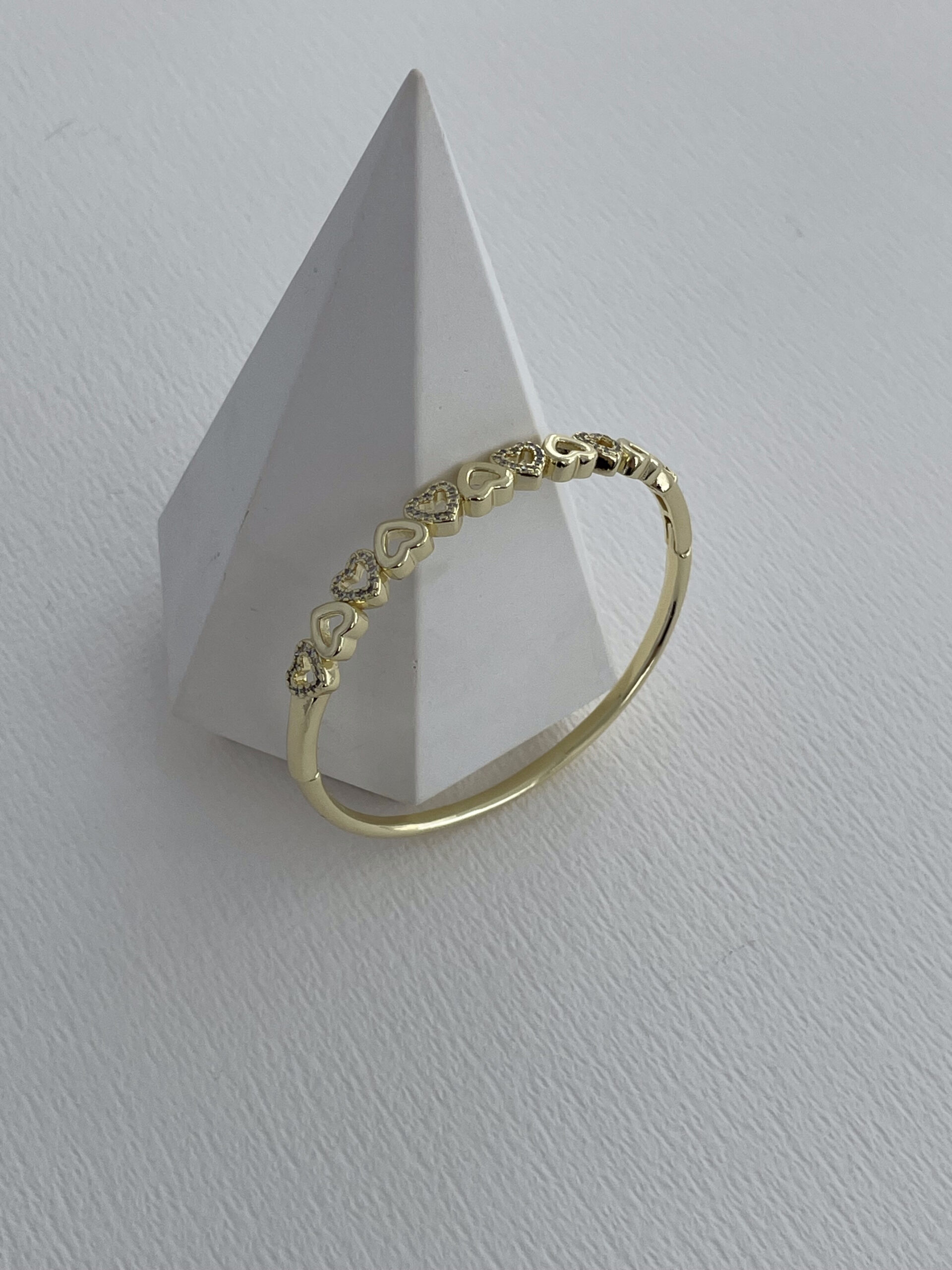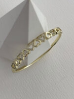 Özel Seri Kalp Tasarım Zirkon Taşlı Gold Kelepçe Bileklik