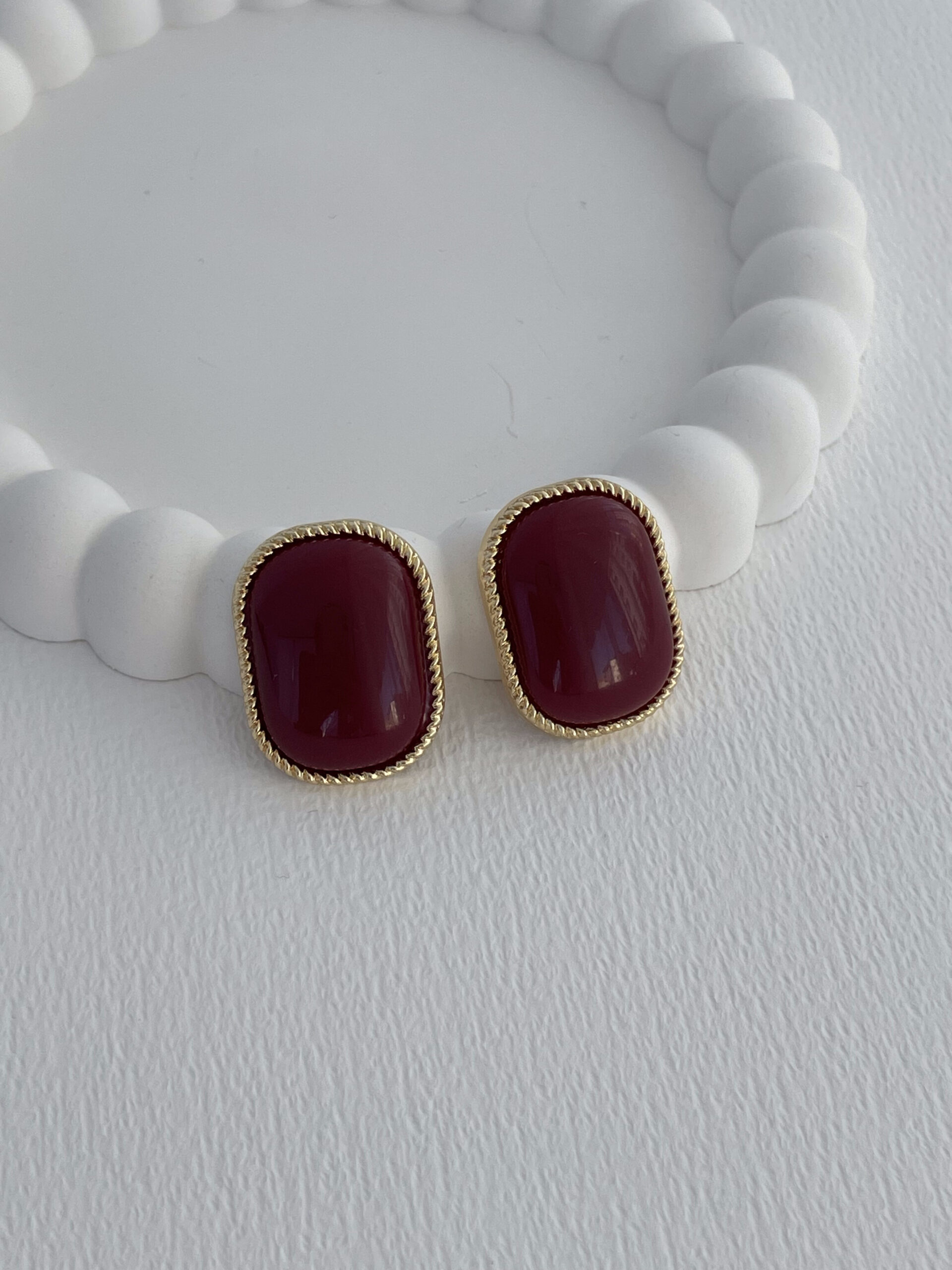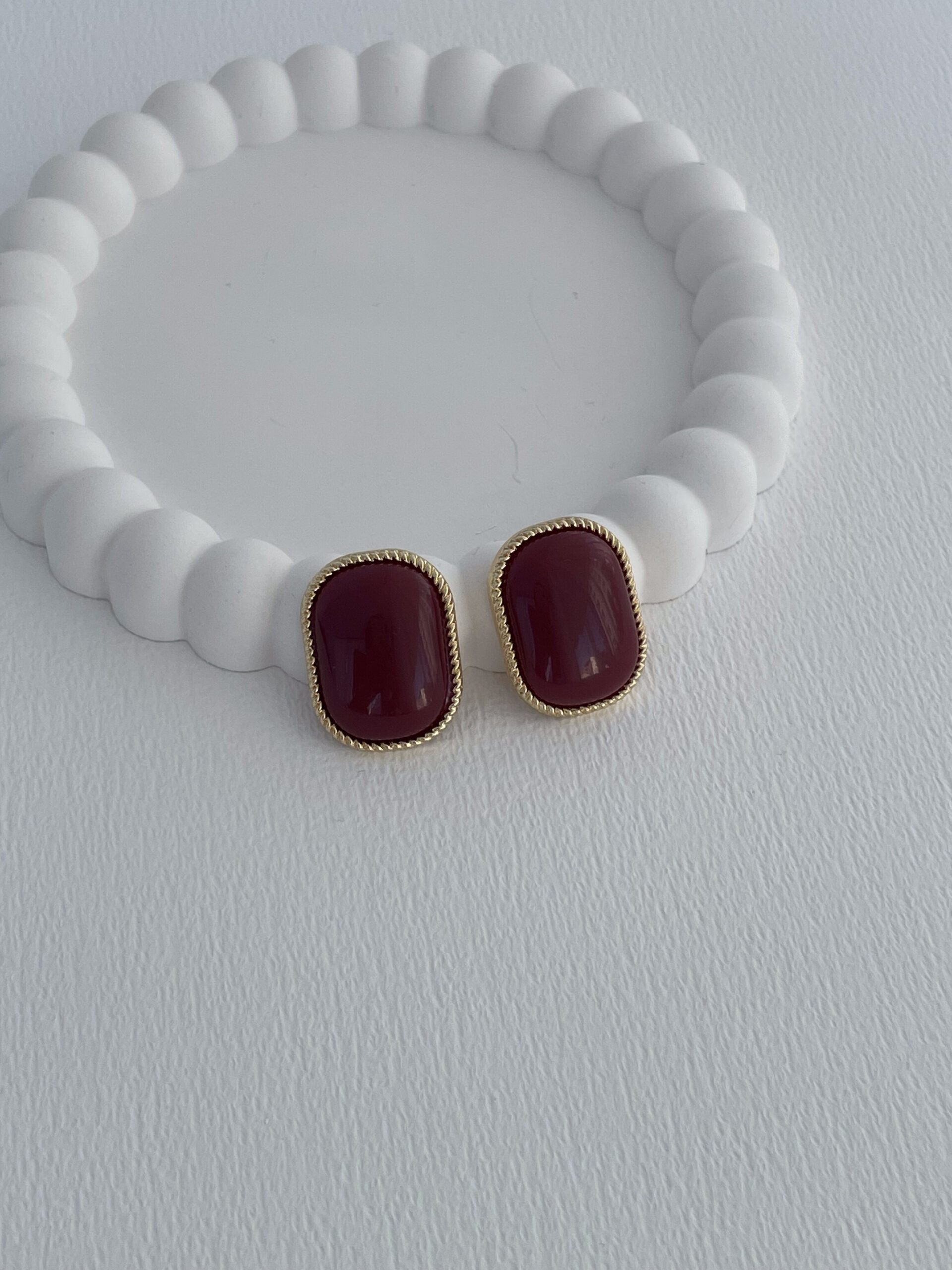 Özel Seri Kare Kenar Kıvrımlı Bordo Mineli Gold Küpe