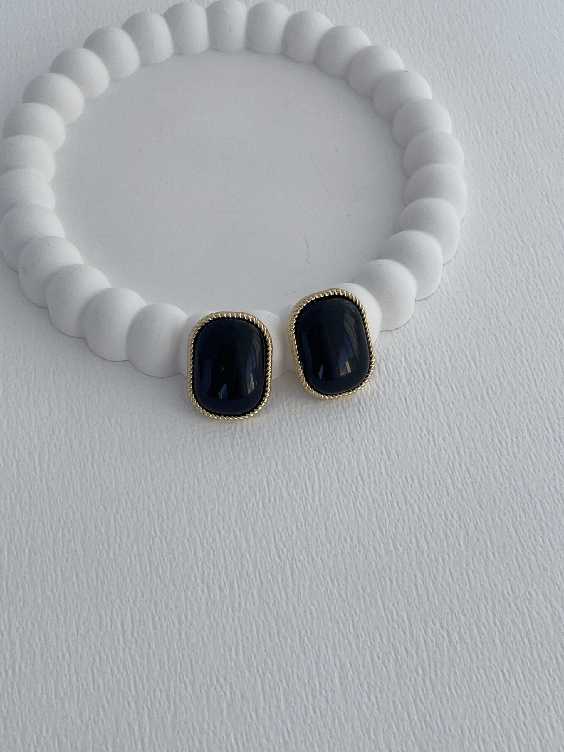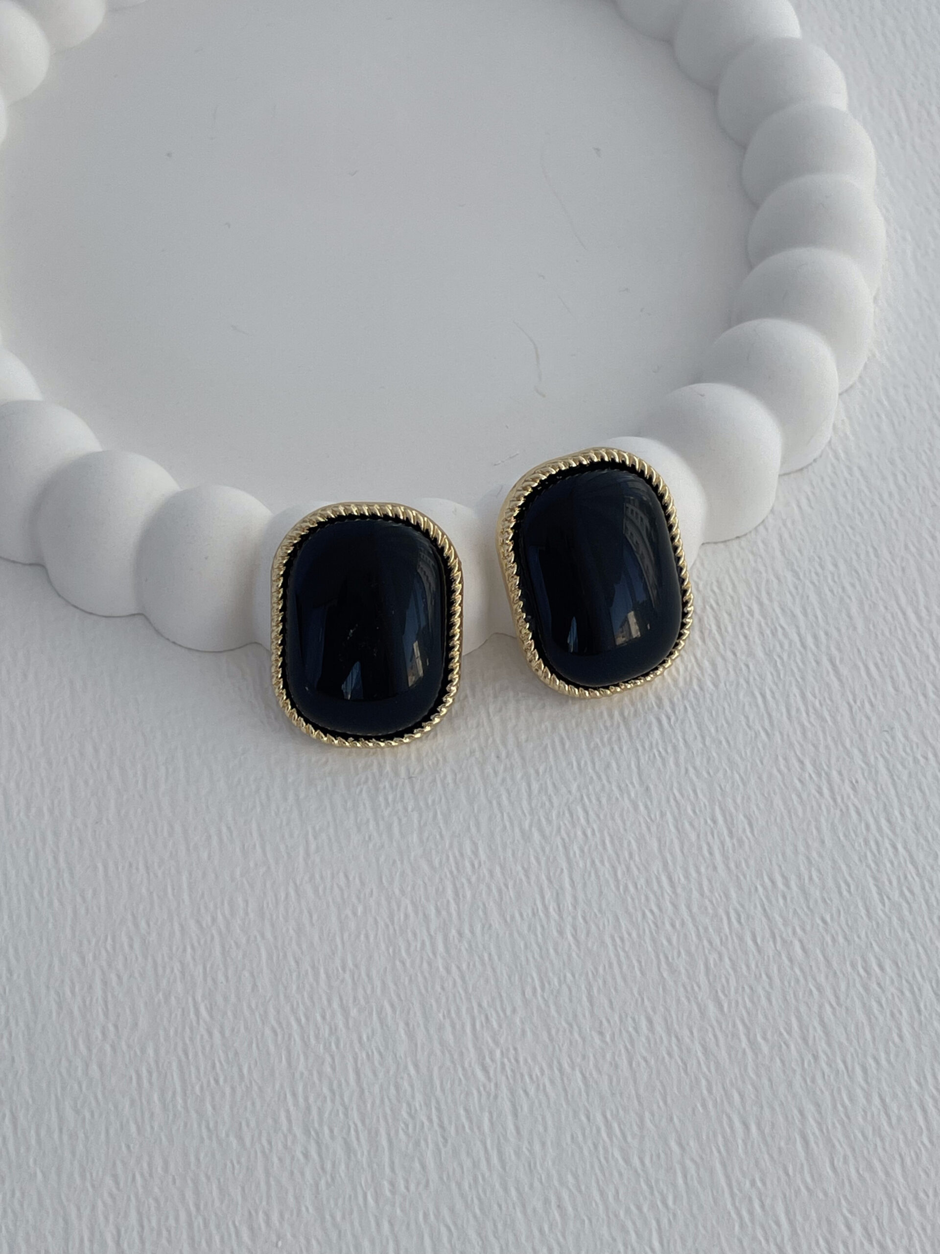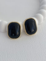 Özel Seri Kare Kenar Kıvrımlı Siyah Mineli Gold Küpe