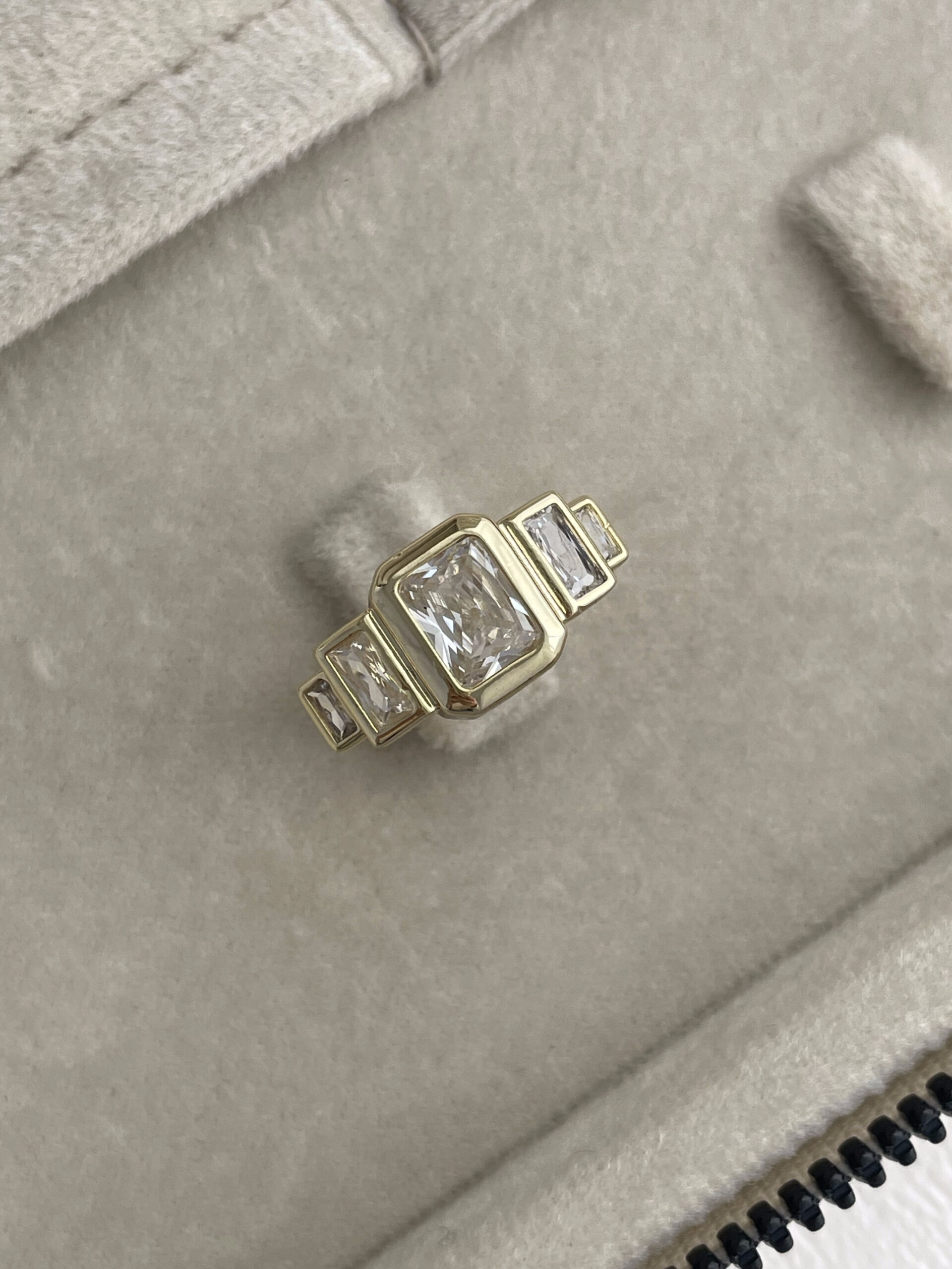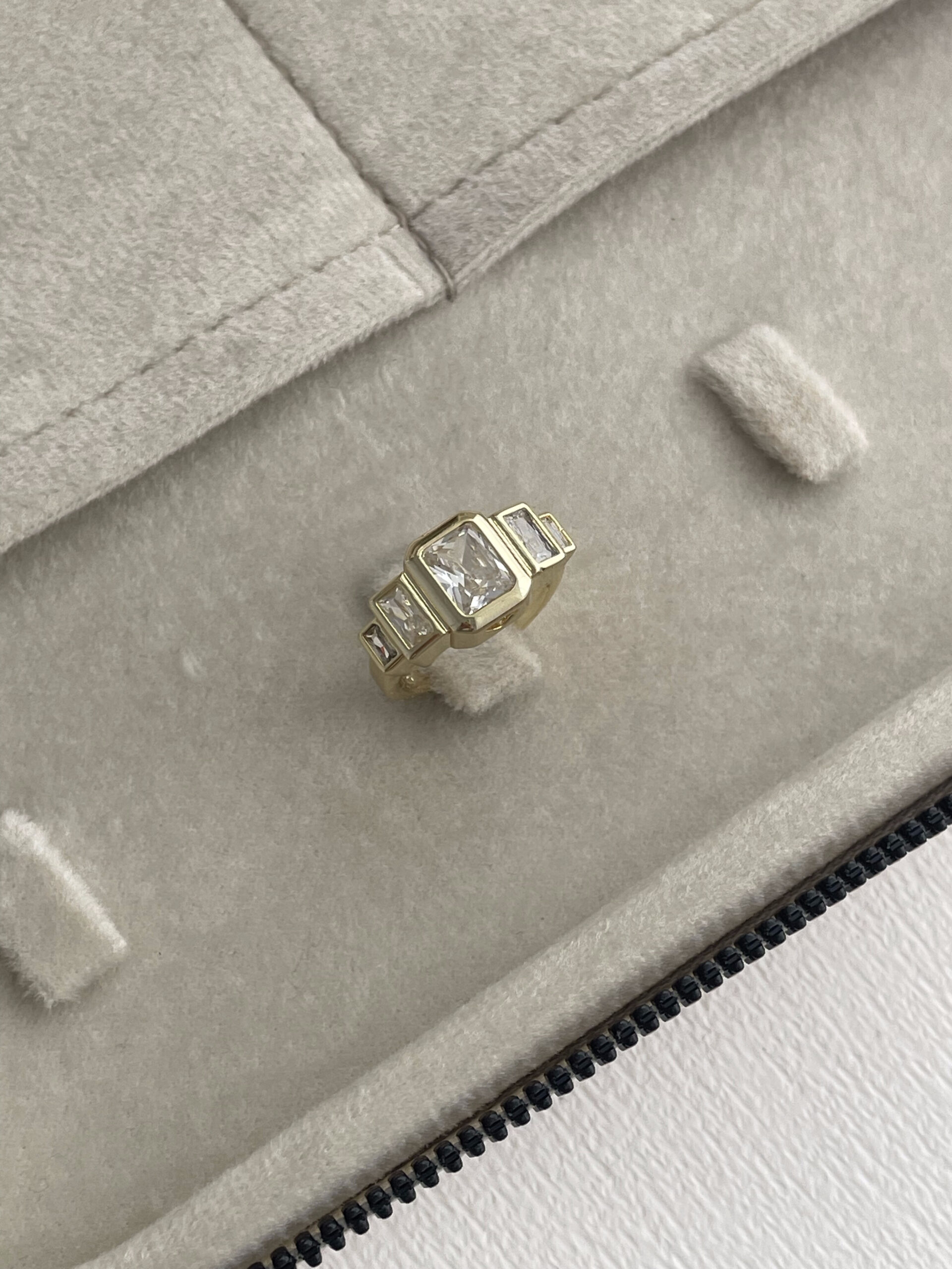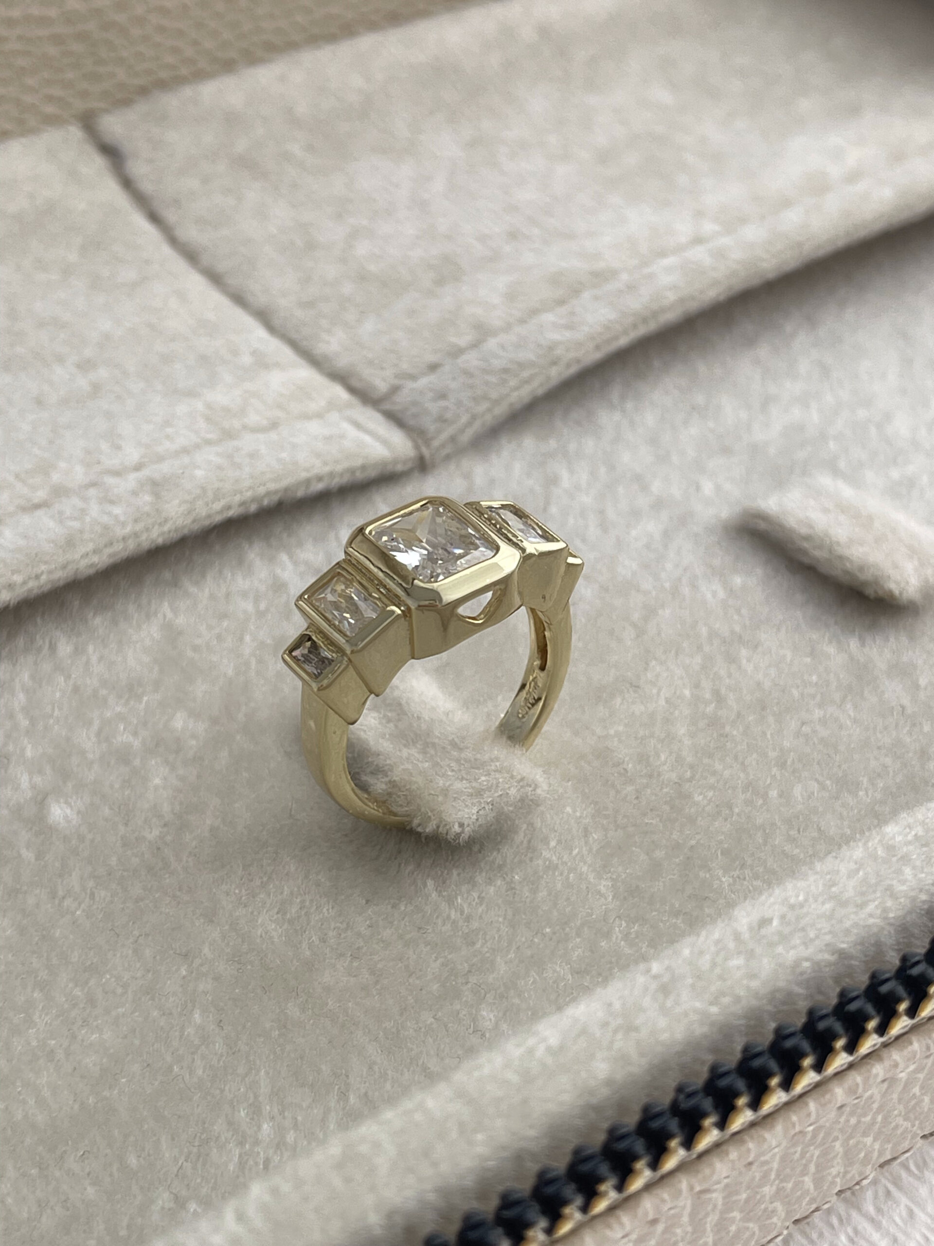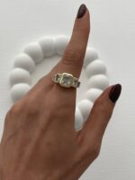 Özel Seri Kare Tasarım Baget Taşlı Ayarlanabilir Gold Yüzük