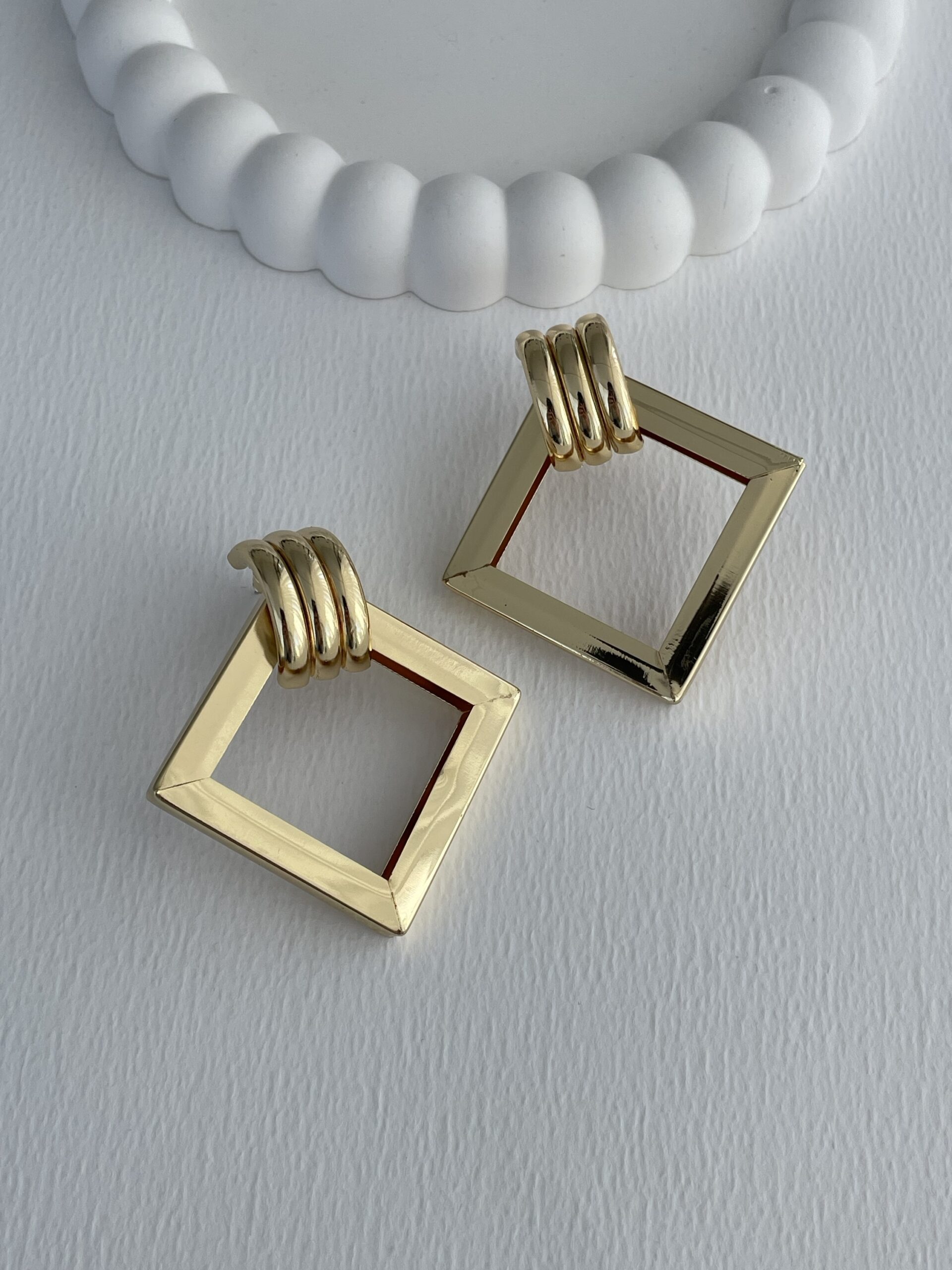 Özel Seri Kare Tasarım Büyük Boy Gold Küpe