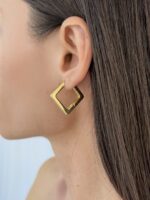 Özel Seri Kare Tasarım Gold Halka Küpe