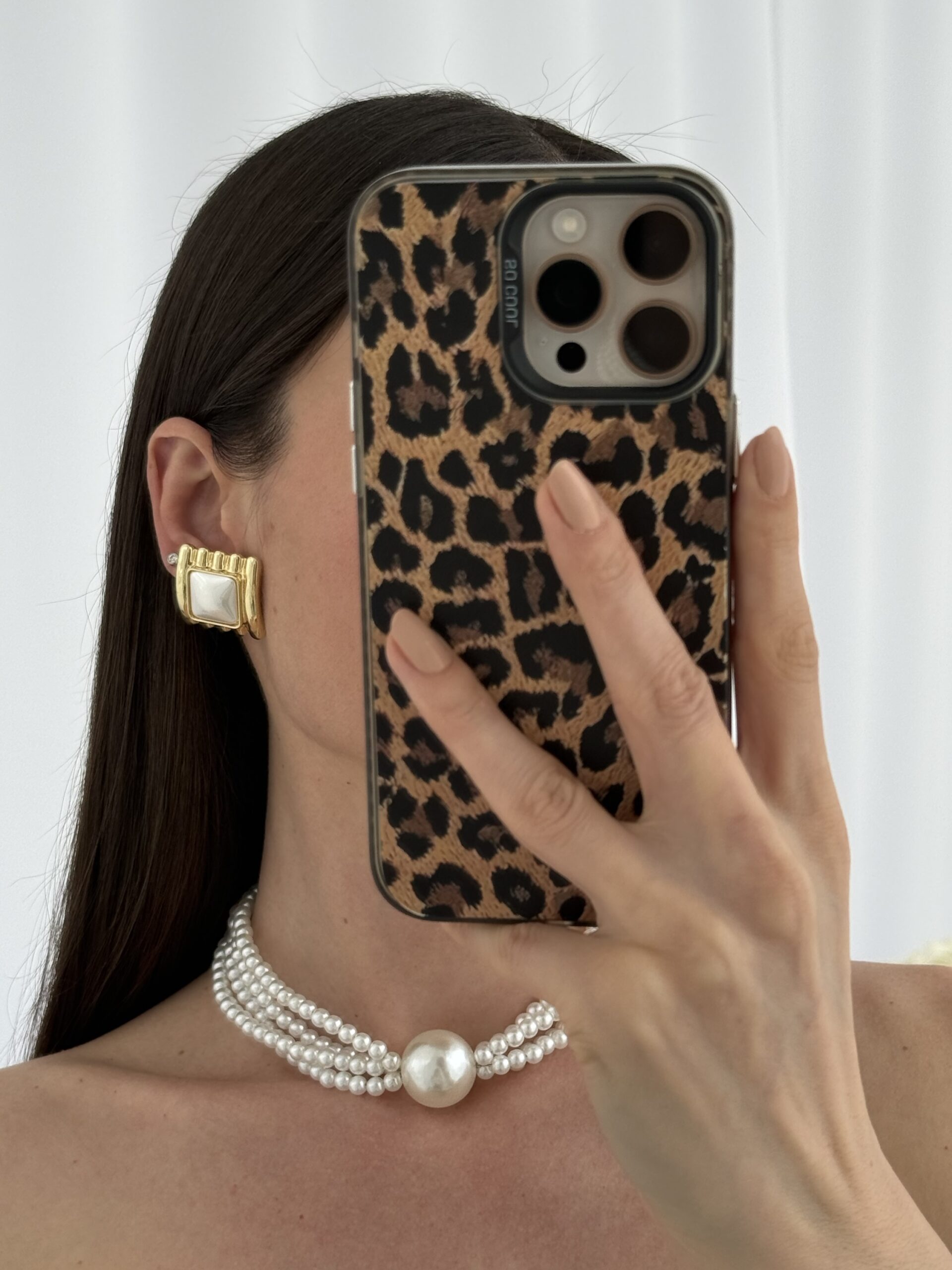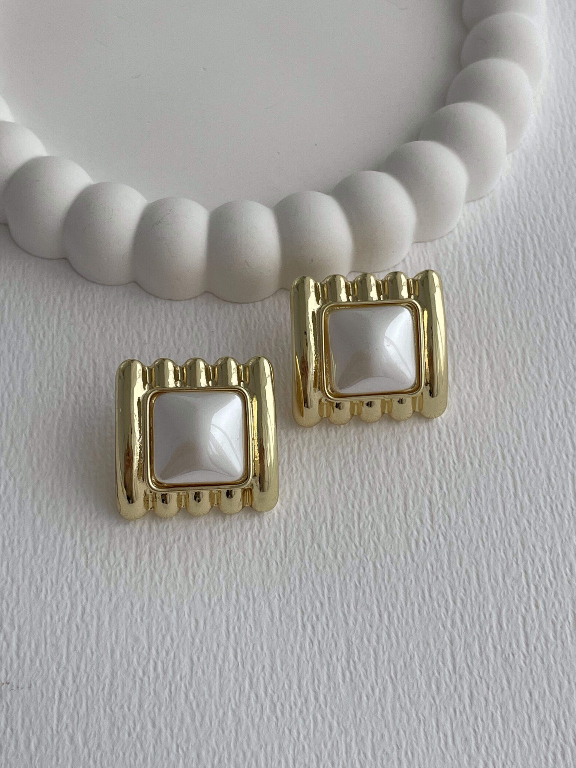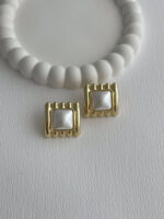 Özel Seri Kare Tasarım İnci Detay Gold Küpe
