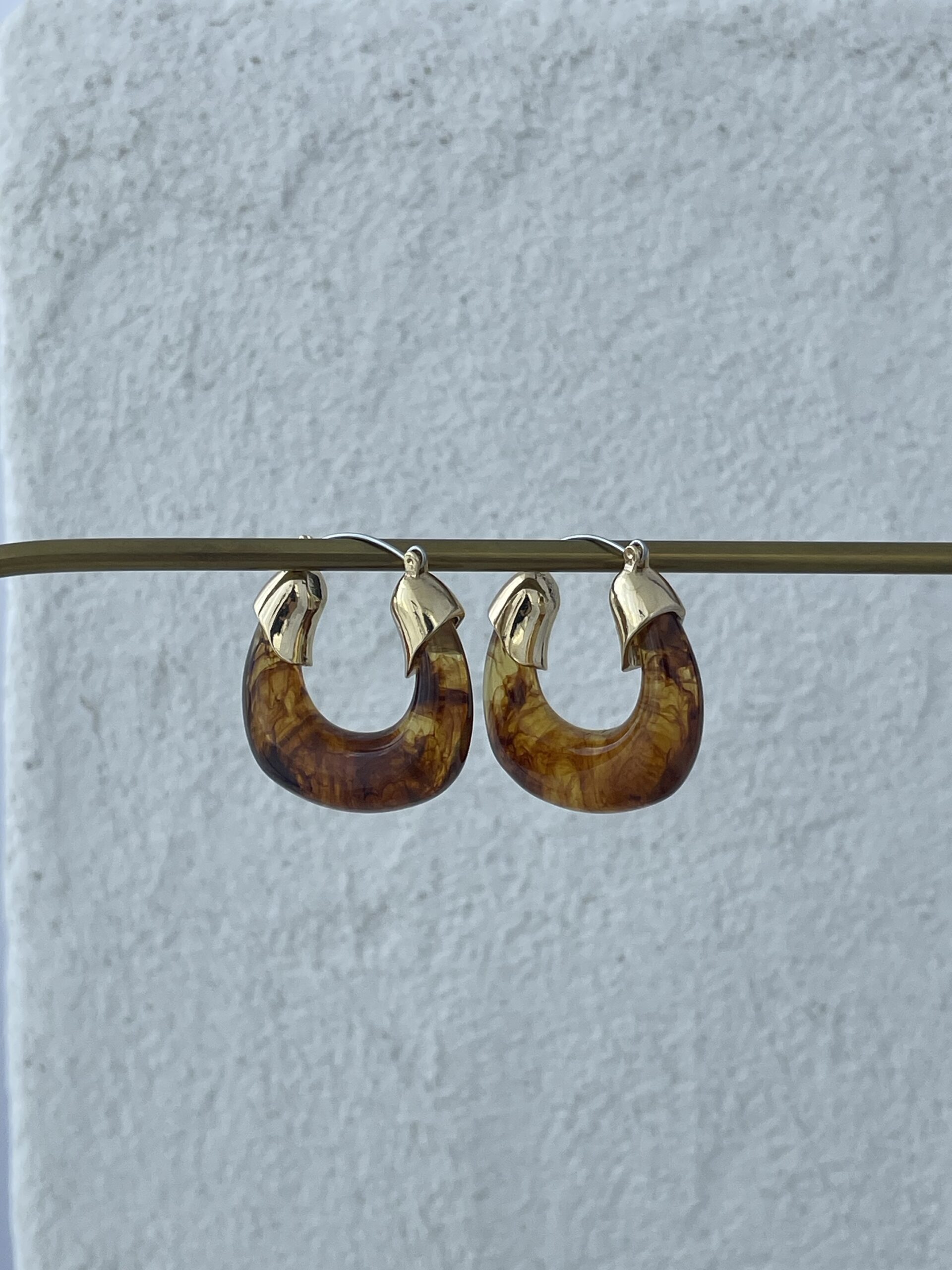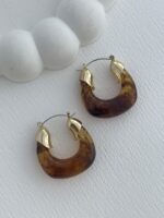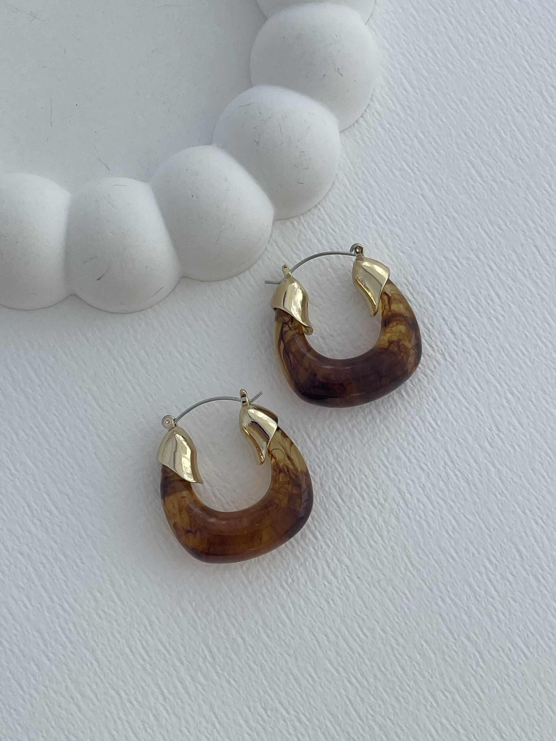 Özel Seri Kare Tasarım Kahve Kemik Gold Küpe