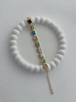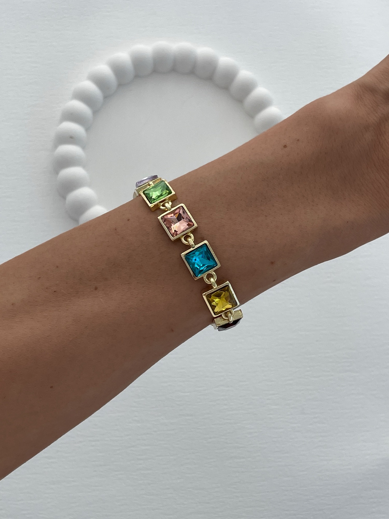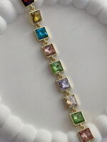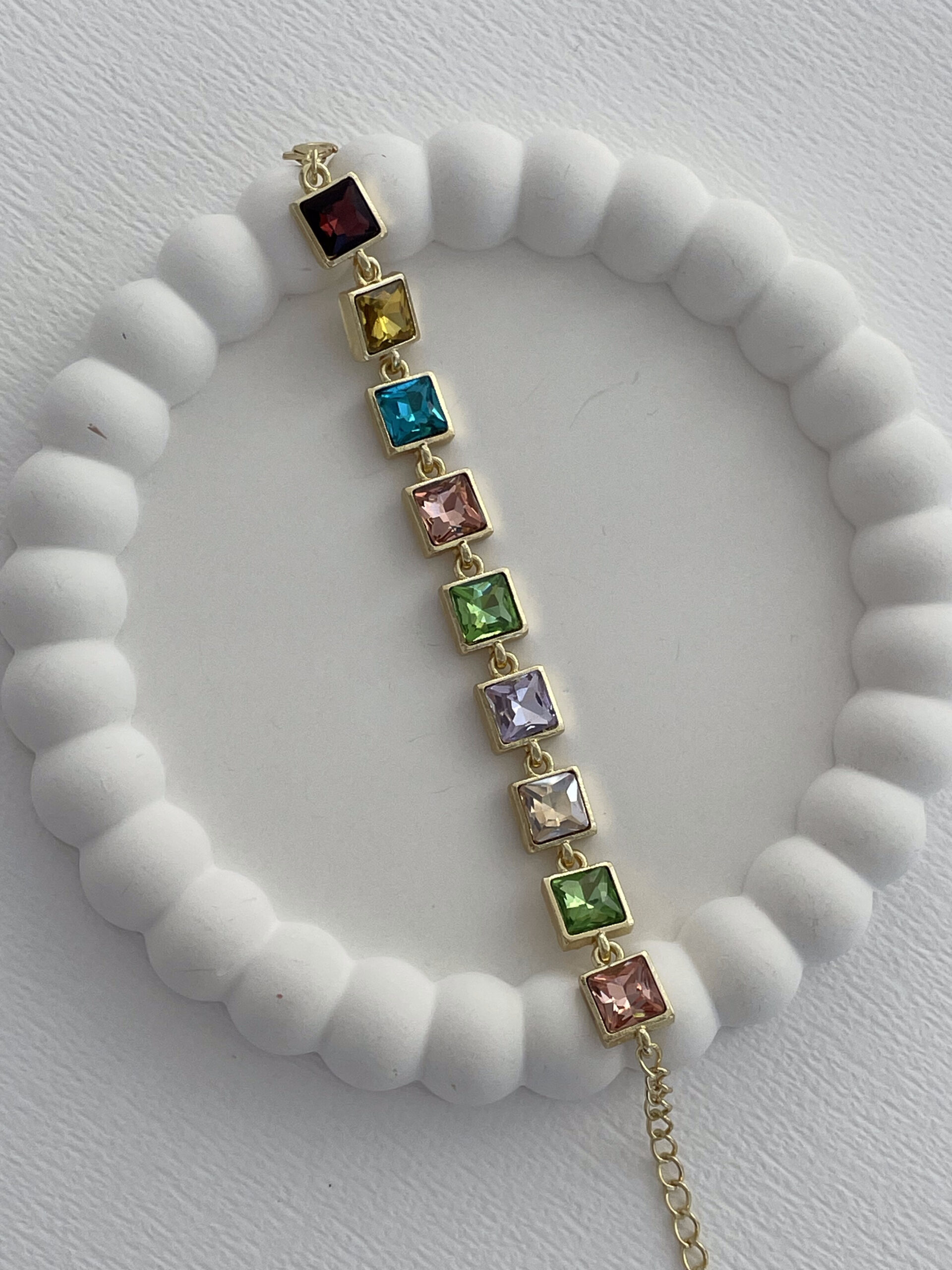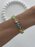 Özel Seri Kare Tasarım Renkli Baget Taş Detay Gold Bileklik