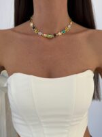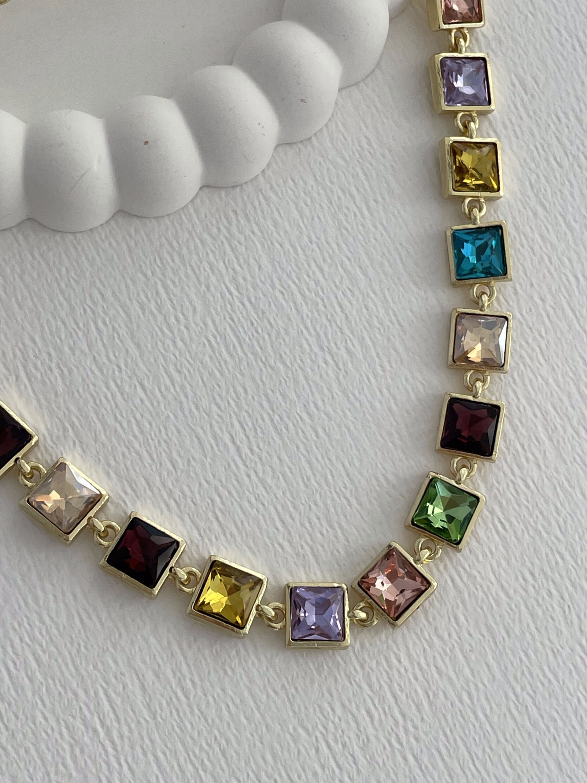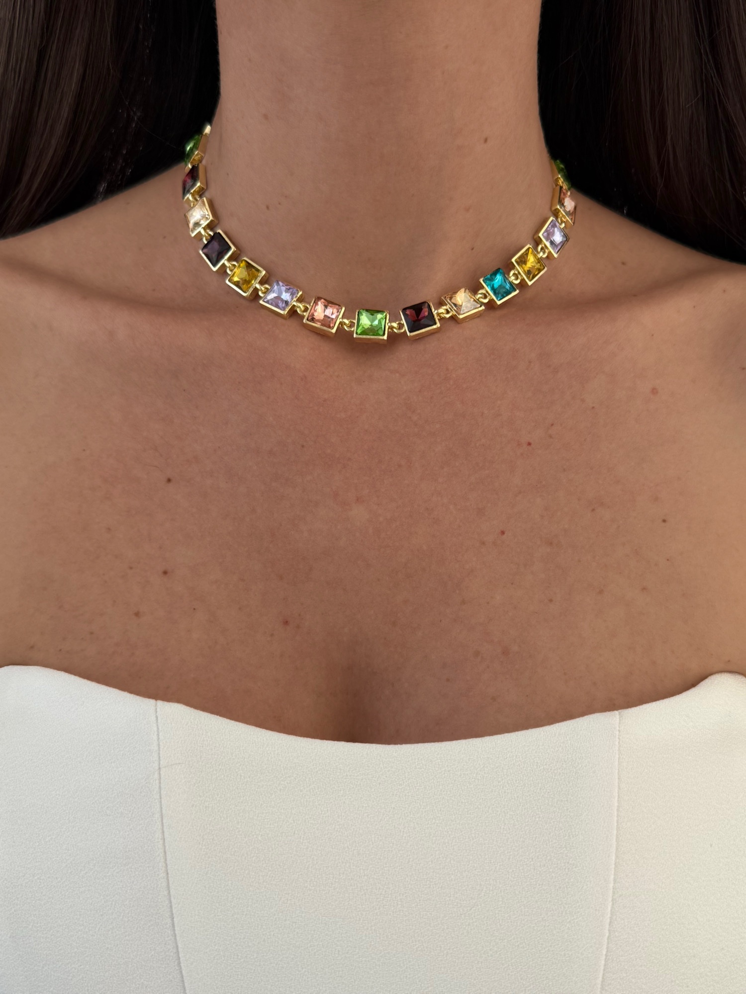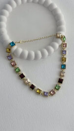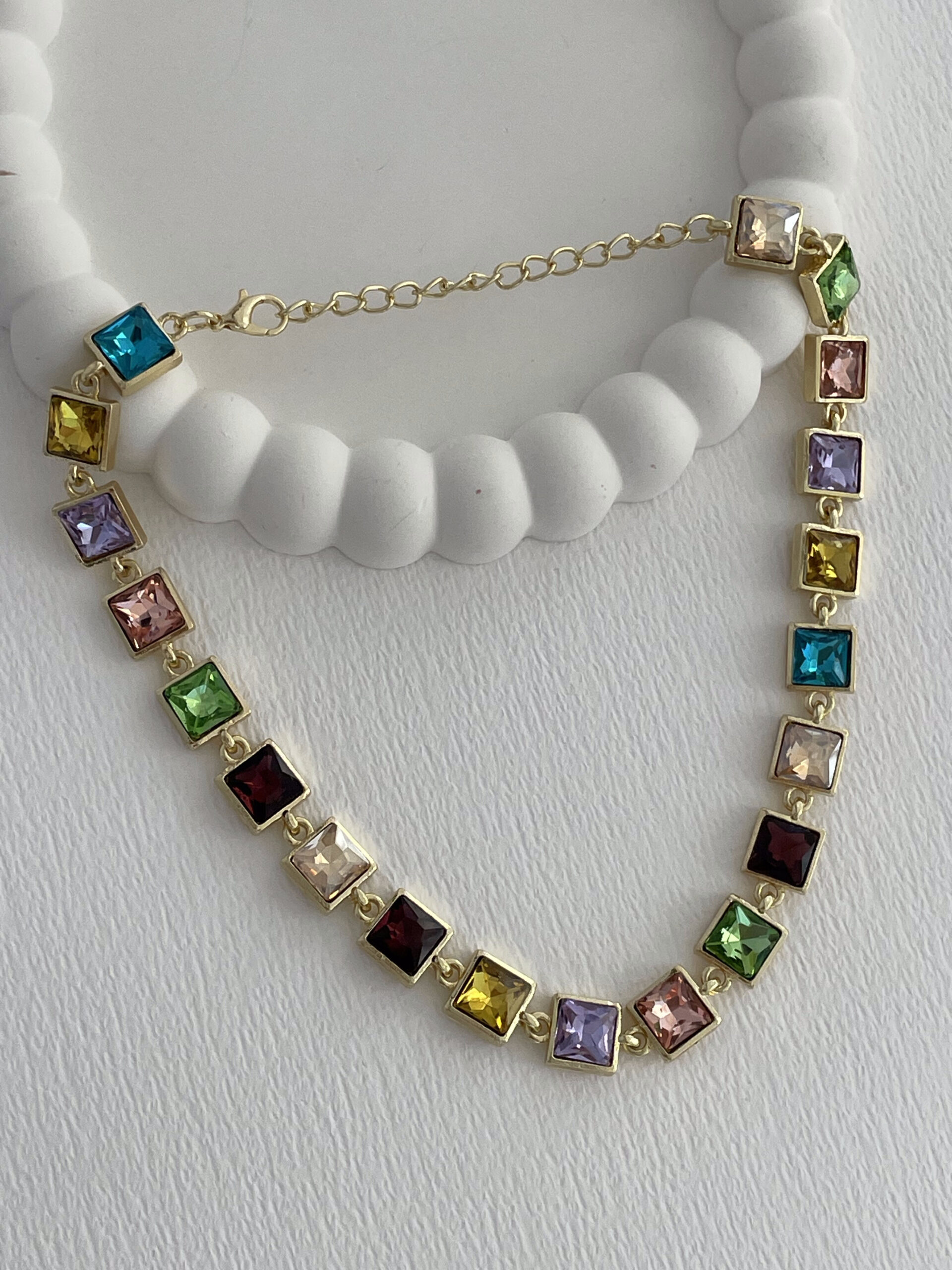 Özel Seri Kare Tasarım Renkli Baget Taş Detay Gold Kolye
