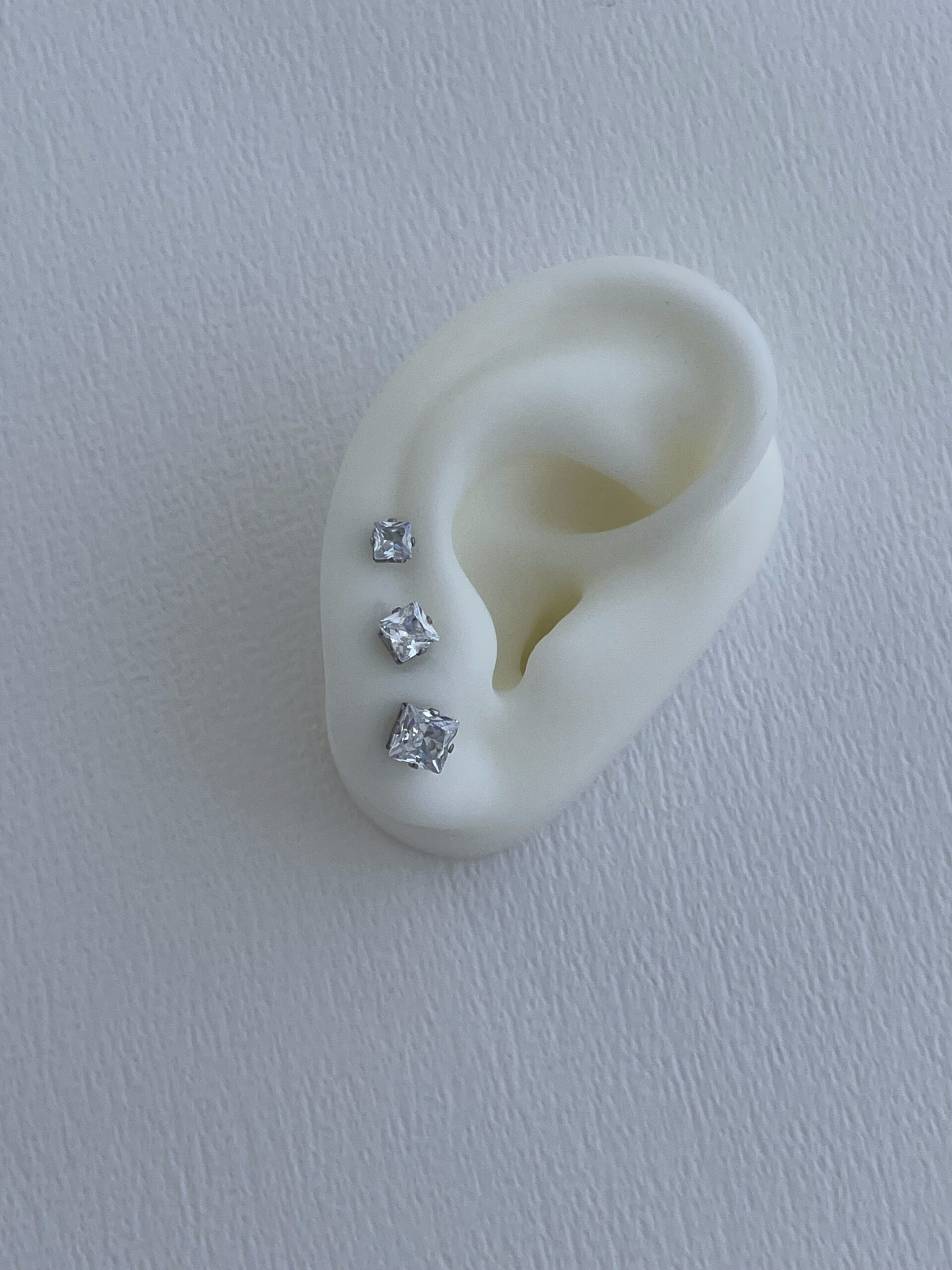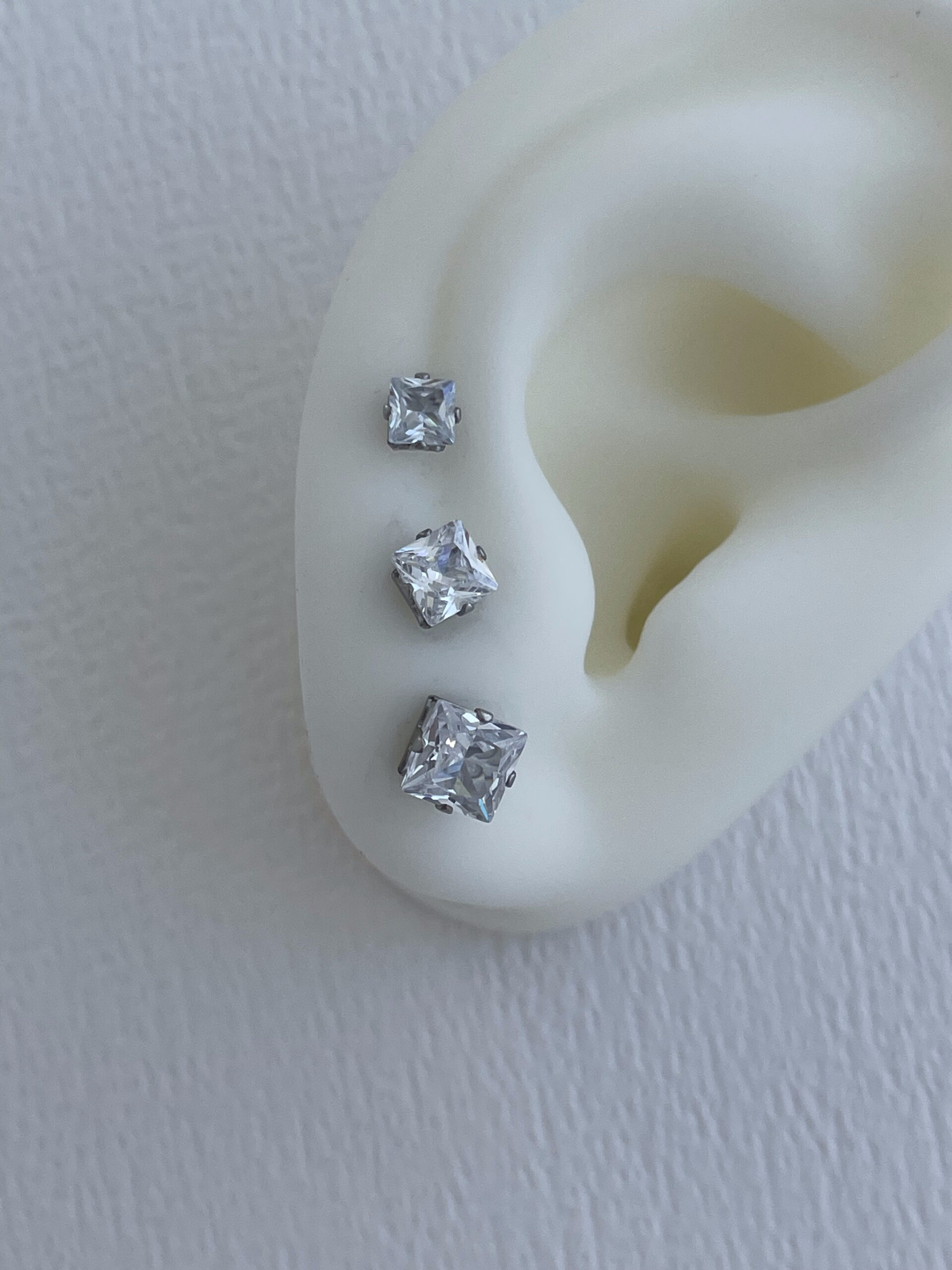 Özel Seri Kare Tek Taş Tasarım Gümüş Üçlü Küpe Seti
