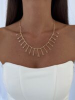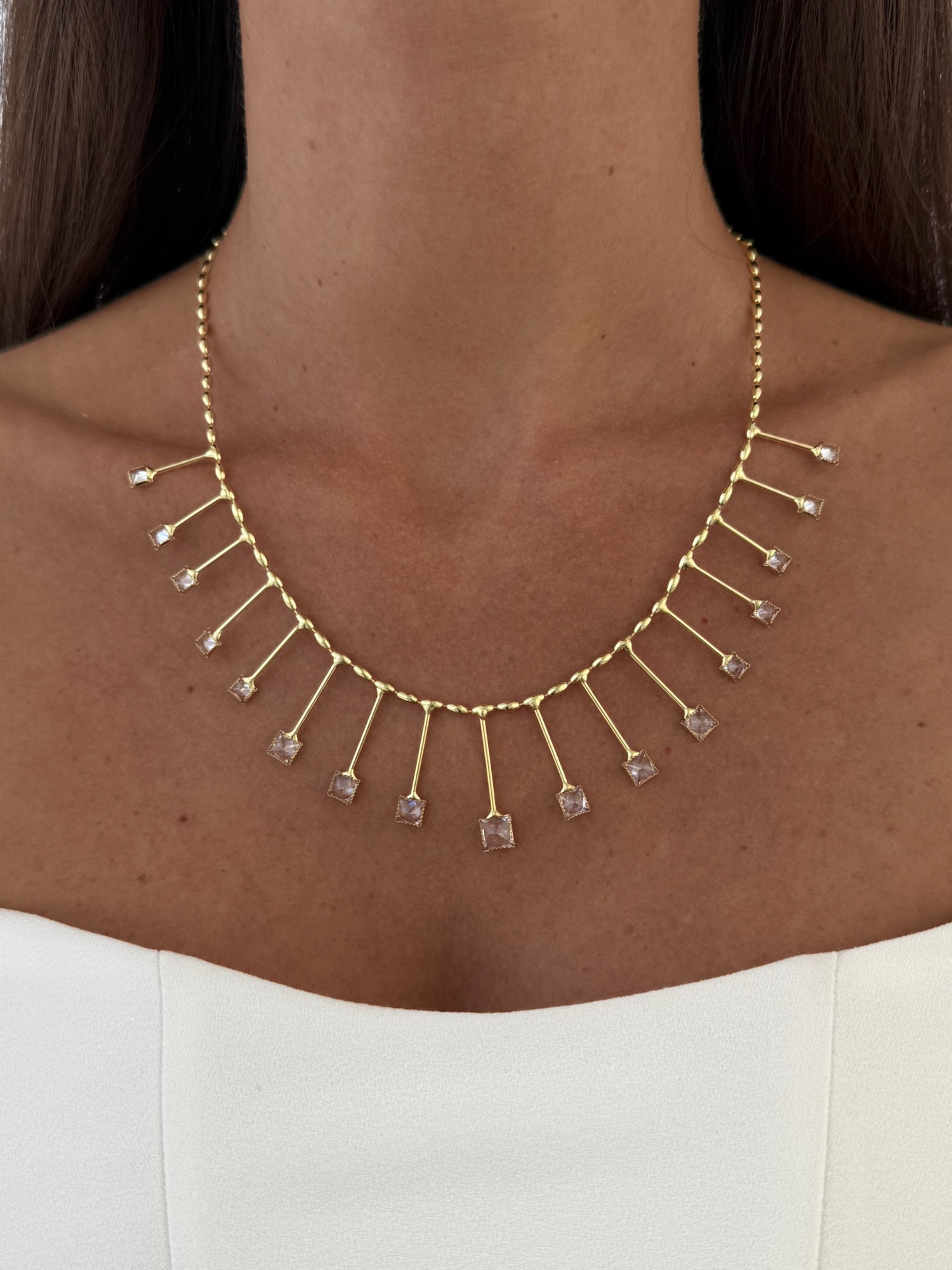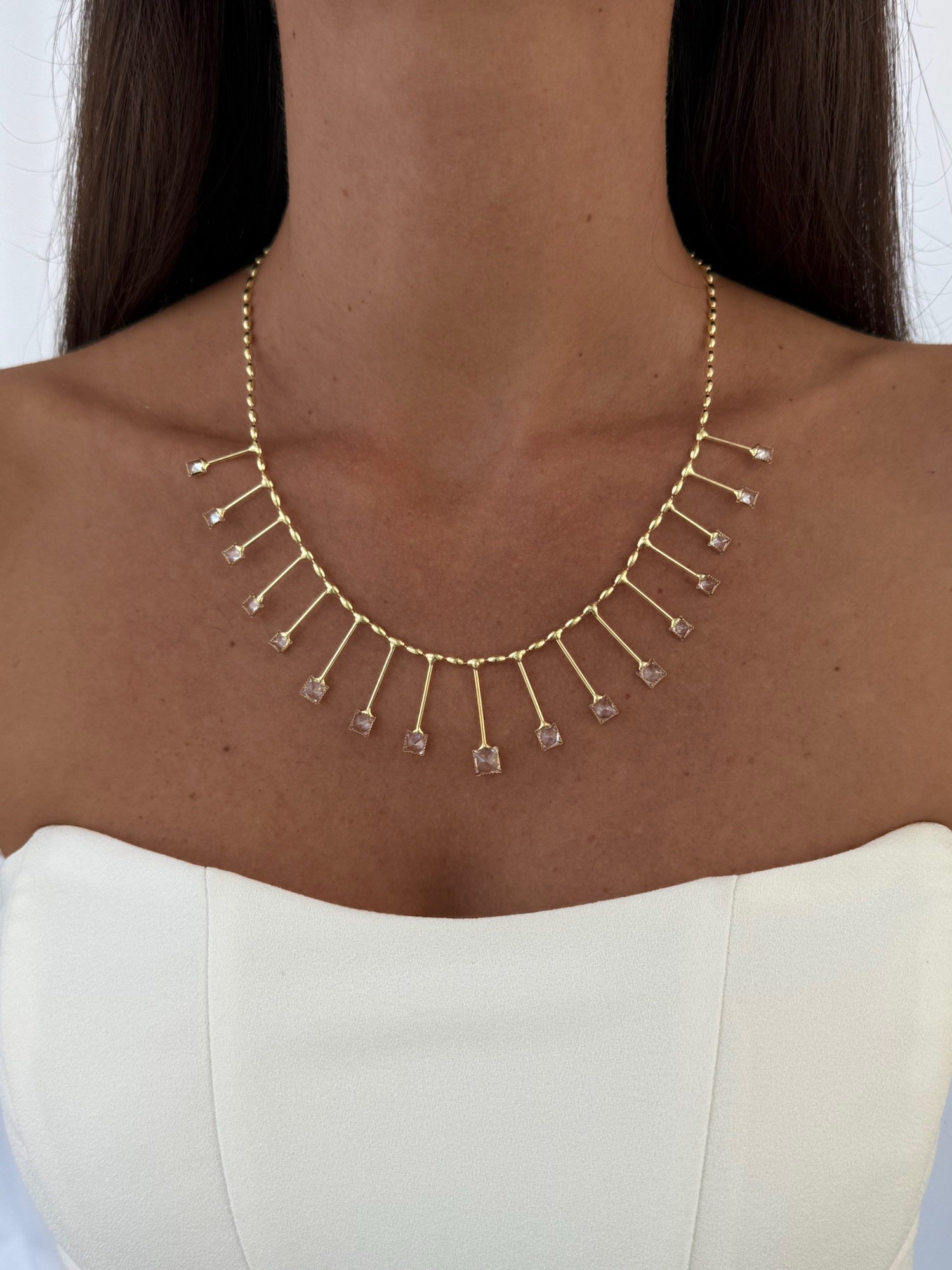 Özel Seri Kare Zirkon Taş Çubuk Tasarım Gold Kolye