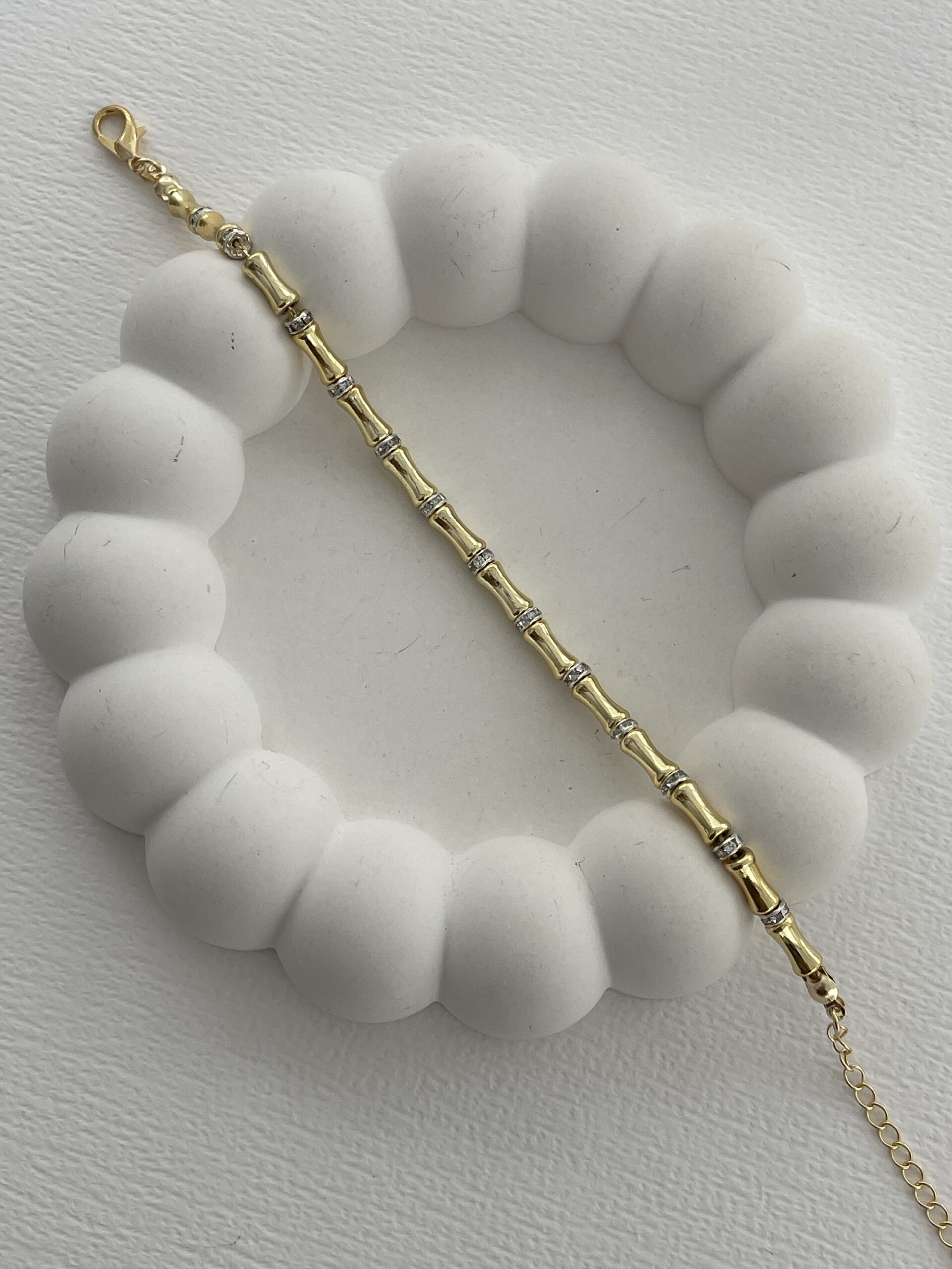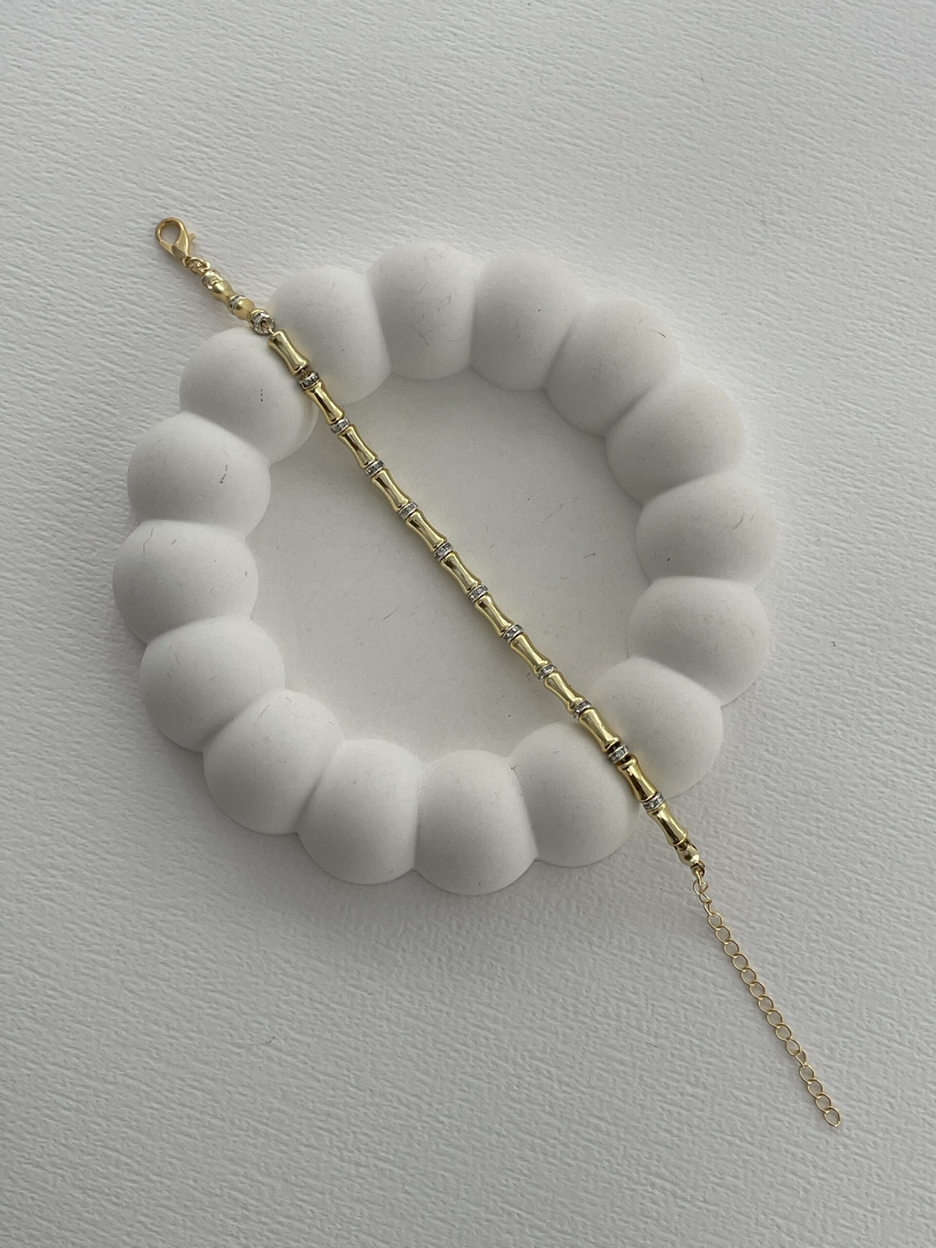 Özel Seri Kemik Tasarım Zirkon Taşlı Gold Bileklik