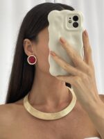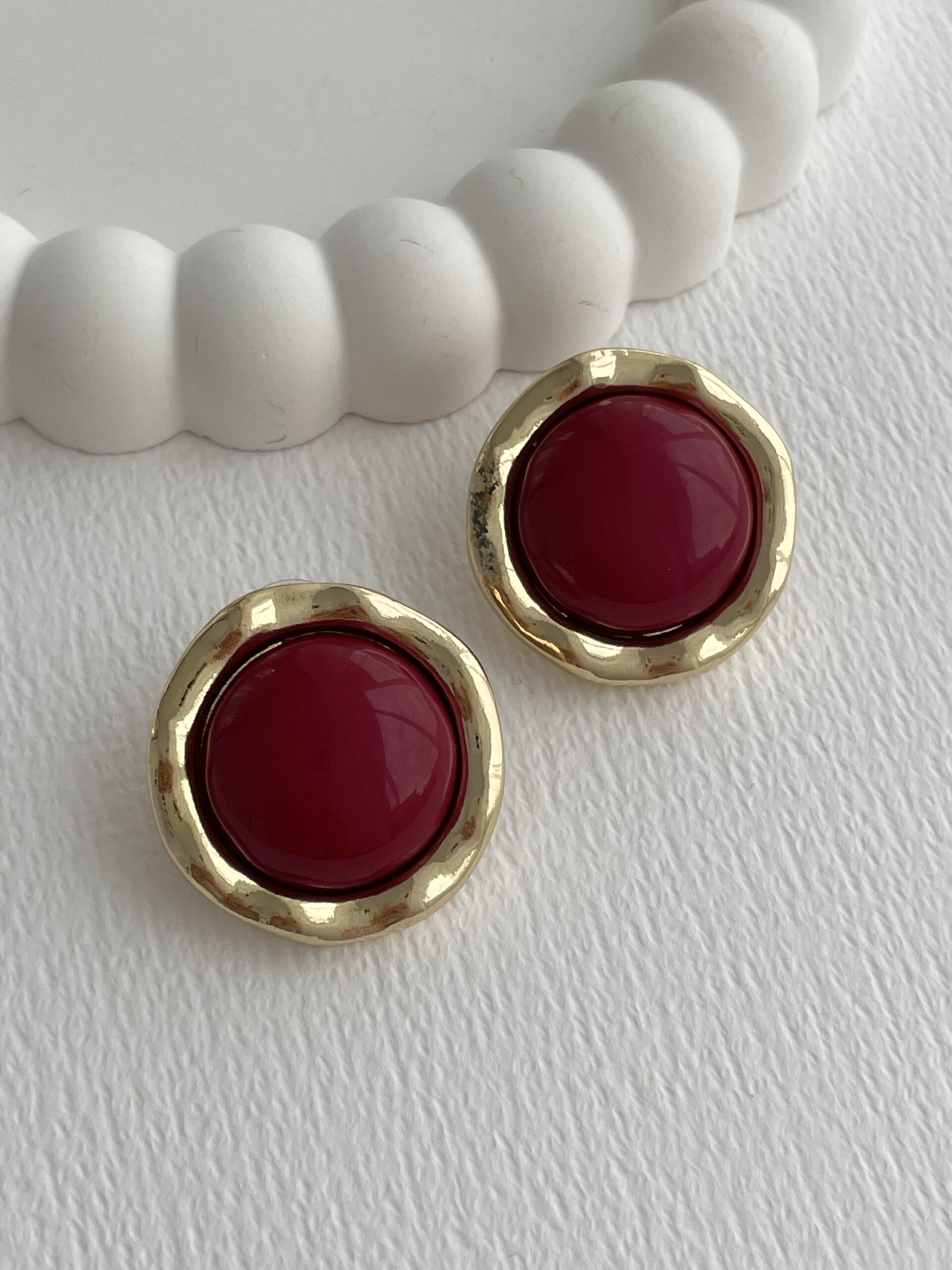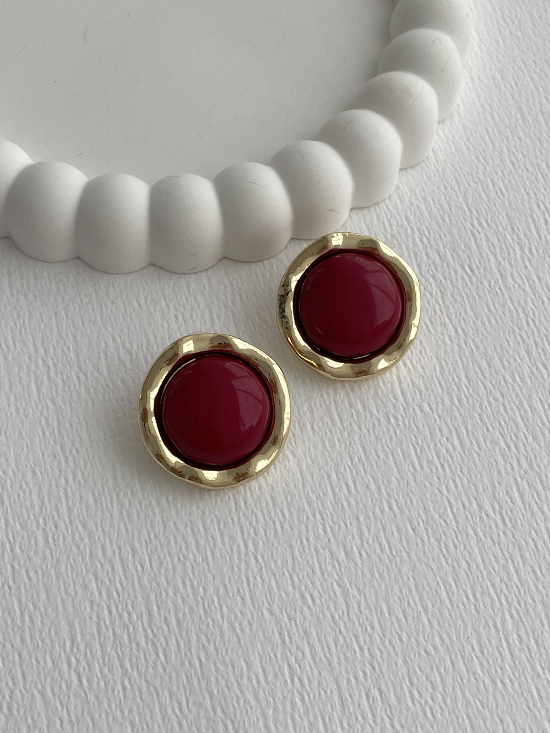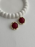 Özel Seri Kenarları Desenli Bordo Mineli Gold Küpe