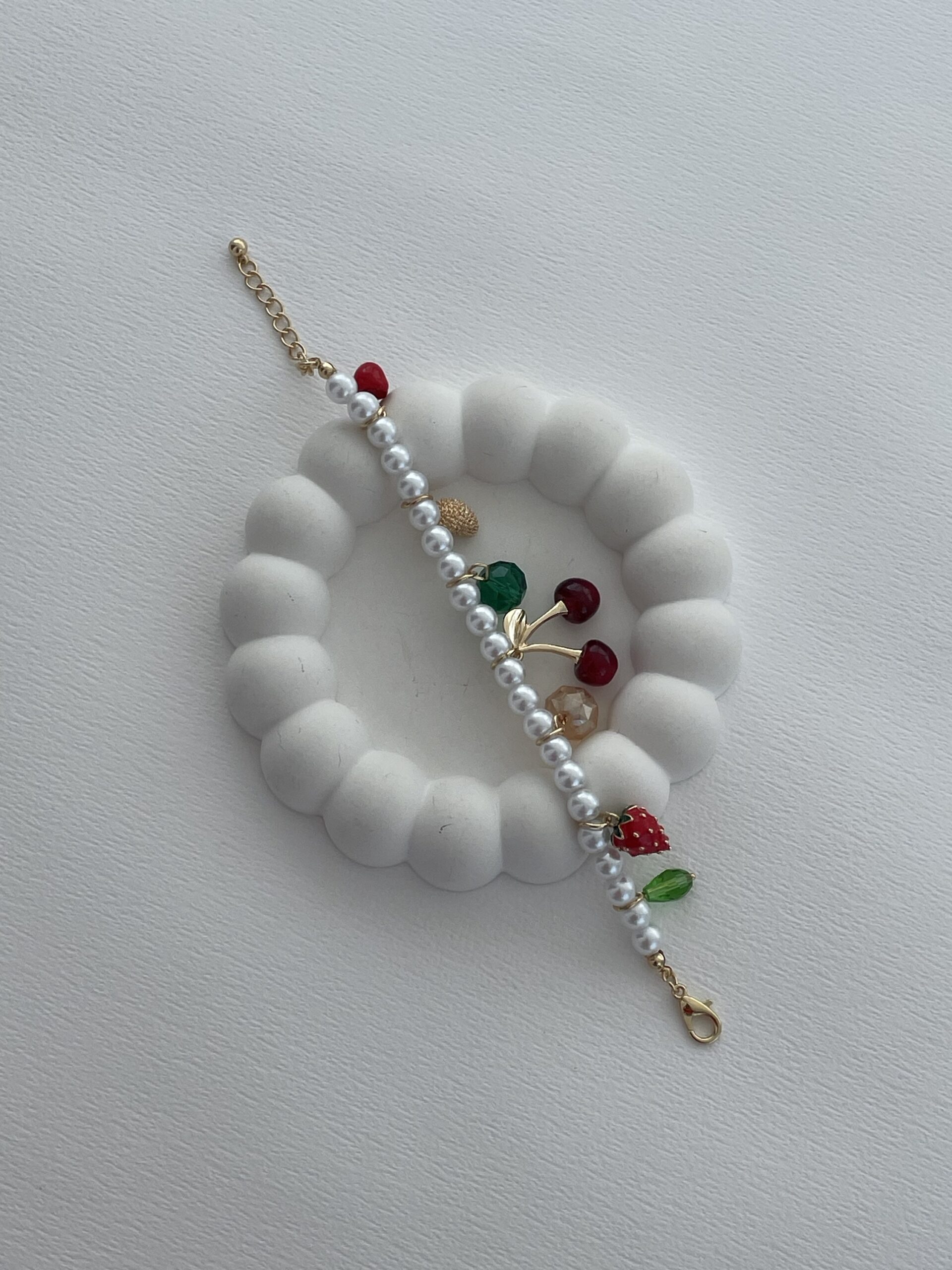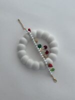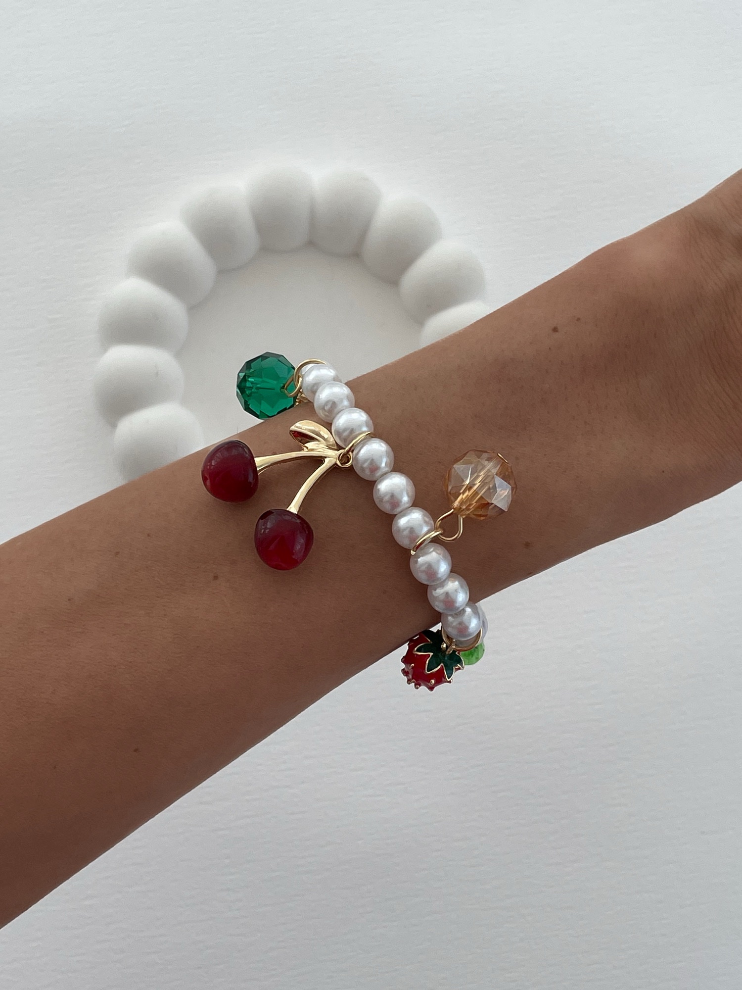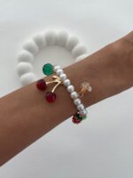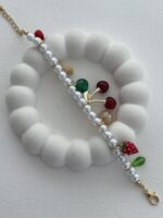 Özel Seri Kiraz Renkli Taşlı Charm Gold İnci Bileklik