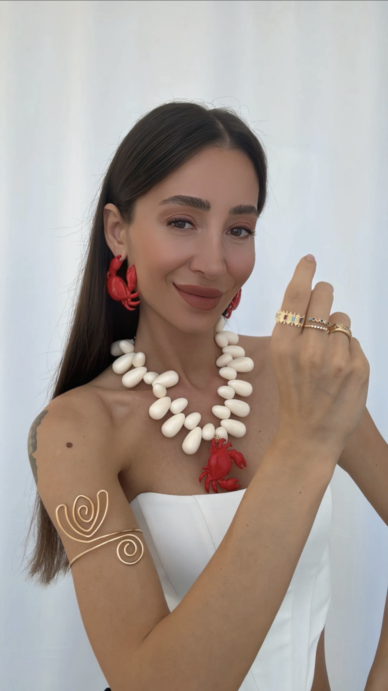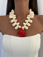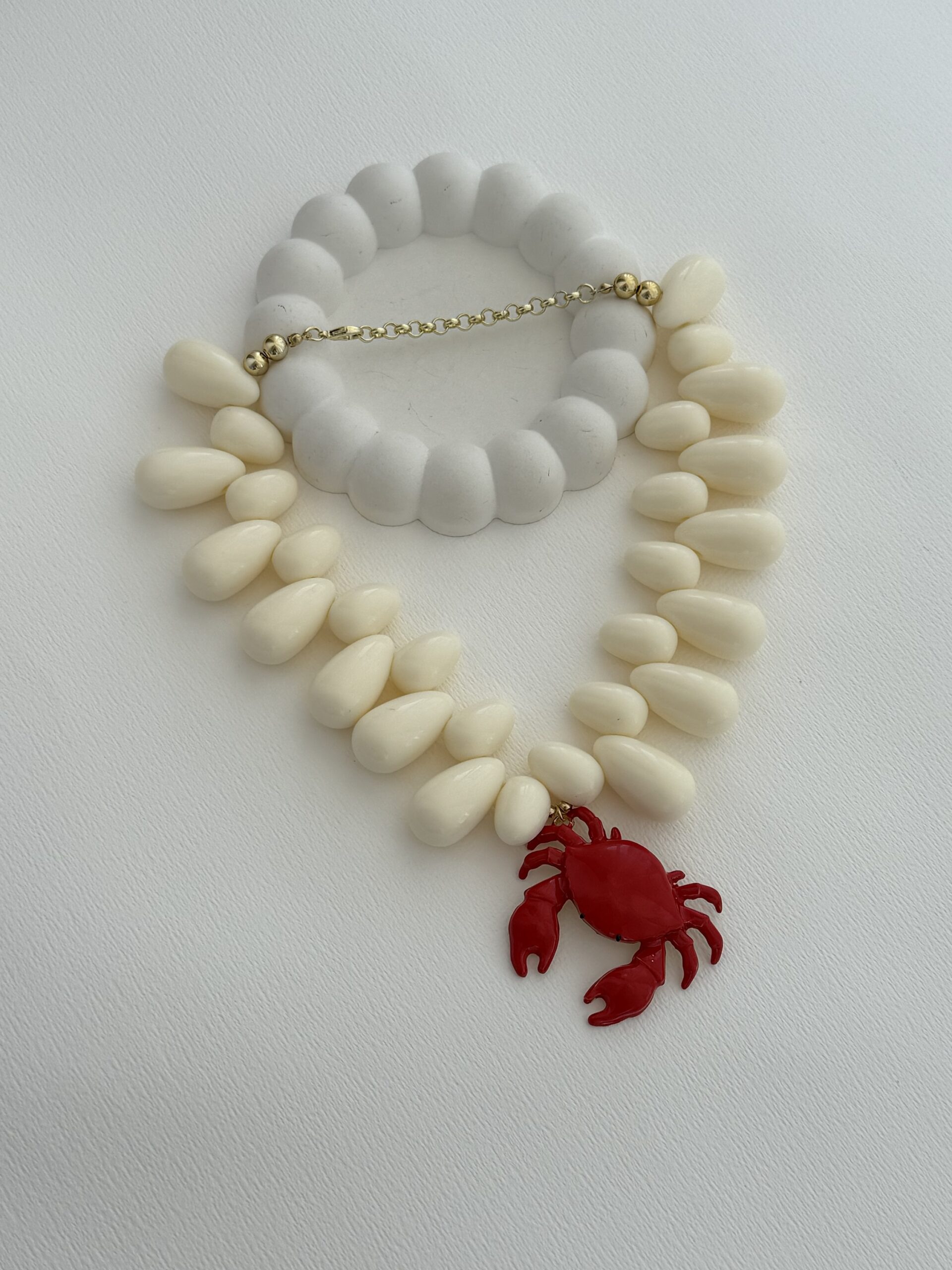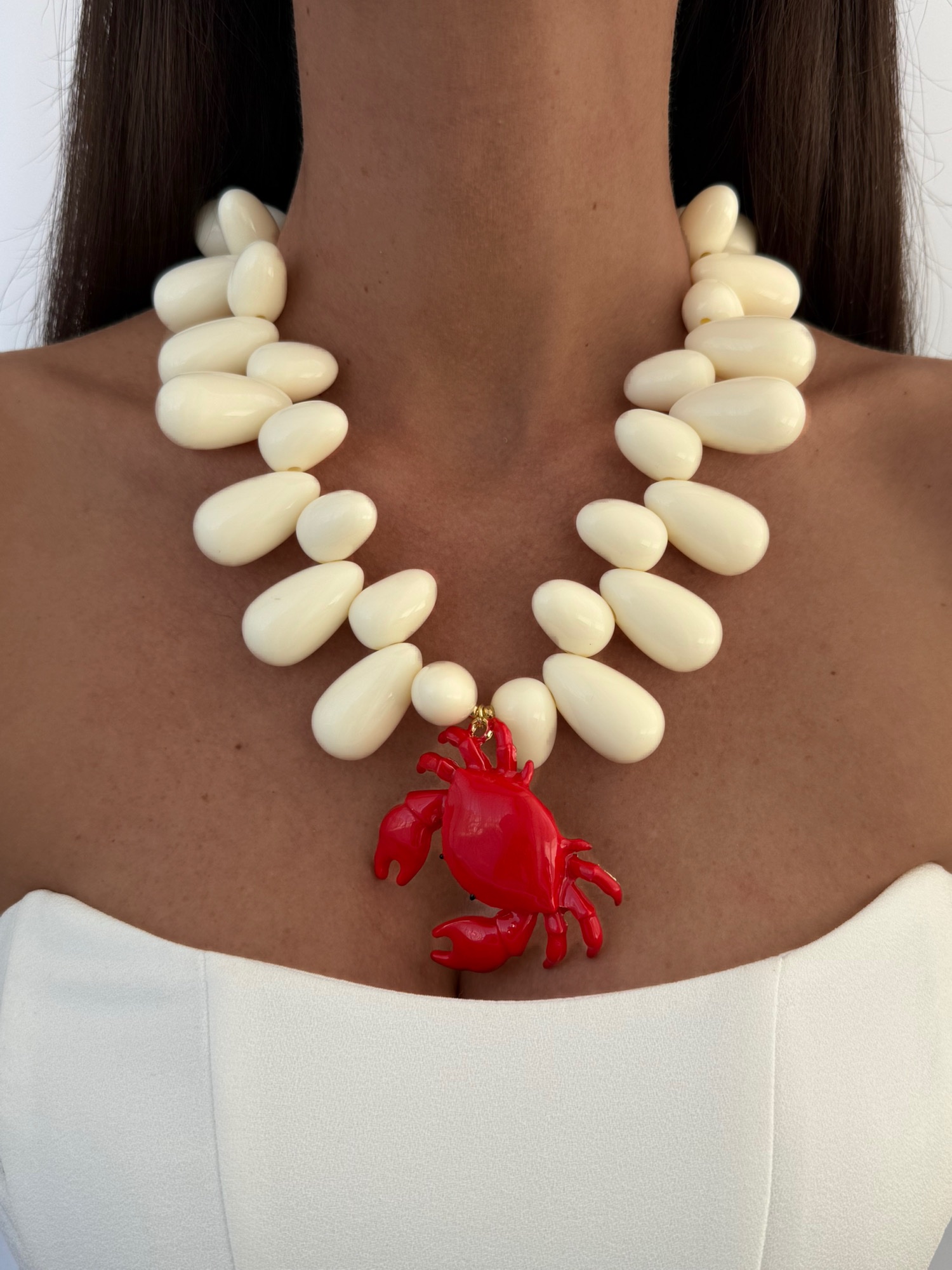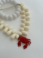 Özel Seri Kırmızı Yengeç Charm Krem Boncuk Marka Kolye