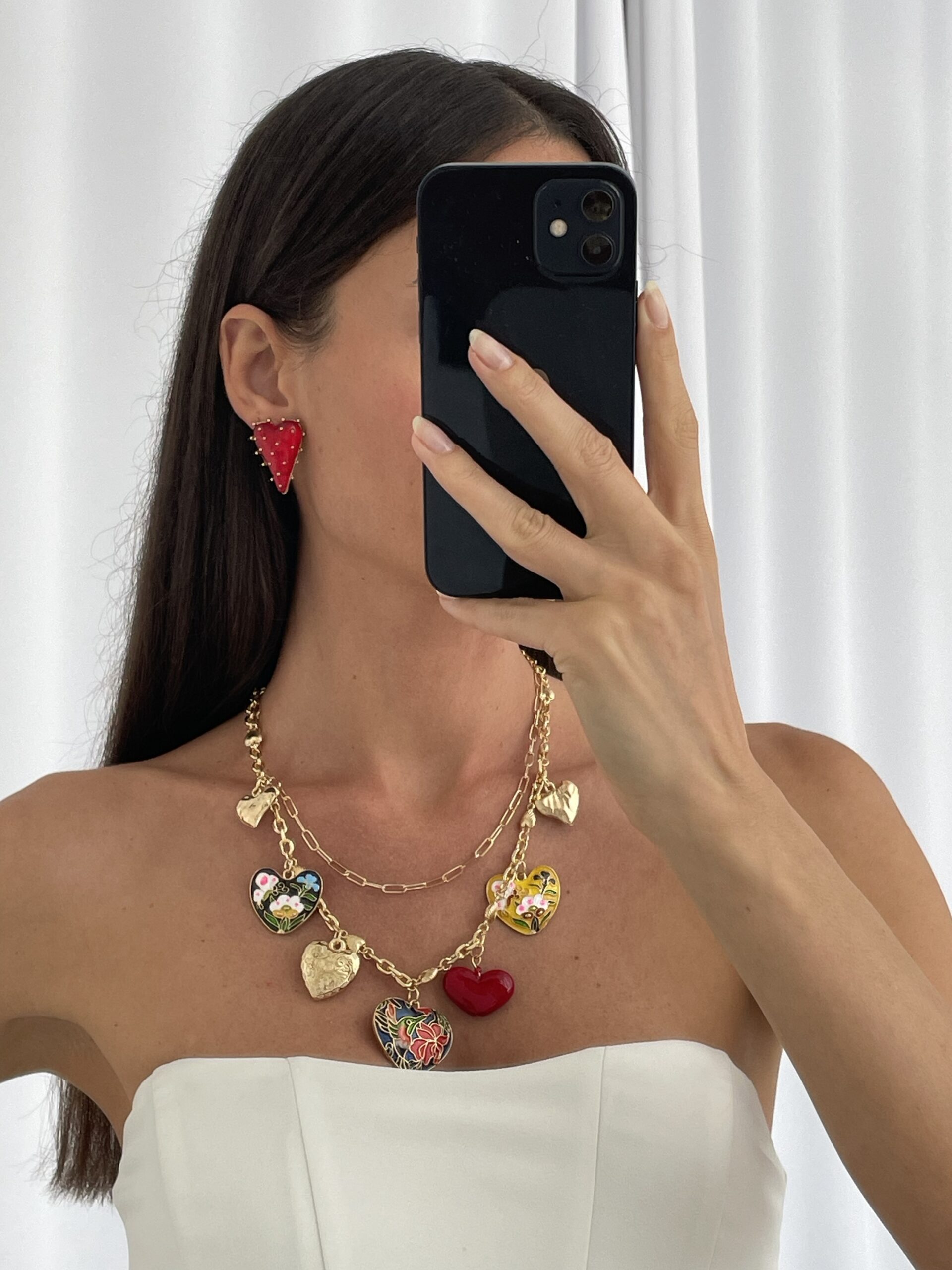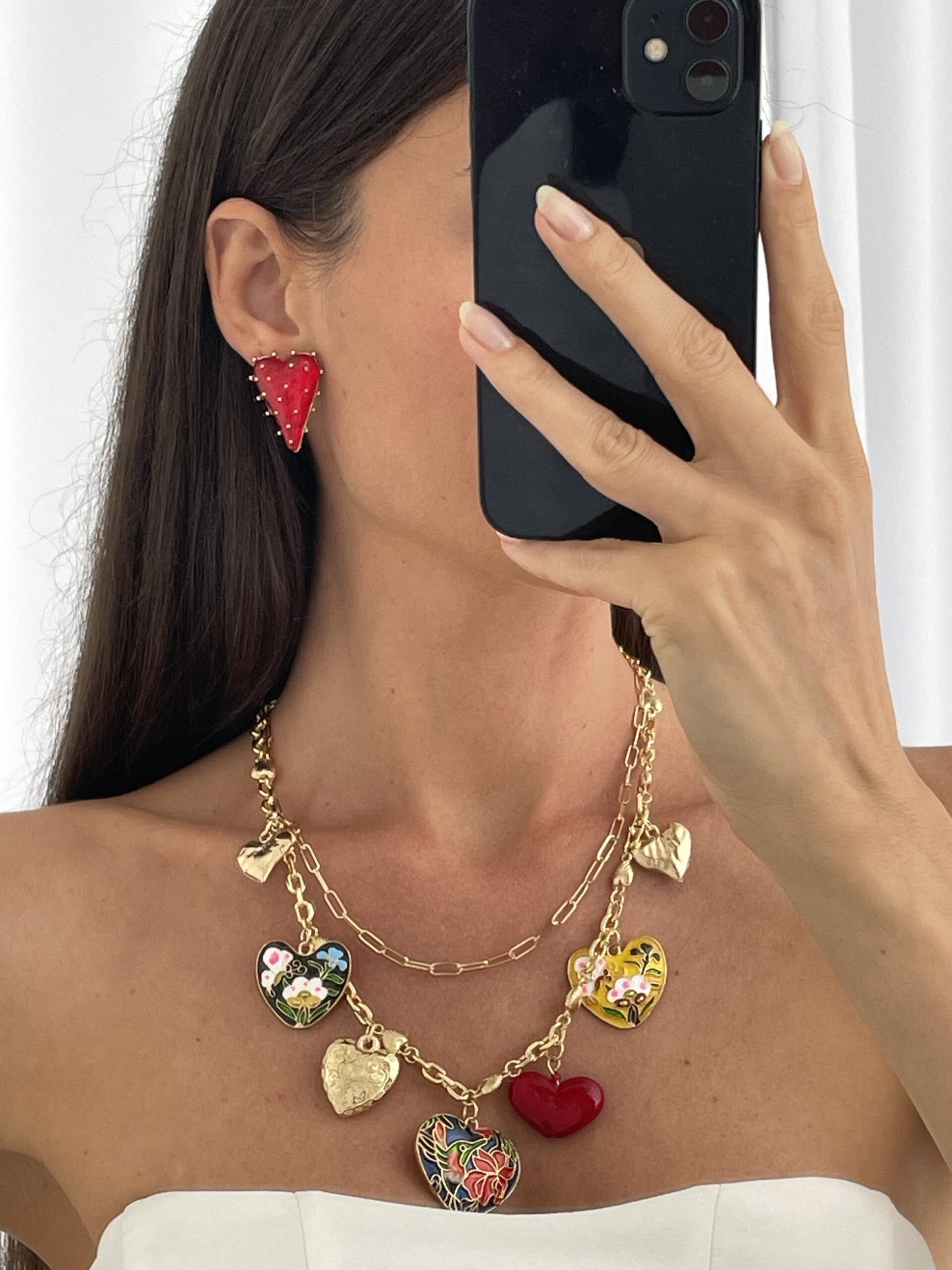 Özel Seri Kırmızı Çilek Tasarım Gold Küpe