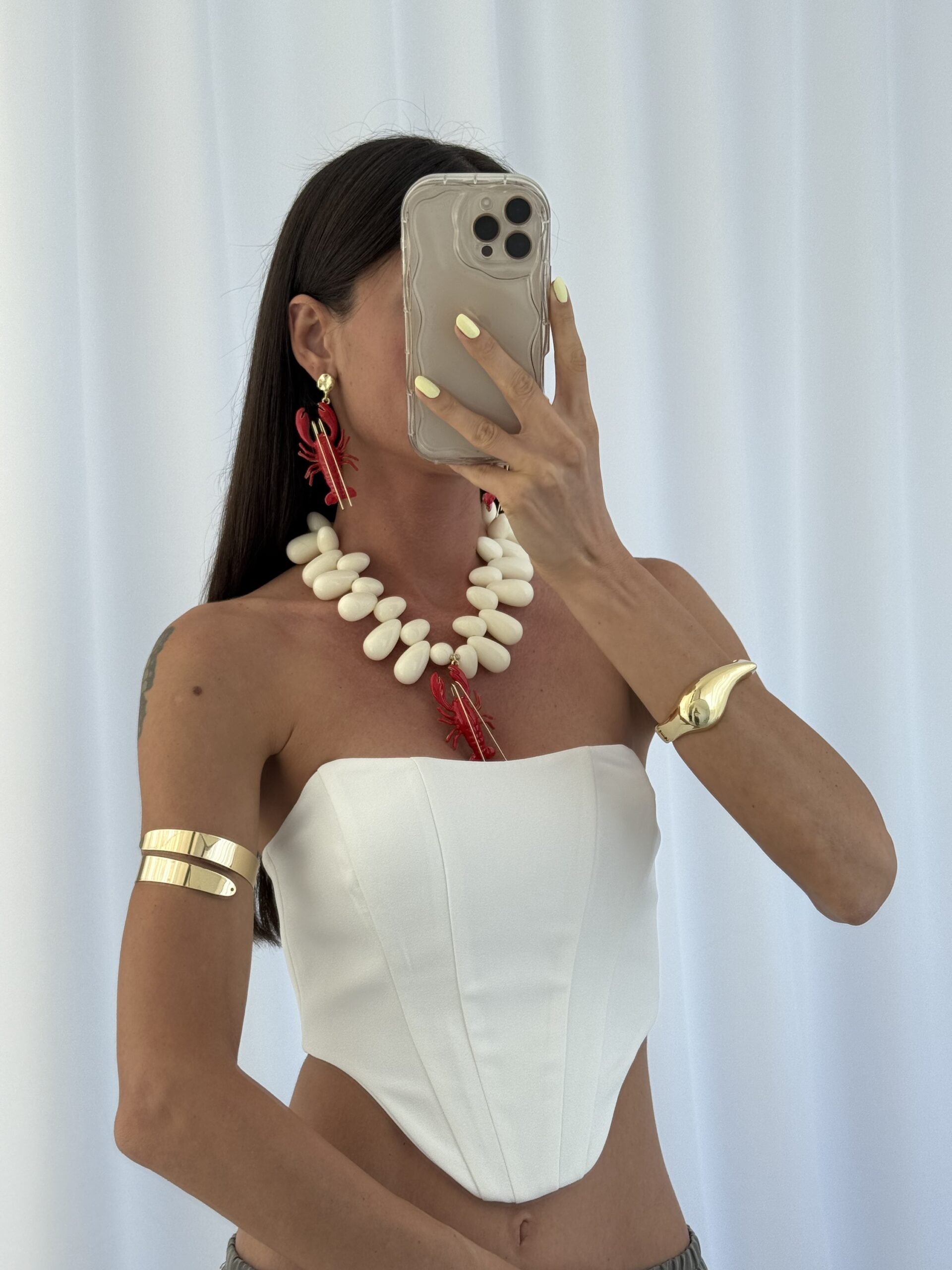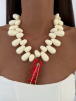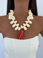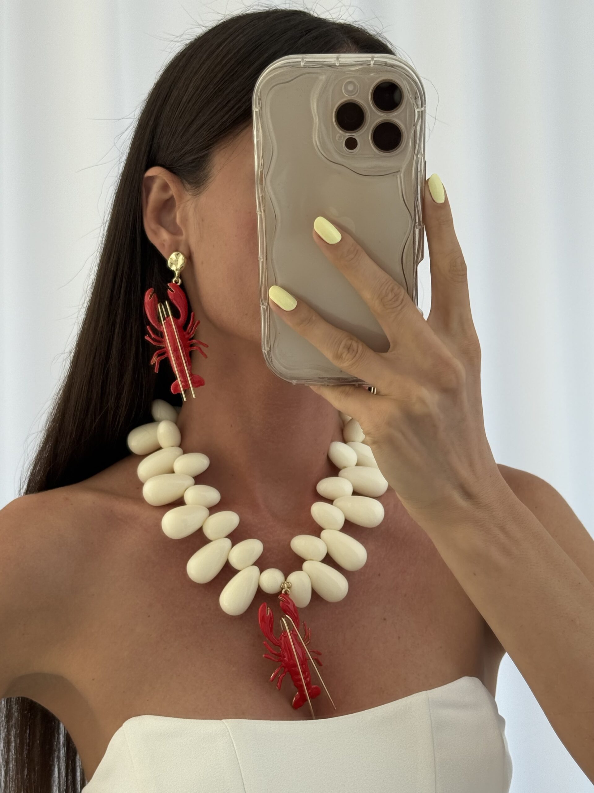 Özel Seri Kırmızı Istakoz Charm Krem Boncuk Marka Kolye
