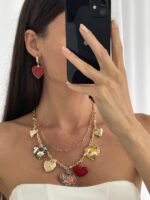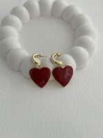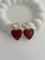 Özel Seri Kırmızı Kalp Tasarım Gold Küpe
