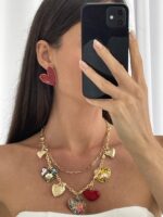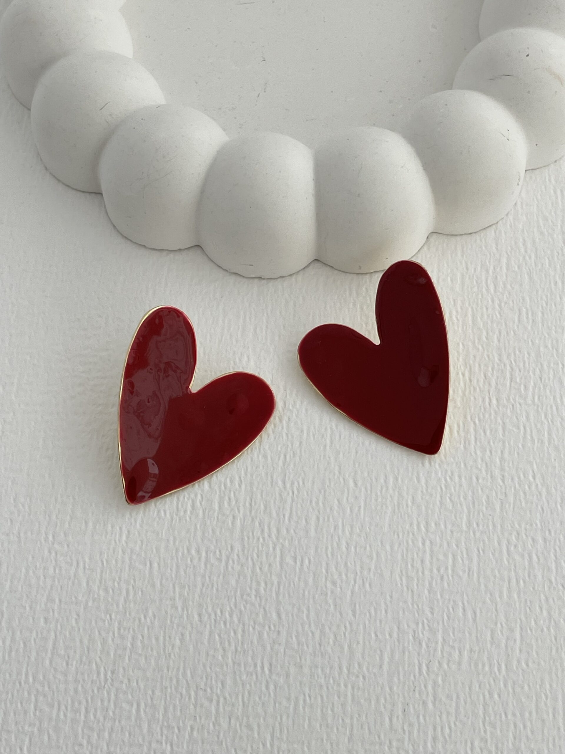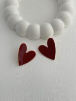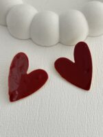 Özel Seri Kırmızı Kalp Tasarım Gold Küpe