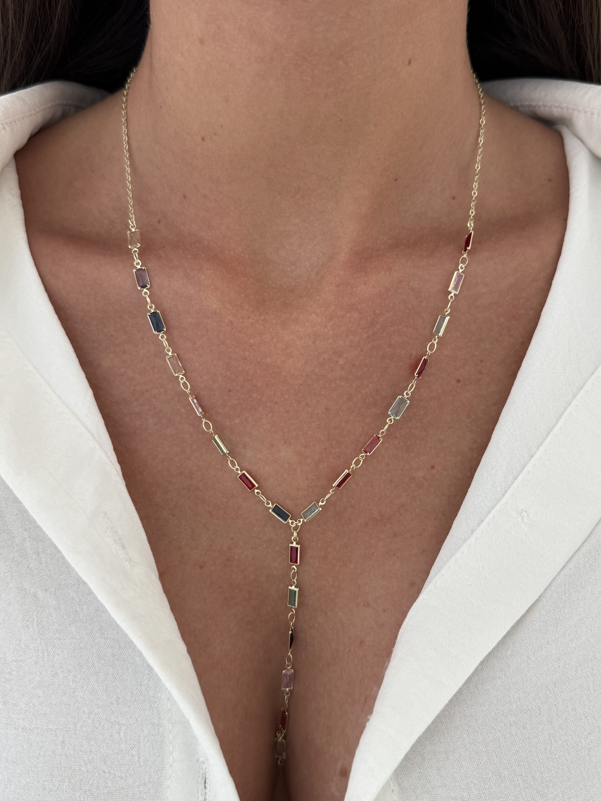 Özel Seri Kırmızı & Mavi Baget Taş Gold Y Kolye