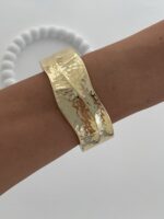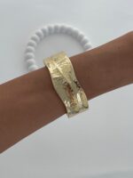 Özel Seri Kıvrım Detay Desenli Gold Kelepçe Bileklik