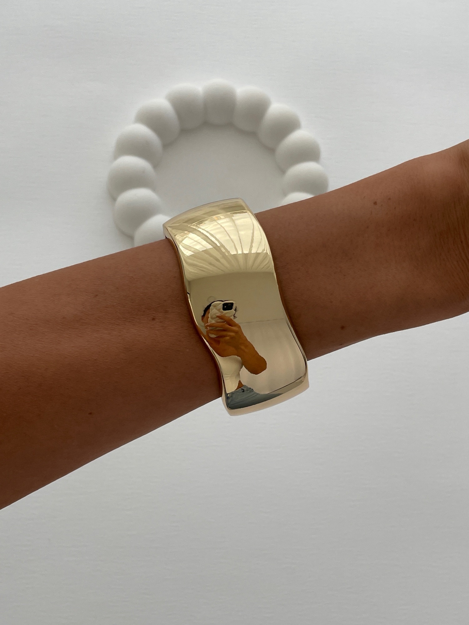 Özel Seri Kıvrım Detay Gold Kelepçe Bileklik