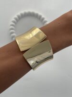 Özel Seri Kıvrım Detay Kalın Gold Kelepçe Bileklik