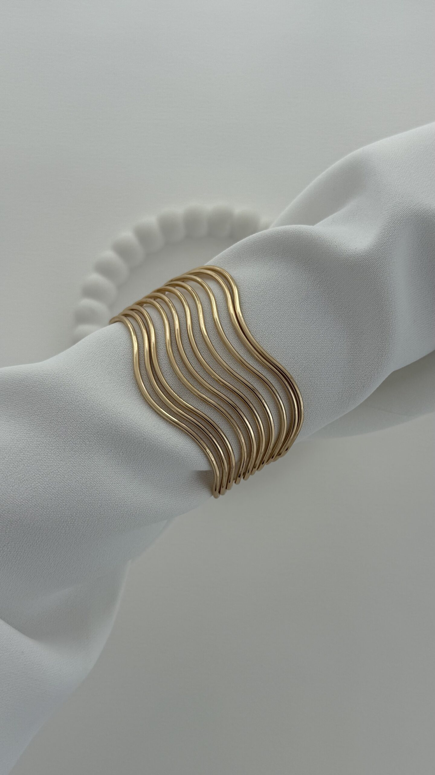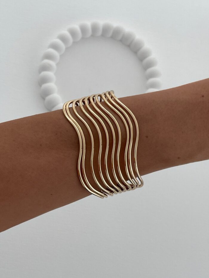 Özel Seri Kıvrım Detay Tel Tasarım Gold Ayarlanabilir Bileklik