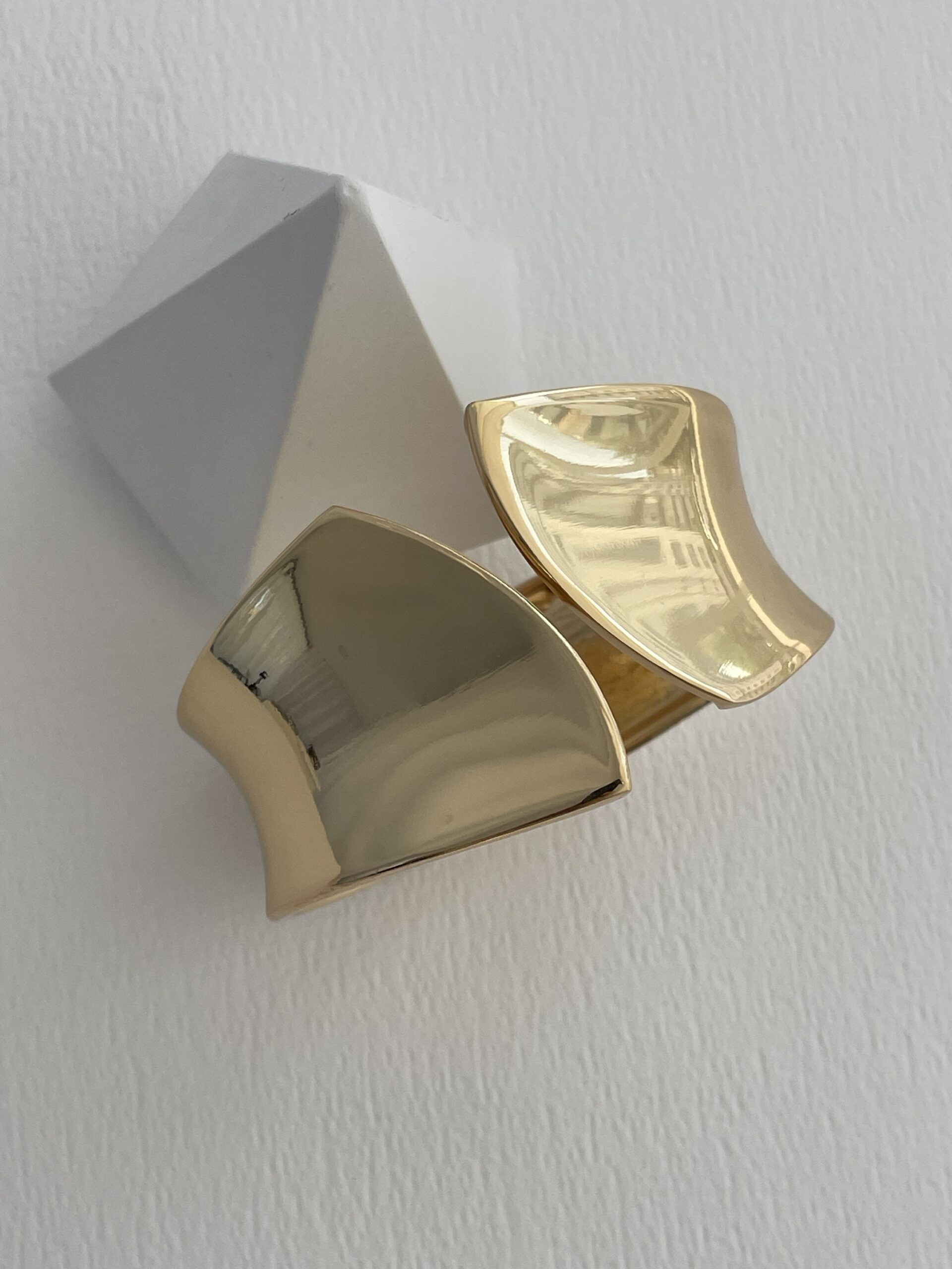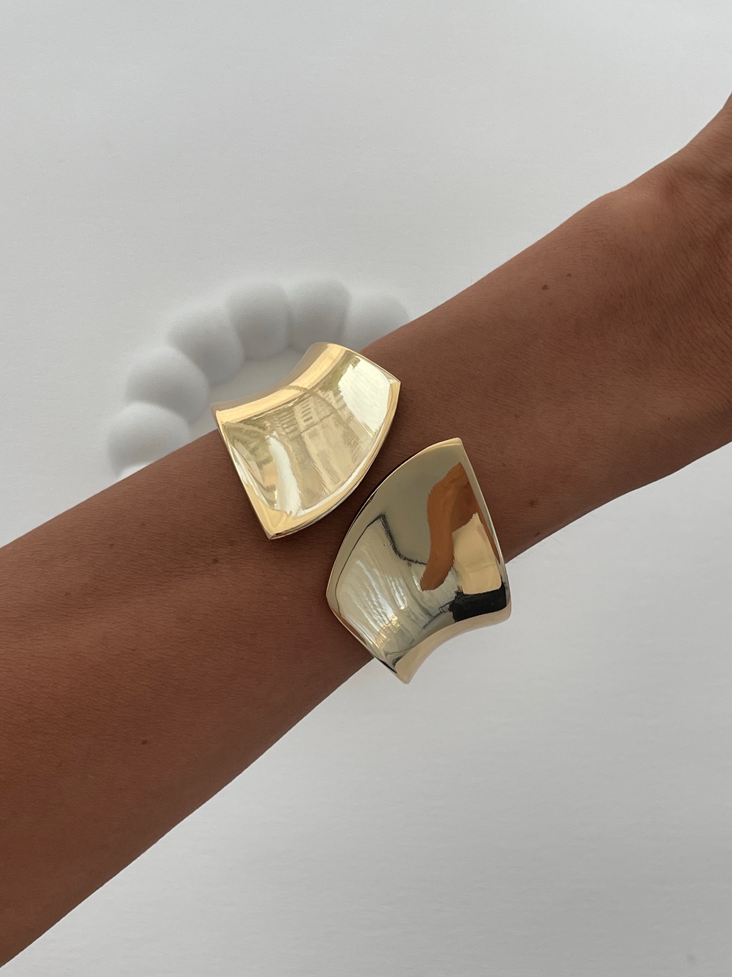 Özel Seri Kıvrım Detay V Tasarım Gold Kelepçe Bileklik