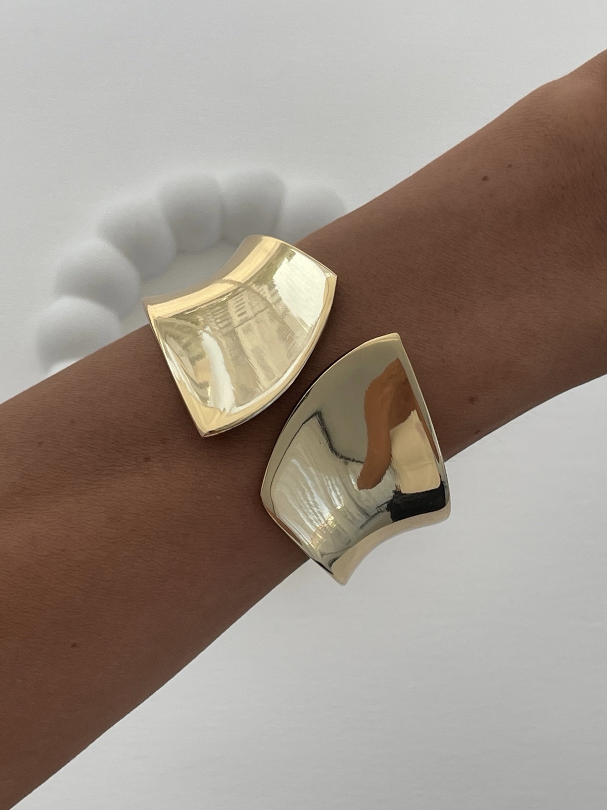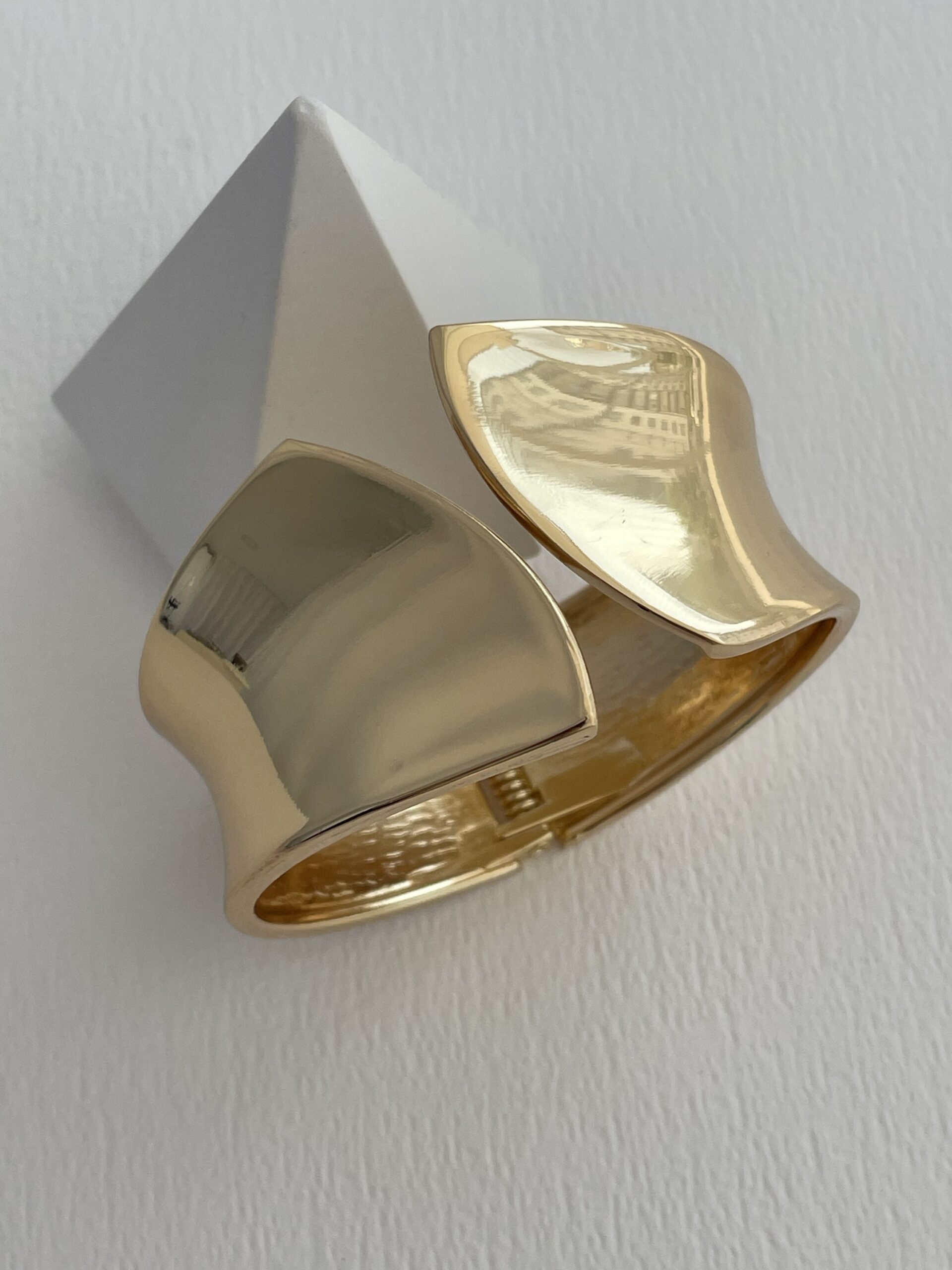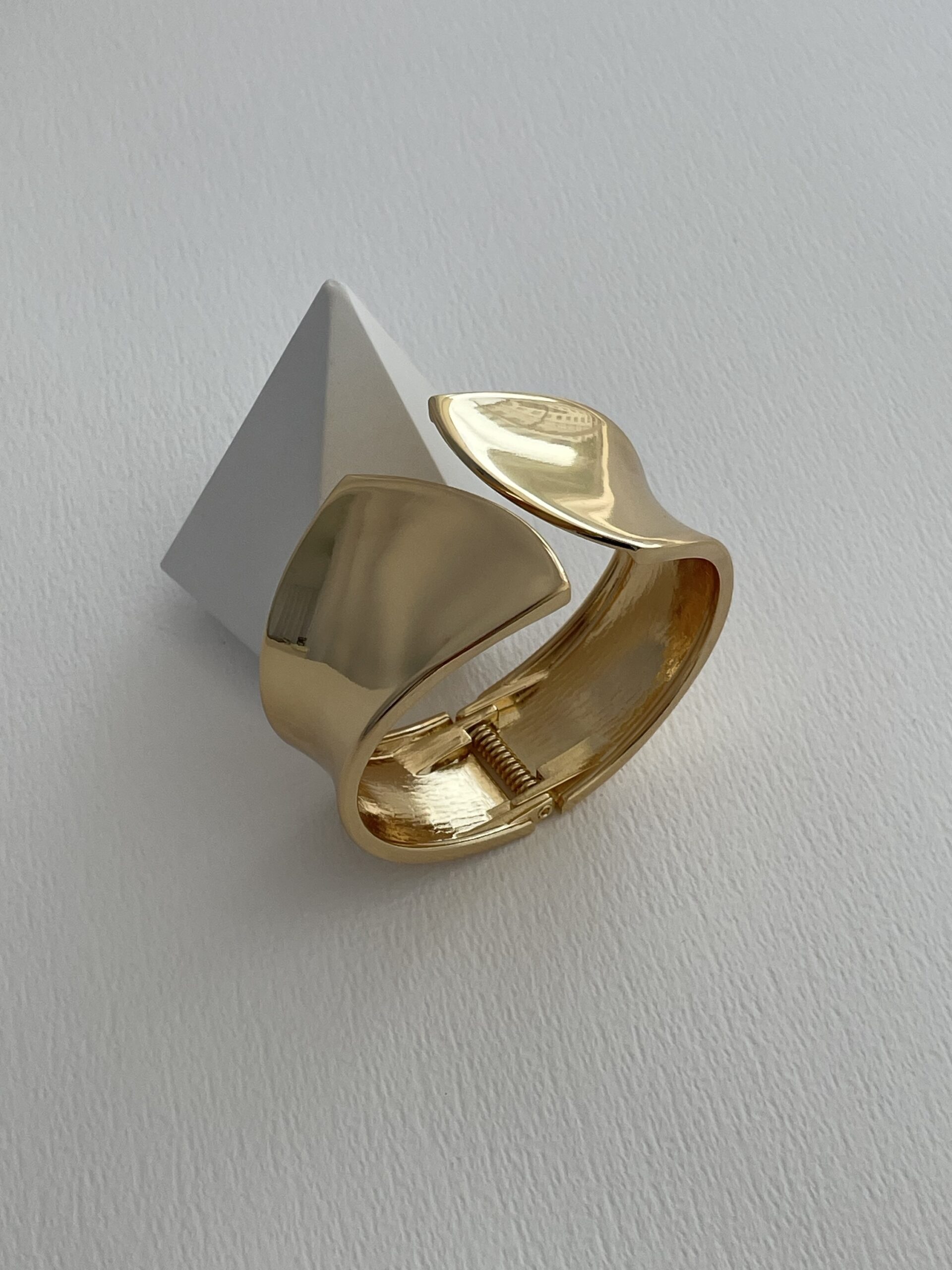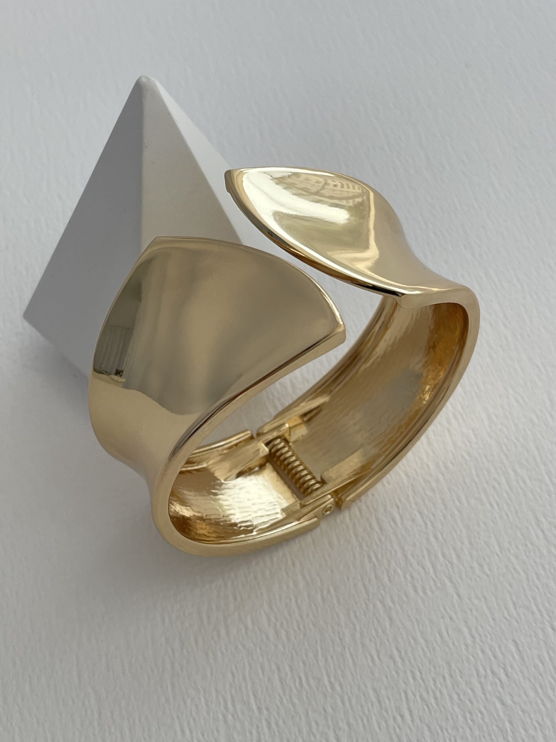 Özel Seri Kıvrım Detay V Tasarım Gold Kelepçe Bileklik