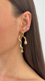 Özel Seri Kıvrım Tasarım Damla Detay Gold Küpe