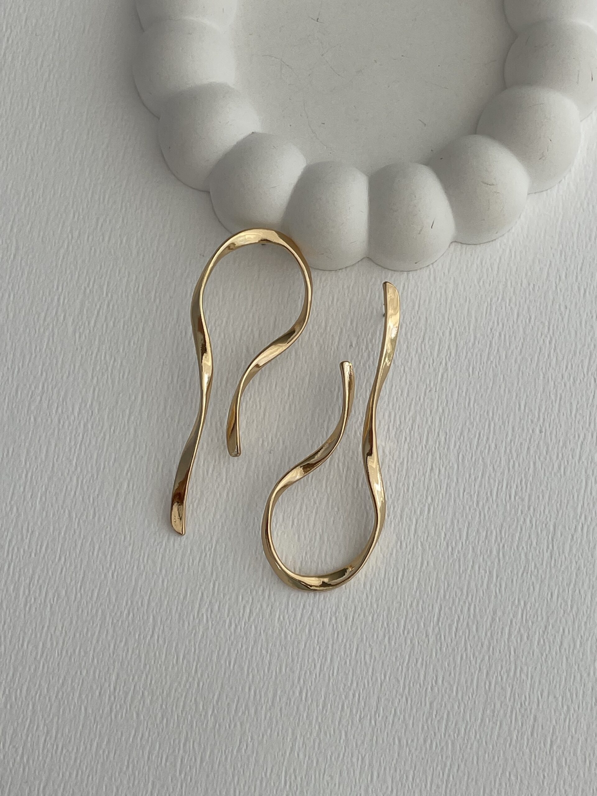 Özel Seri Kıvrım Tasarım Gold Maksi Boy Küpe