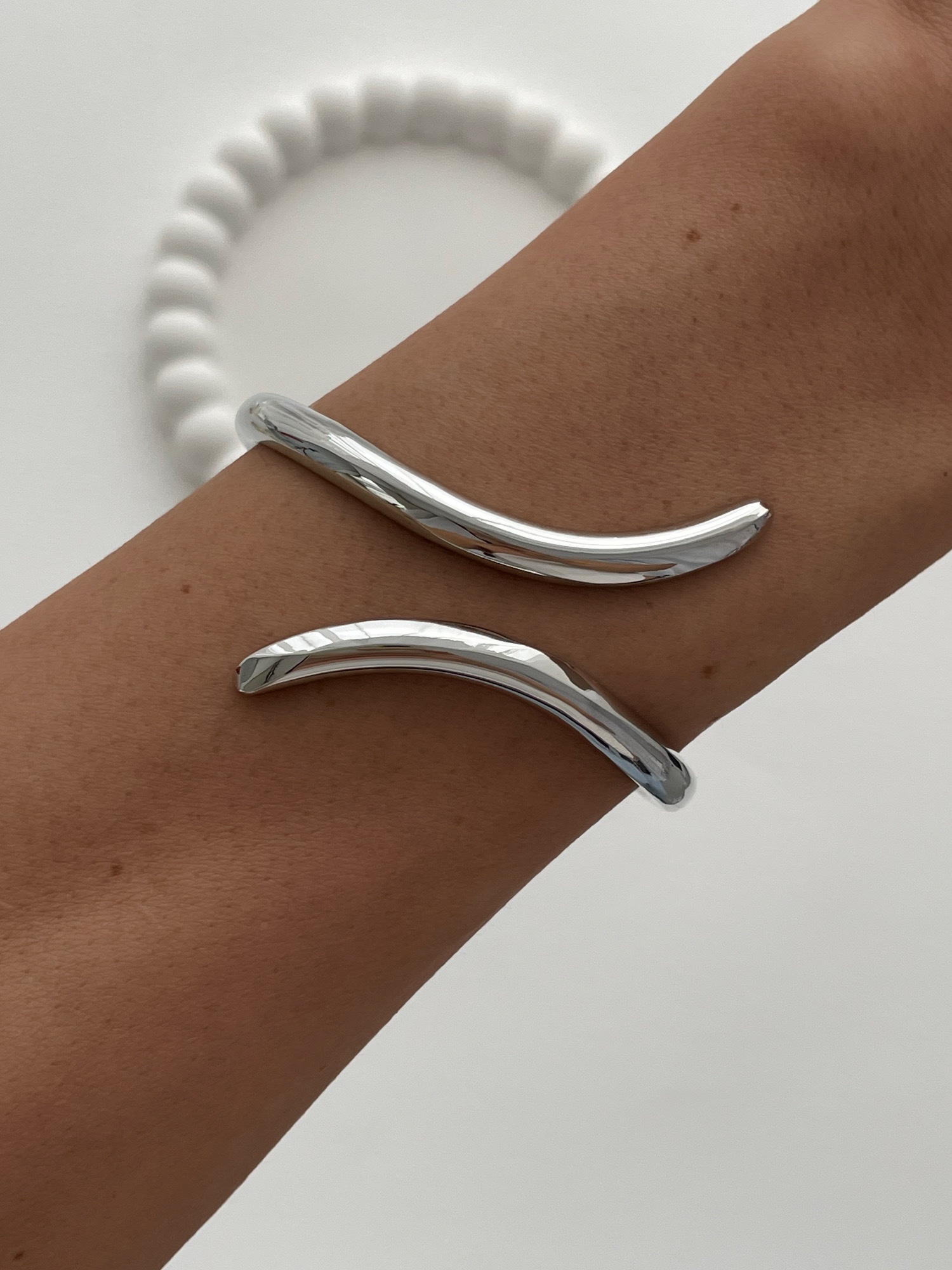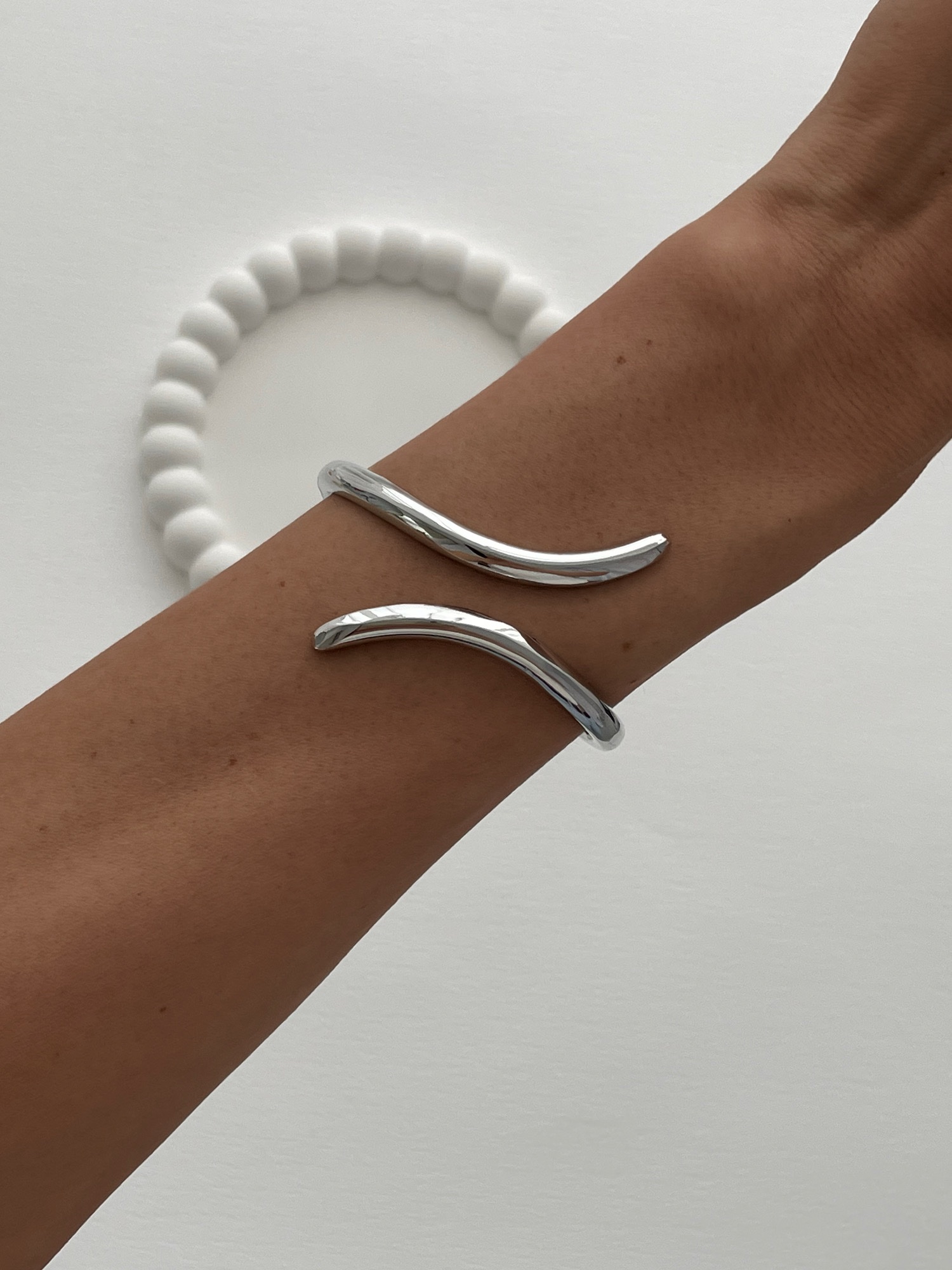 Özel Seri Kıvrım Tasarım Gümüş Kelepçe Bileklik