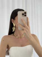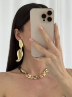 Özel Seri Kıvrımlı Maksi Boy Gold Küpe