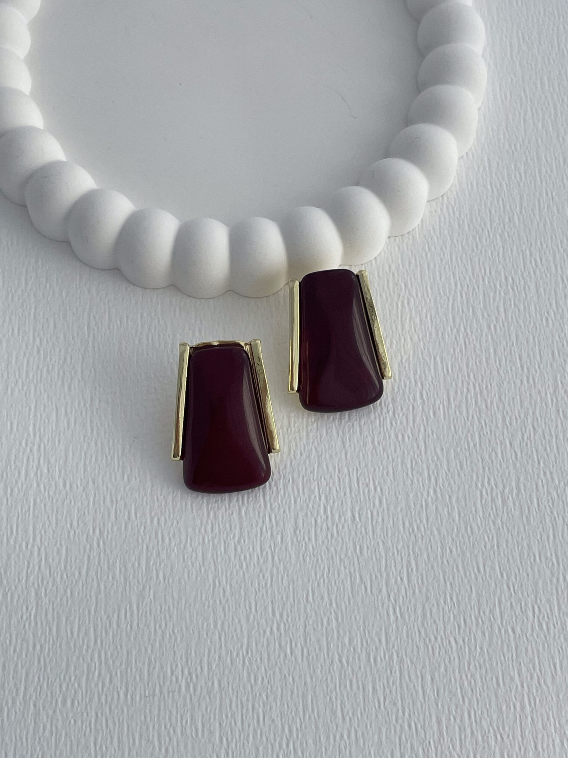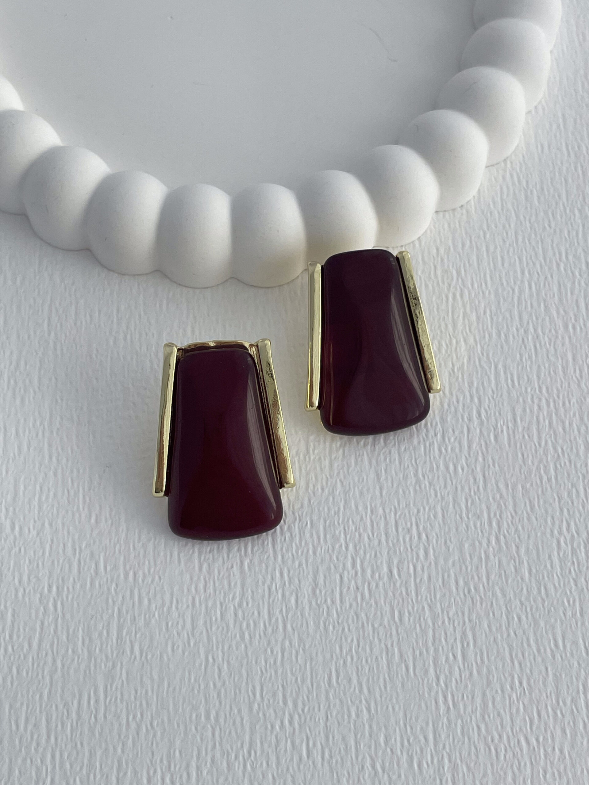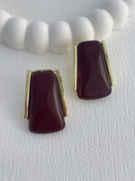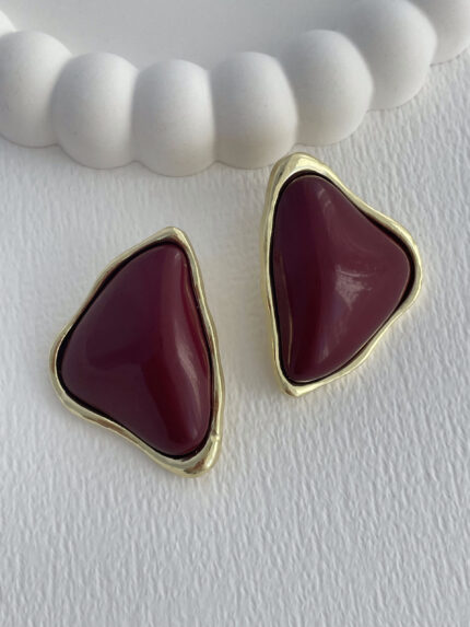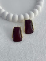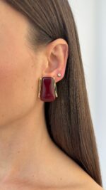 Özel Seri Koyu Bordo Mineli Geometrik Tasarım Gold Küpe