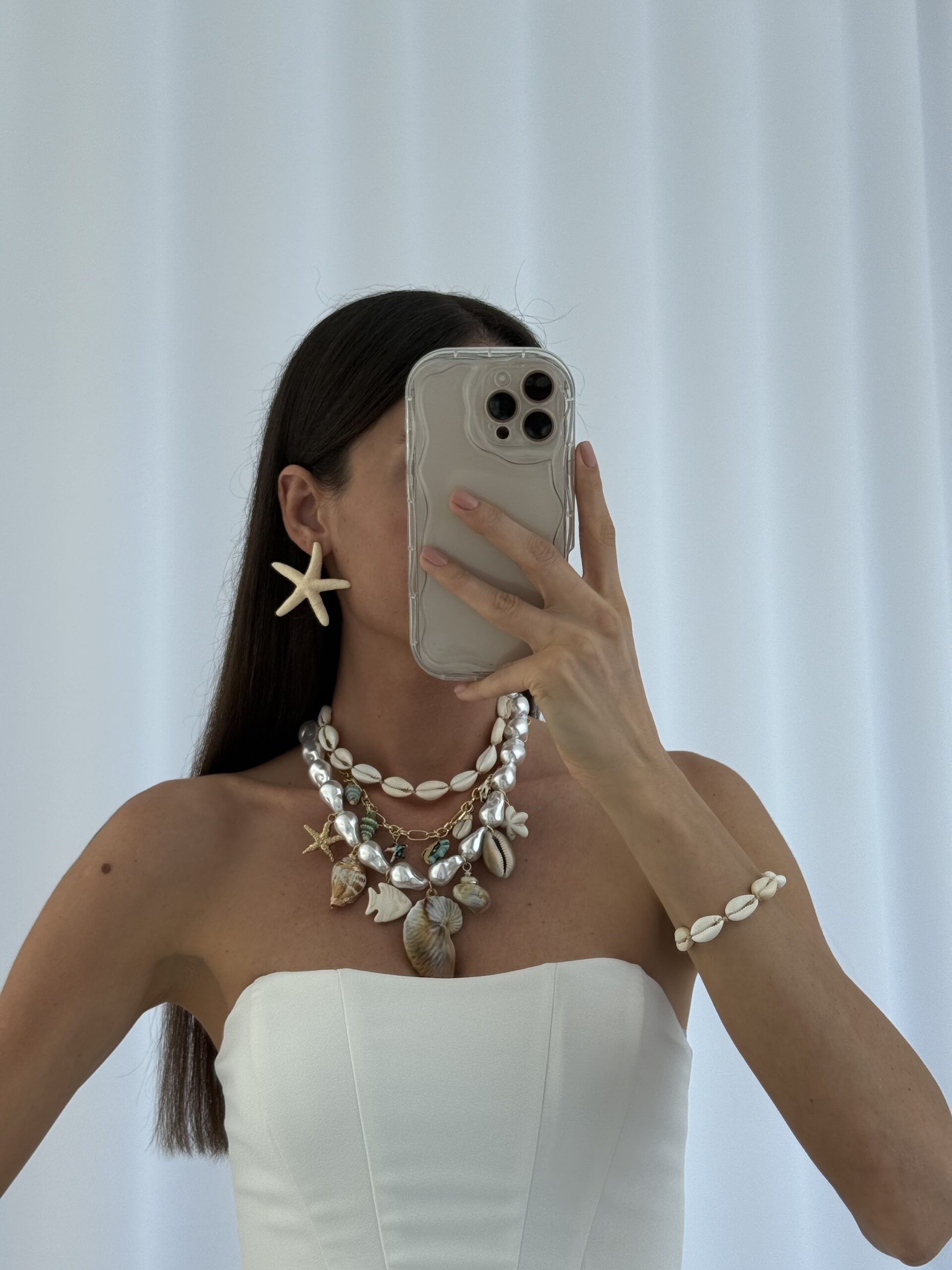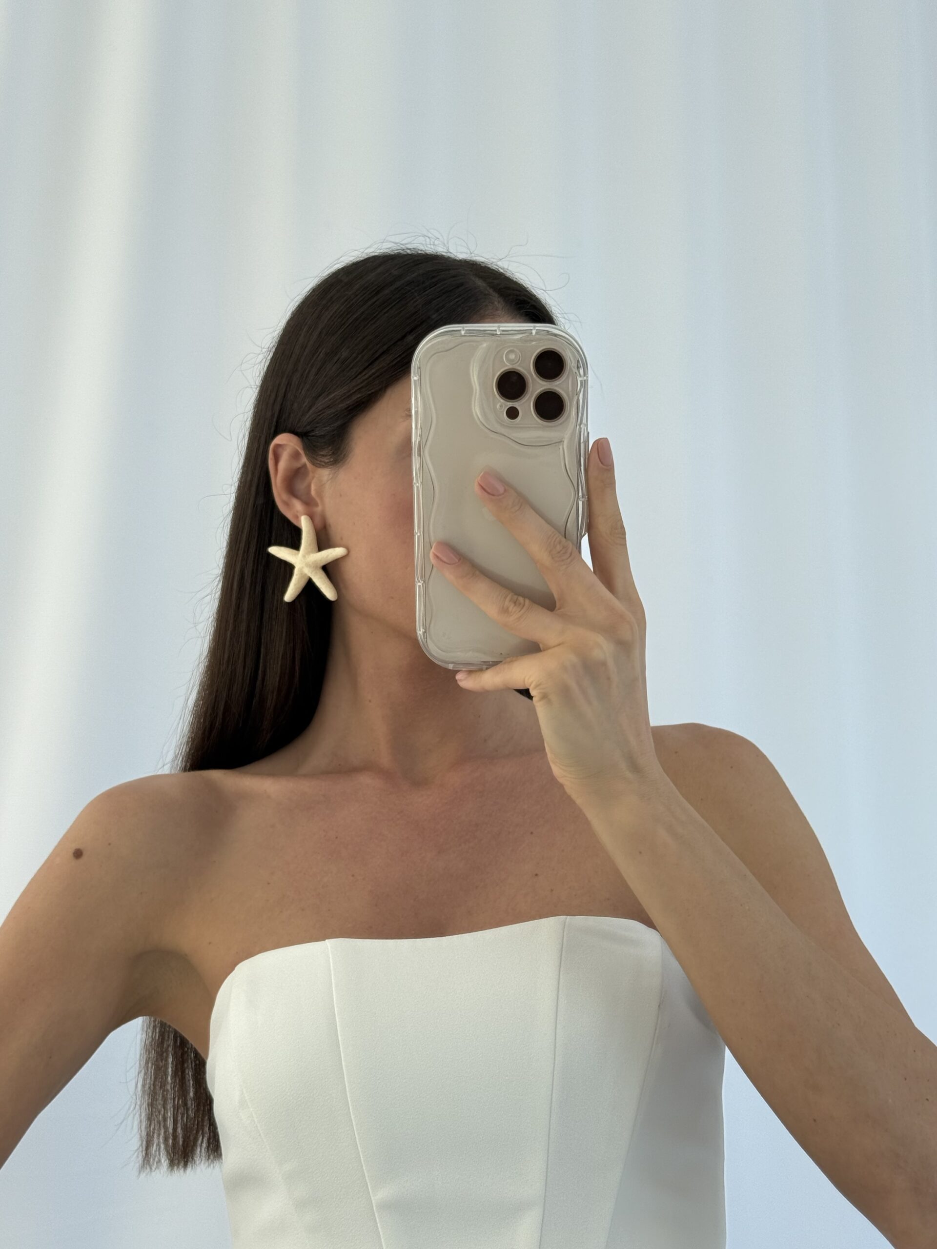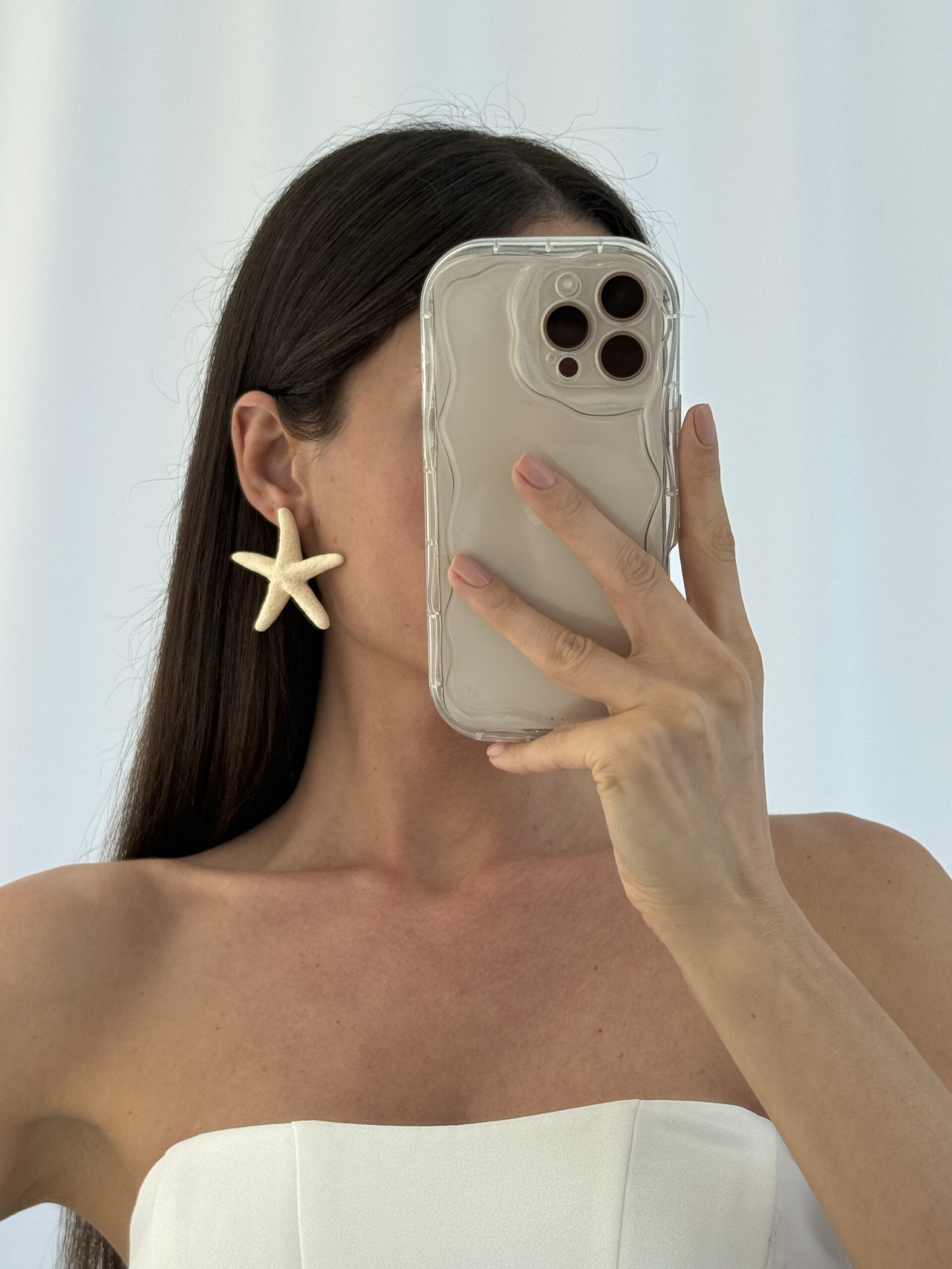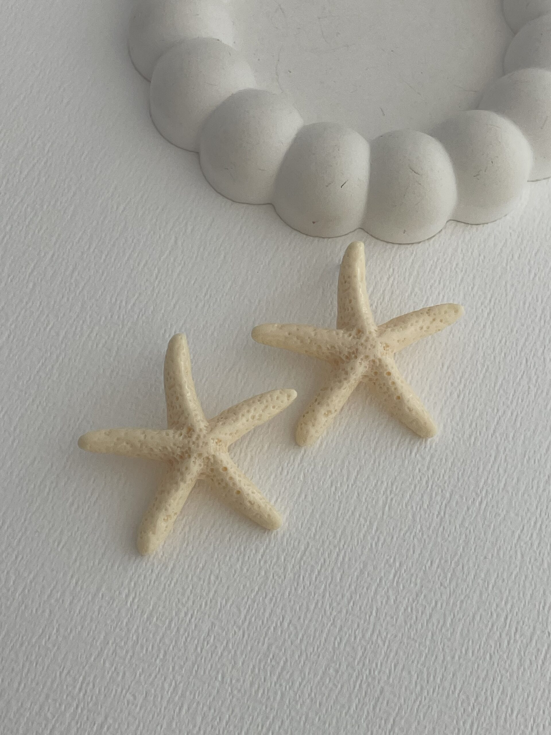 Özel Seri Krem Dokulu Deniz Yıldızı Küpe