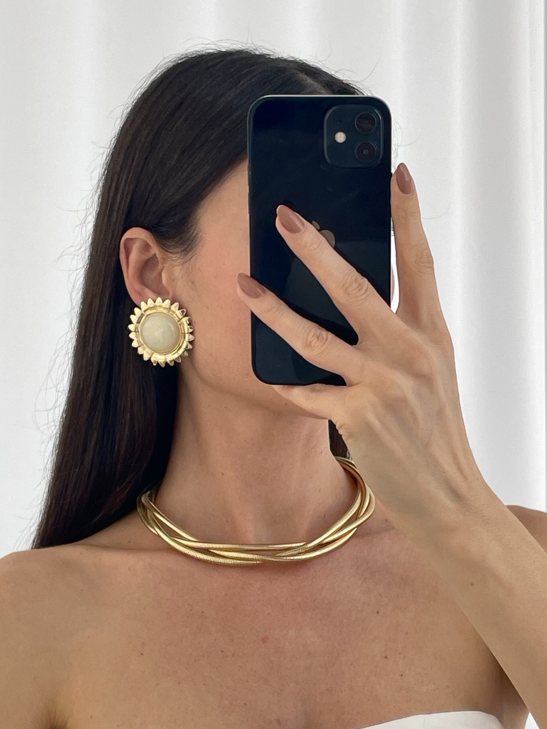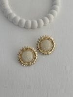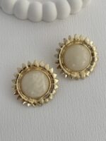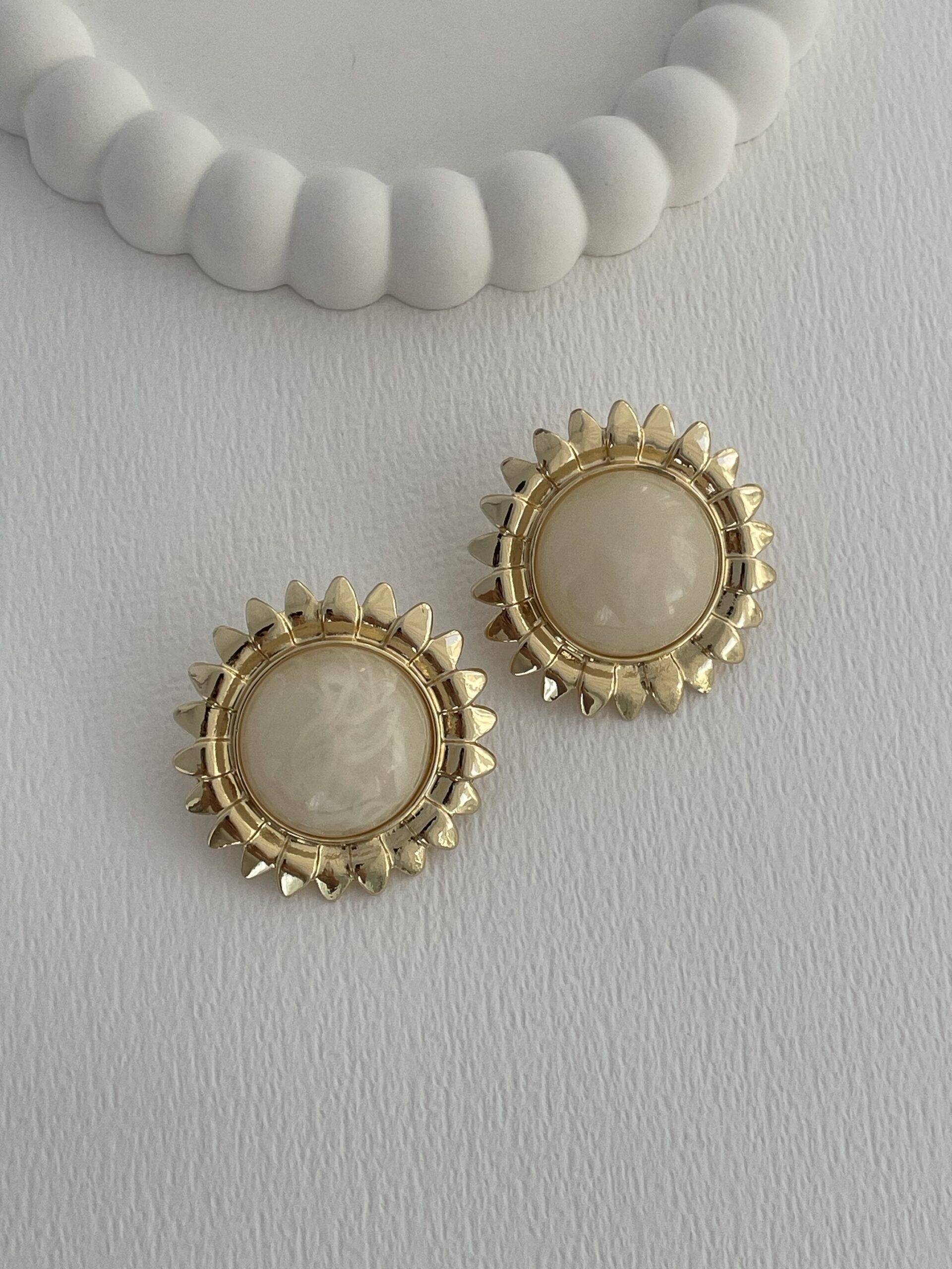 Özel Seri Krem Kemik Ayçiçek Tasarım Gold Küpe