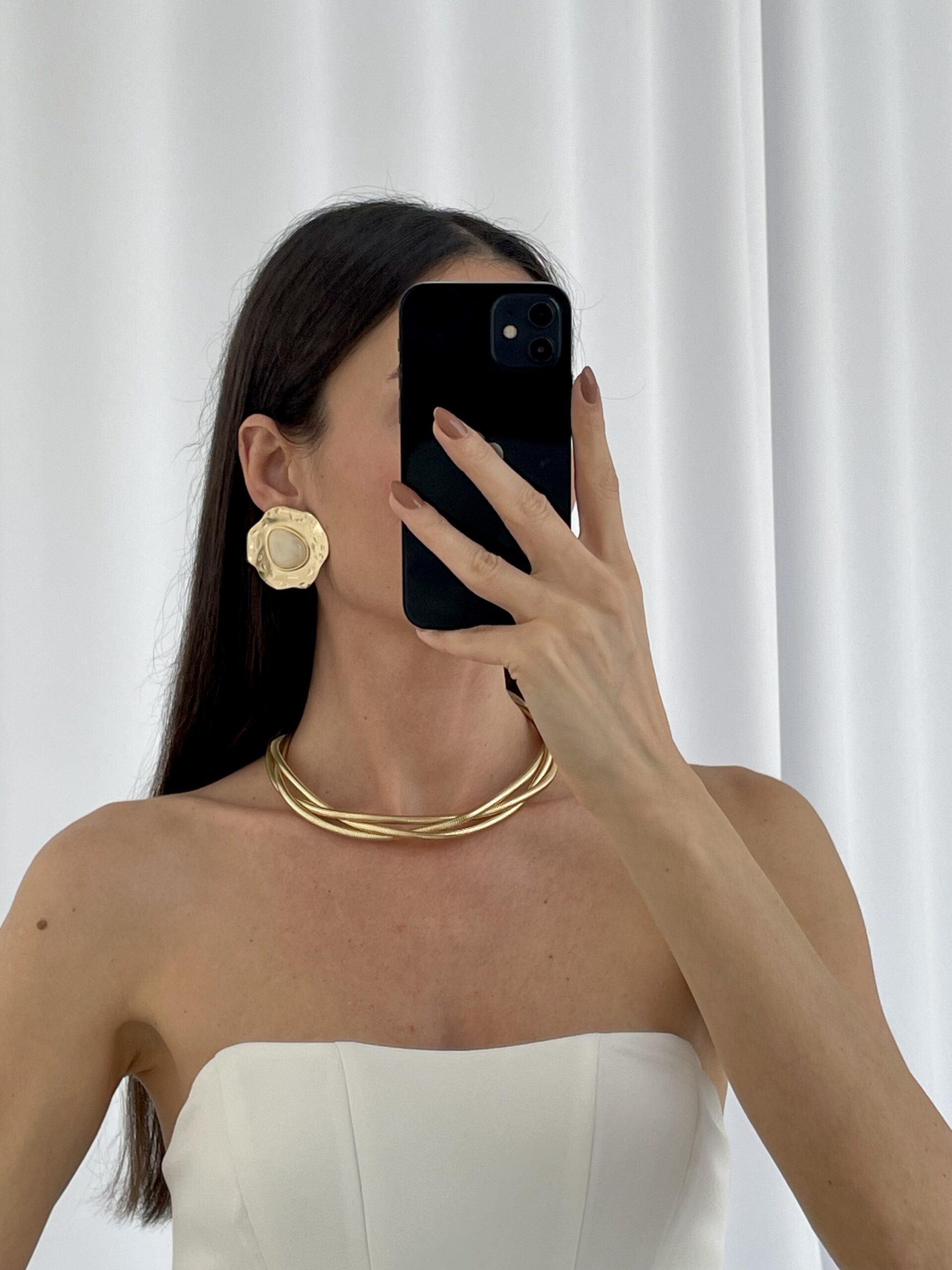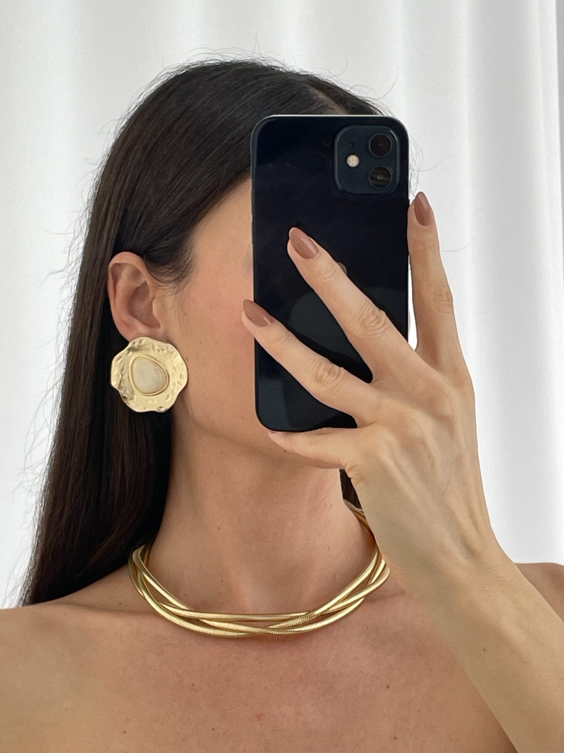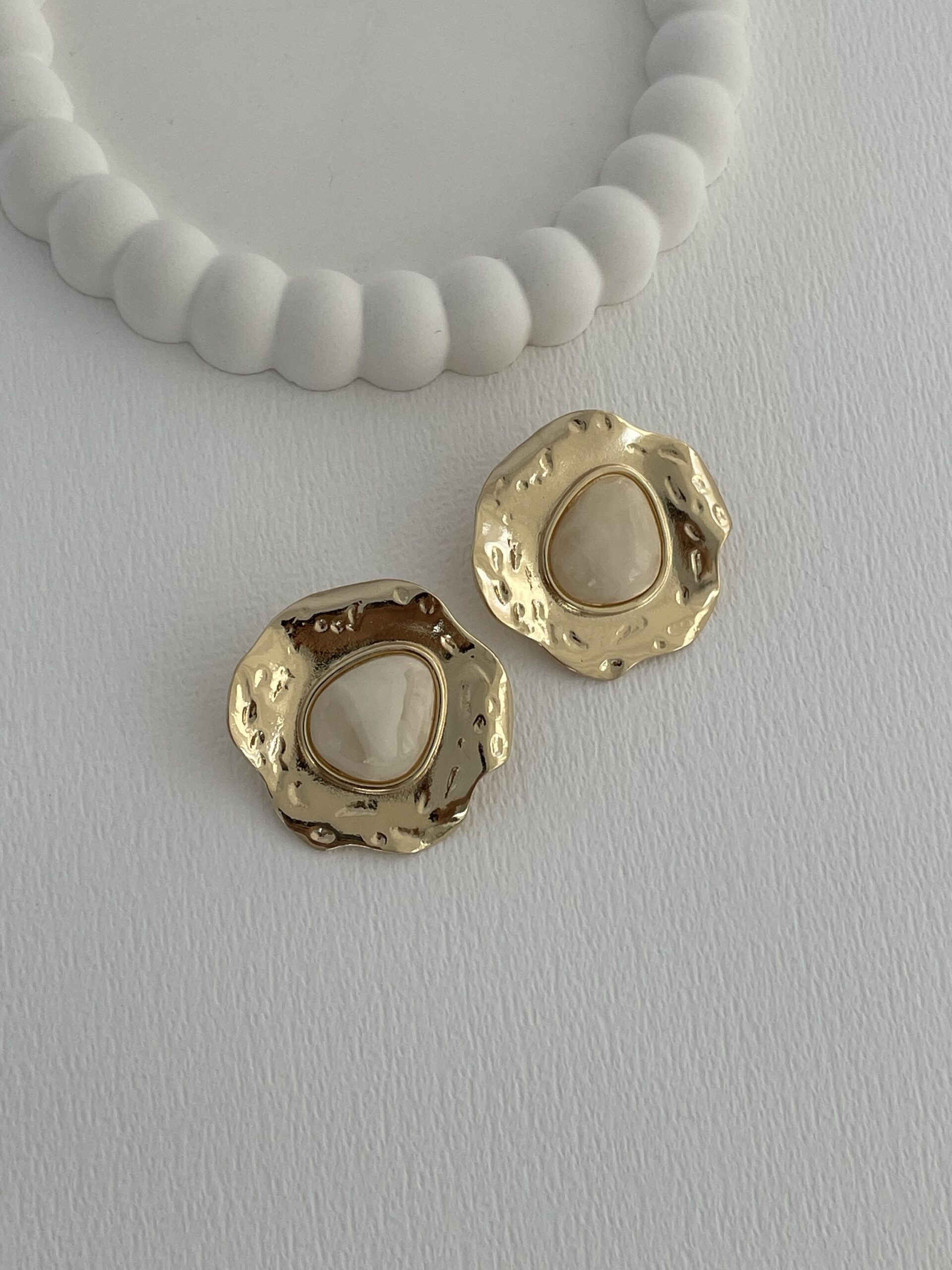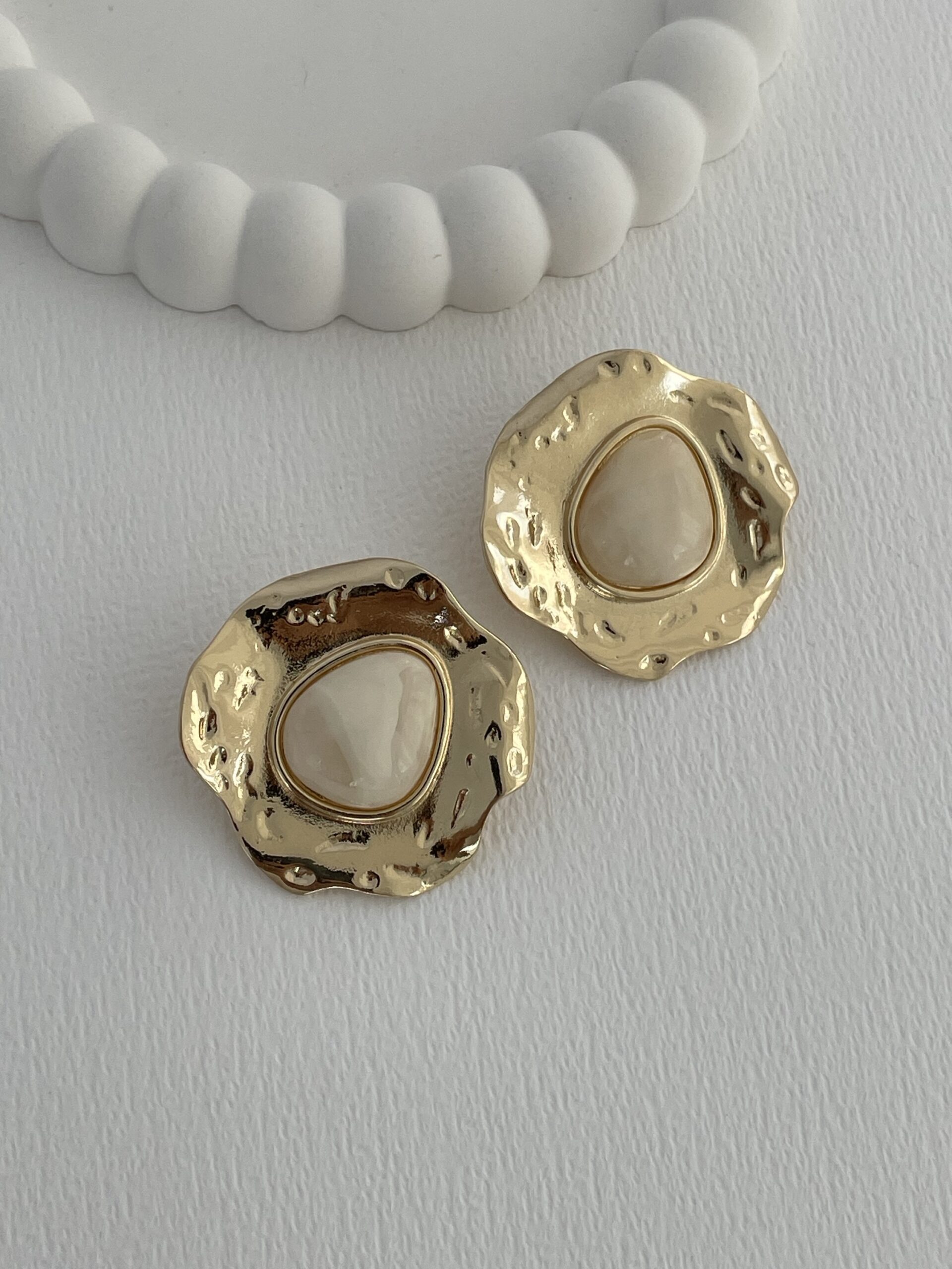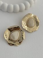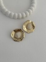 Özel Seri Krem Kemik Desenli Soyut Tasarım Gold Küpe