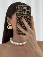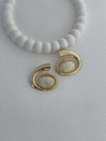 Özel Seri Krem Kemik Detay Oval Tasarım Gold Küpe