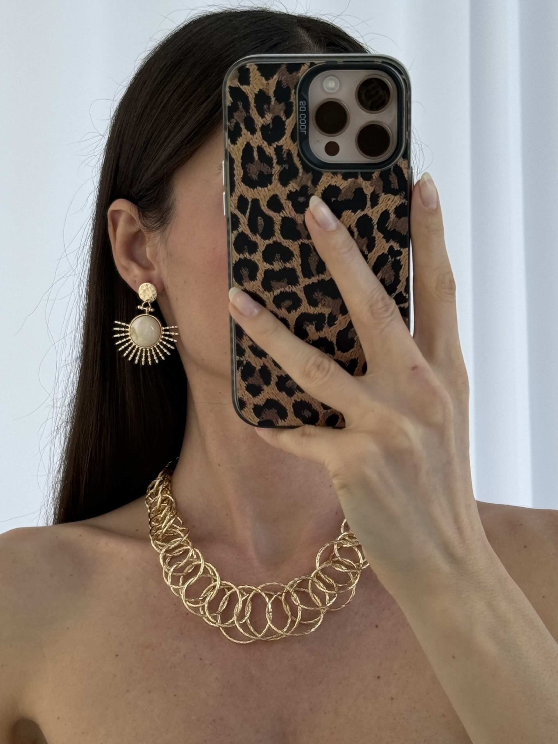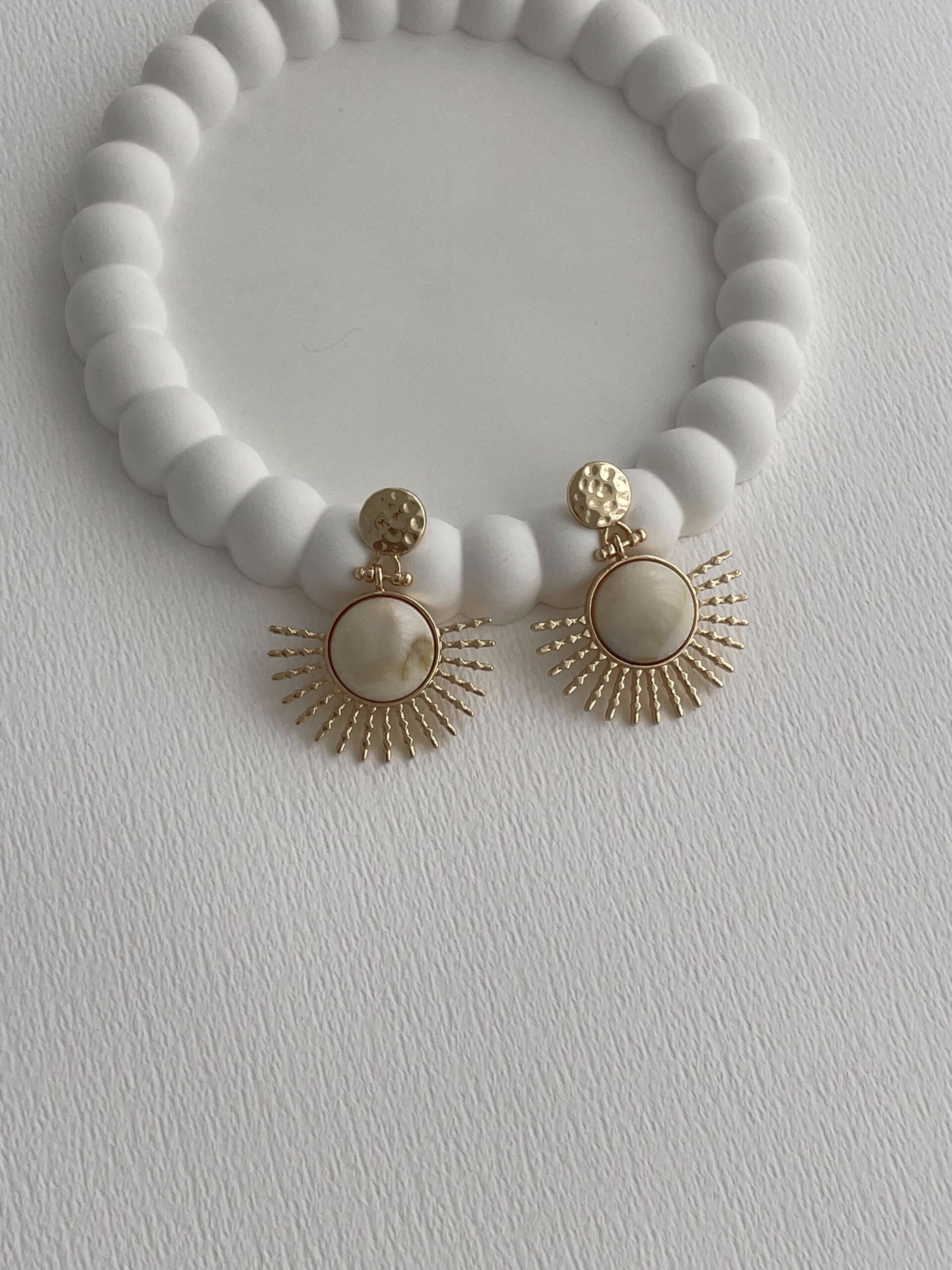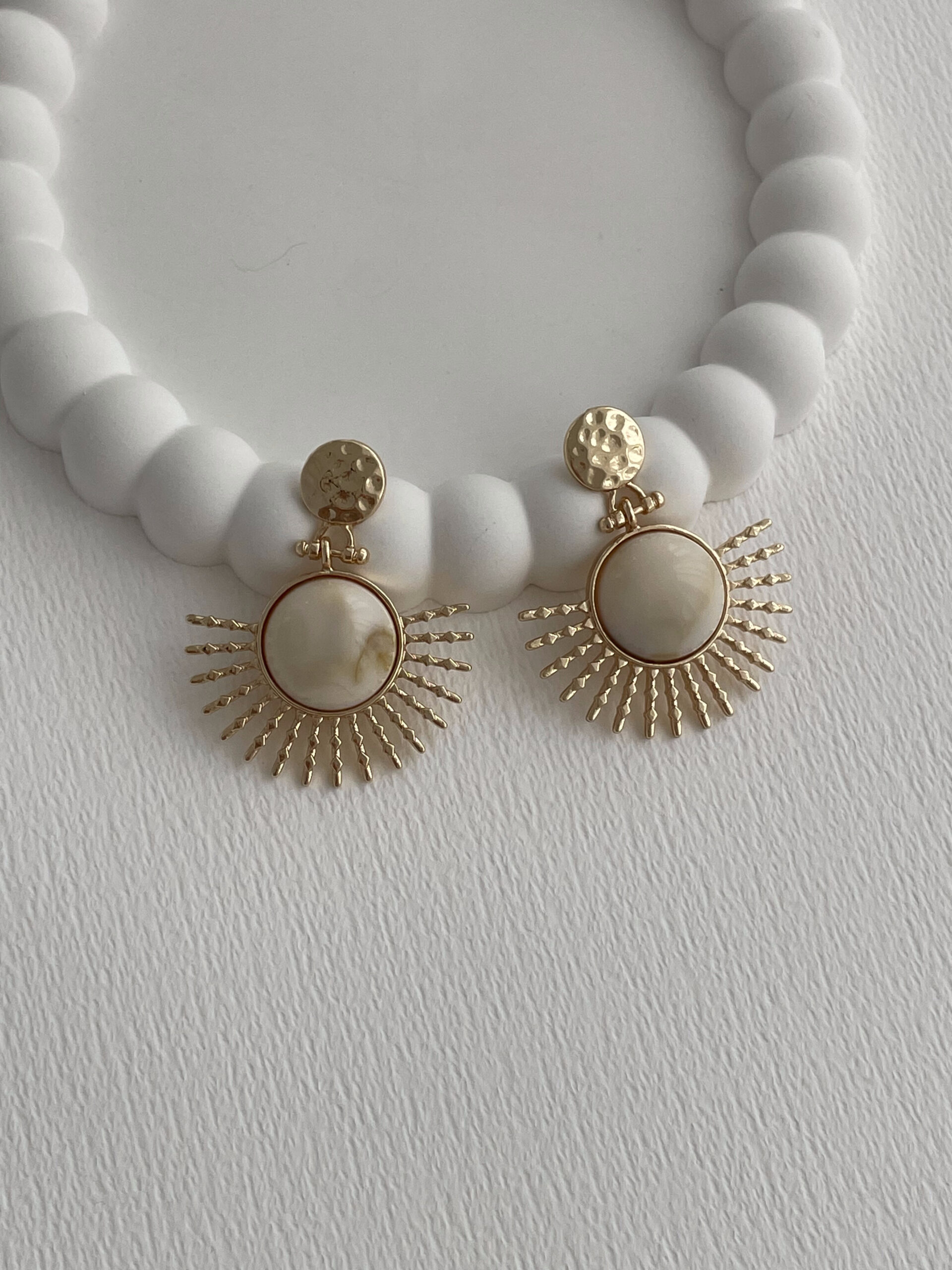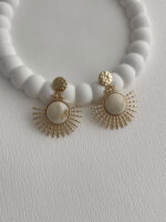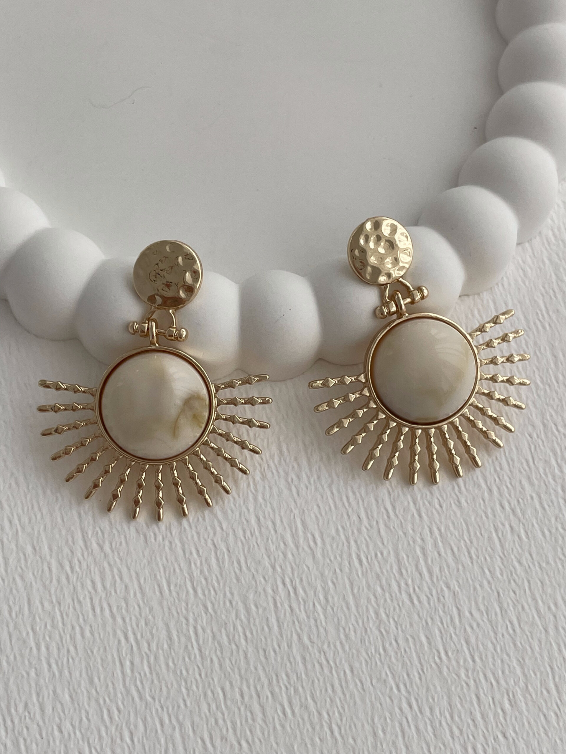 Özel Seri Krem Kemik Detay Yarım Güneş Gold Küpe