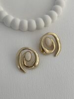 Özel Seri Krem Soyut Spiral Tasarım Gold Küpe