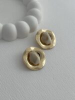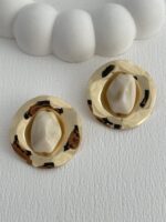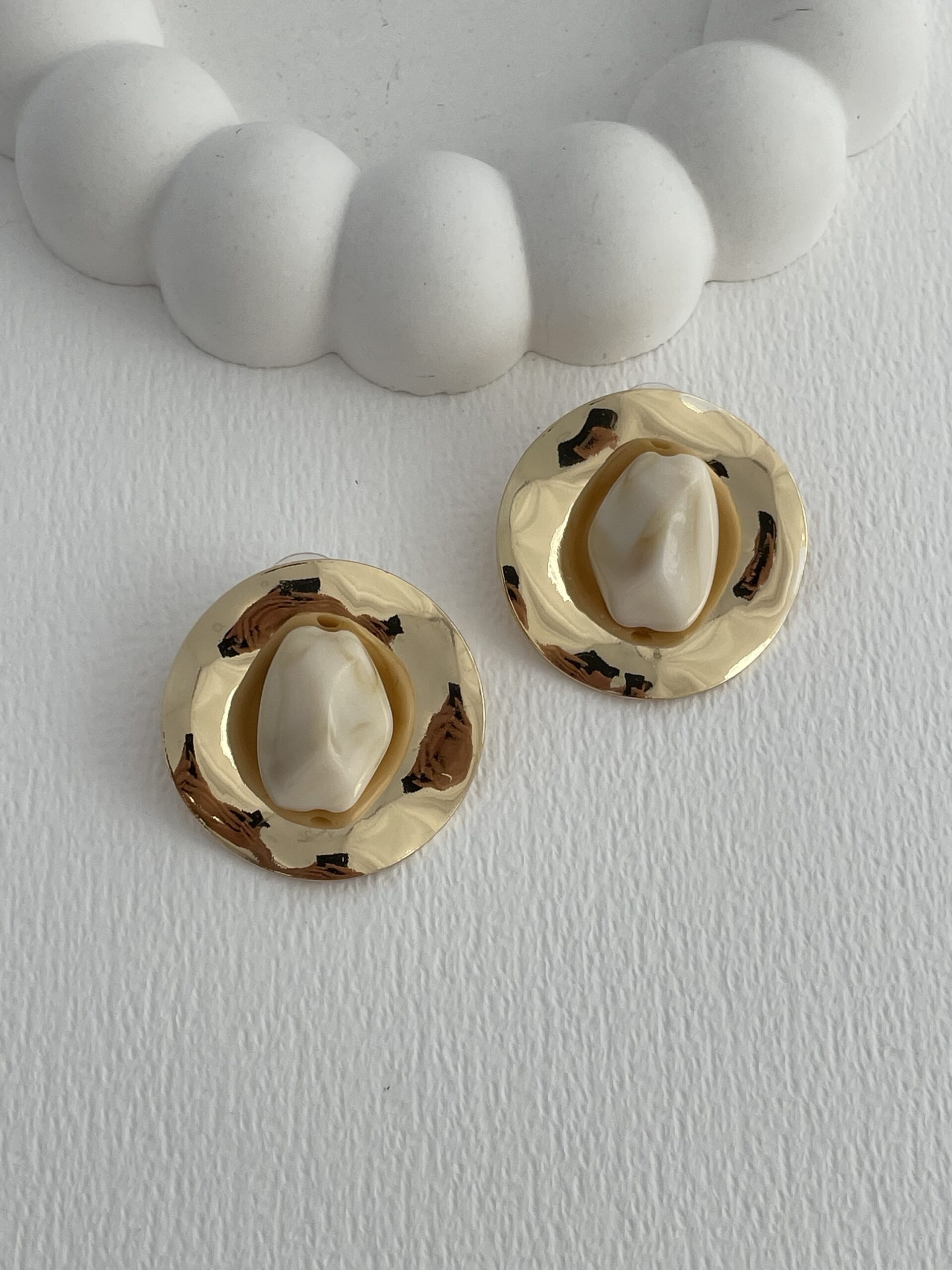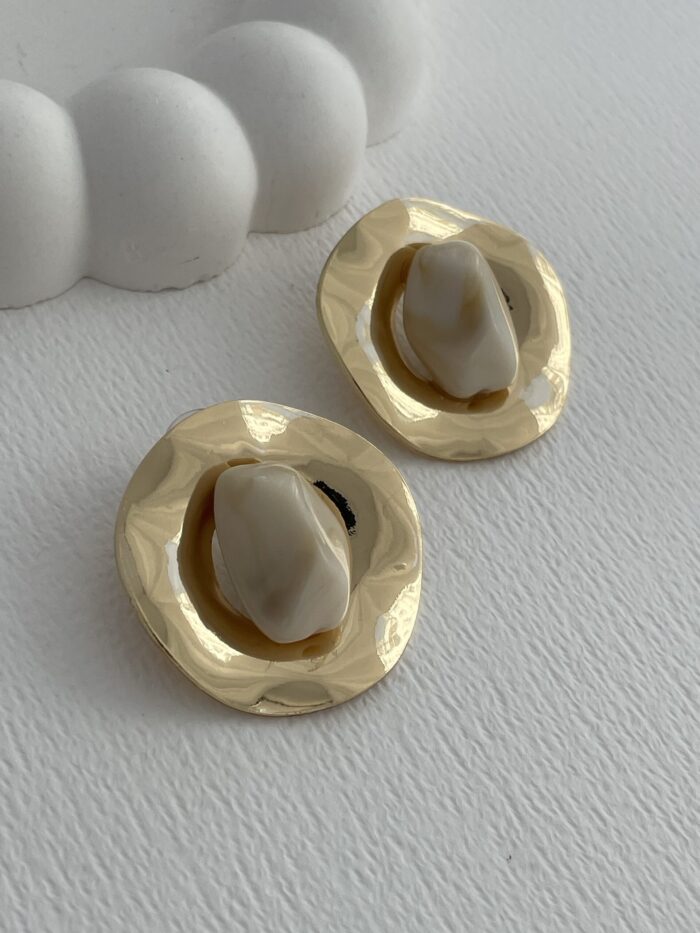 Özel Seri Krem Soyut Taş Tasarım Gold Küpe